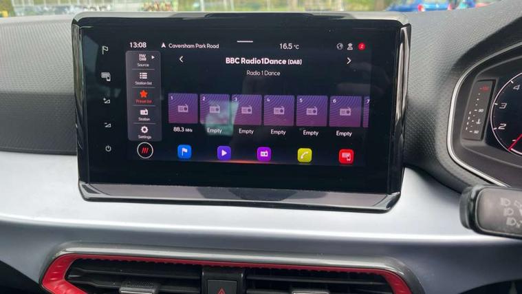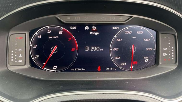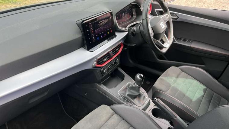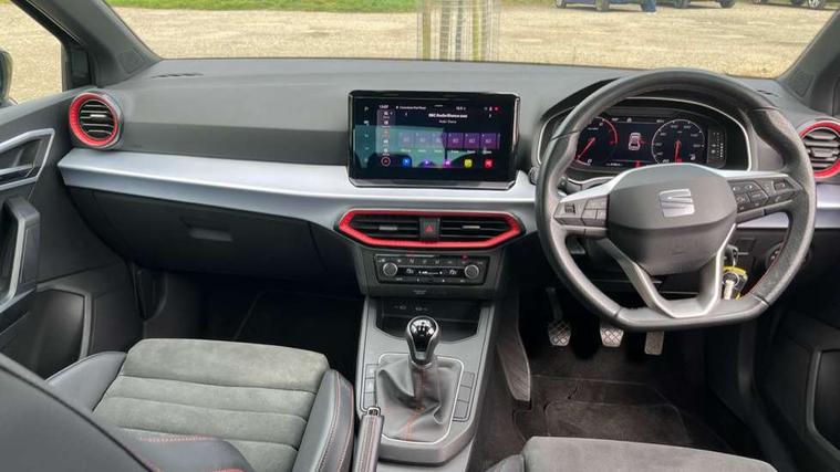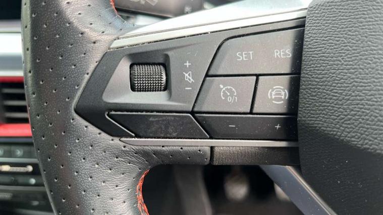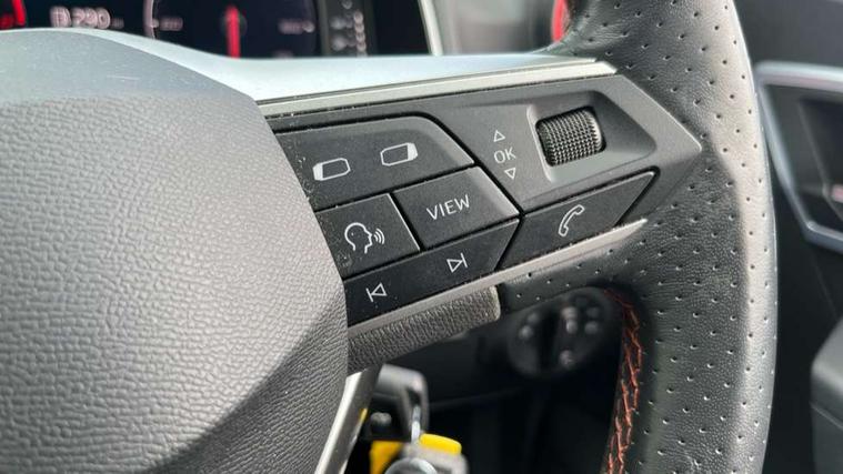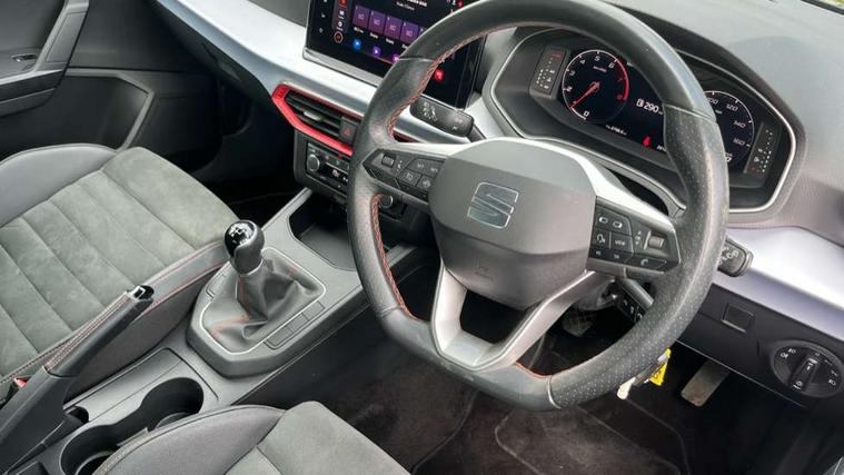 'Lights On' Reminder warning buzzer, 10" Digital cockpit, 9.2" touchscreen navigation system with type C USB socket, Voice control and DAB/AM/FM radio, Auto start and stop system, Bluetooth audio streaming with handsfree system, Cruise control, Digital clock, E-call, Full link smartphone integration with mirror link, wireless apple carplay, Google android auto + USB Type C cable for apple and android devices, Lane assist, Low fuel warning light, Outside temperature gauge, Power Steering, Seat connect with safety, service, remote and online, SEAT logo boot release, Speed limiter, Trip computer, Sports suspension, Auxiliary input socket, Radio/MP3 player, SD card slot, Steering wheel mounted controls, Anti theft roof antenna, Auto dimming rear view mirror, Automatic rain sensing wipers, Black door mirrors, Body colour bumpers, Body colour door handles, Brilliant black window surrounds, Dark tinted rear windows, Electric adjustable/heated/folding door mirrors, Electric front windows, Electric headlight adjustment, Electric rear windows, Front/rear fog lights, FULL LED automatic headlights with dynamic headlight range control, coming and leaving home, LED daytime running lights, LED tail lights, Rear roof spoiler with FR twin exhausts, Rear side wing doors, Rear wiper, Third brake light, 3 seat bench in 2nd row, 60/40 split folding rear seat, Ambient interior lighting, Chrome detailing and black headlining, Comfort seats, Dual zone climate control with combination filter, Front courtesy lights, Front cupholders x 2, Front reading lights, Gear shift indicator, Glovebox, Height adjustable front and rear headrests (five), Height adjustable front seats, Height/reach adjust steering wheel, Illuminated air vent surrounds, Illuminated boot, Instrument lighting with brightness control, Isofix, Leather multifunction flat bottomed sports steering wheel, Microsuede cloth upholstery, Passenger sunvisor, Single front passenger seat, Storage pockets on back of front seats, Sunvisors with mirror and driver side card holder, 3 point seatbelts on all 3 rear seats, ABS, Active front headrests, Child locks on rear doors, Electronic stability control, Energy recovery system, Front assist forward collision warning and autonomous emergency braking, Front driver and passenger side airbags with curtain airbag and front passenger airbag deactivation, Hill hold control, Multi-Collision braking, Seat belt reminder for front and rear seats, Tiredness recognition system, Tyre pressure monitoring system, Electronic engine immobiliser, Locking wheel bolts, Perimeter alarm and interior monitoring with backup horn and tow away protection, Remote central locking + deadlocks, 18" Performance machined alloy wheels in black and grey, Emergency tyre repair kit,