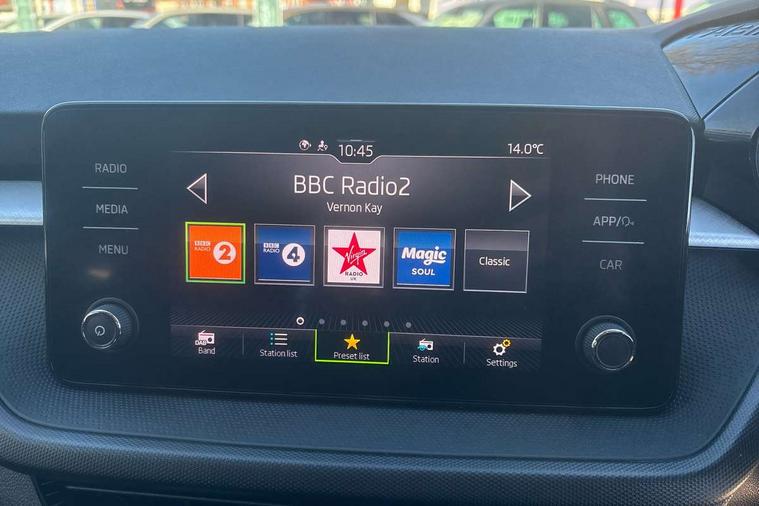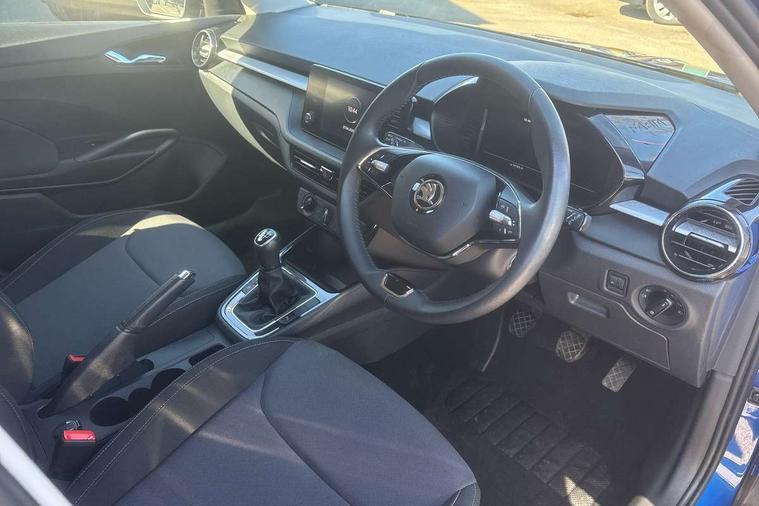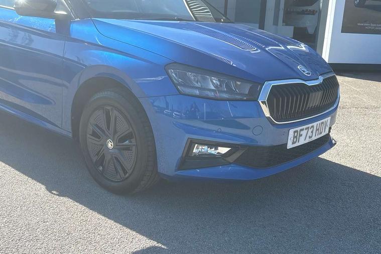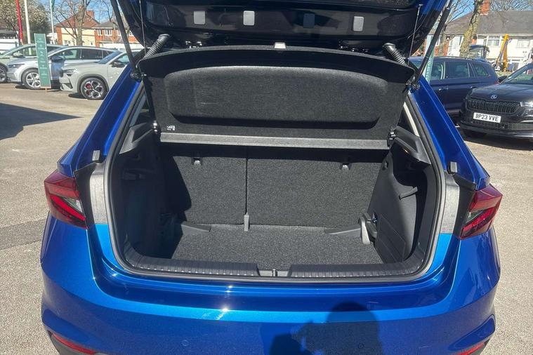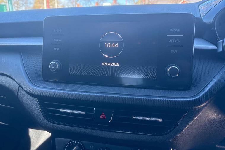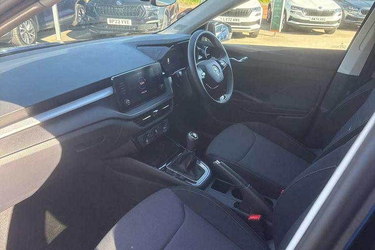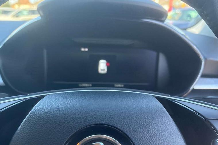 Bluetooth connection, Driver alert system - DAS, Electromechanical power steering, Exterior temperature gauge, Lane assist including road edge detection, Service interval indicator, Virtual cockpit with 10.25" colour display, 2x USB-C in the front (for data transmission and charging), 6 Speakers (4 in front and 2 in rear), Auxiliary socket for external MP3 player, Bolero radio with 8" colour display, DAB digital radio reception, Basic rear lights, Body coloured bumpers, Dimming rear view mirror with black frame, Door mirror integrated indicators, Electrically adjustable and heated door mirrors, Electrically adjustable front windows with function auto up/down, Front window wiper intermittent control, Headlight range control - Automatic, Ice scraper in fuel cap, LED daytime running lights with coming and leaving home feature, Mechanical adjustable rear windows, Privacy glass, Rear LED fog light, Rear side wing doors, Rear window wiper with washing nozzles, Roof colour door mirrors, Roof mounted spoiler, SKODA tailgate lettering in chrome, Third brake light, 3 rear headrests, Backrest split and folding, Central console with fixed cup holder and storage box, Chrome handbrake release button, Fabric upholstery, Gearshift knob/handle in leather, Grain satin black interior door handles, Hand brake lever handle in leather, Height adjustable front headrests, Height adjustable steering wheel, ISOFIX and TopTether anchorage points to the outer rear seats, ISOFIX and TopTether on the front passenger seat, Luggage compartment lighting, Pollen filter, Rear seat bench unsplit, Single front passenger seat, Storm grey headlining, Sun visors with mirror and airbag label on passenger side, Ticket holder, Umbrella in drivers door, 3-point height adjustable front seats belts with pretensioner and force limiter, Automatic warning lights in case of crash, Driver and passengers airbag with switch off function, e-Call+, ESC including ABS, MSR, ASR, EDS, HBA and XDS, Front and rear seat belt warning, FRONT ASSIST (AEB City and AEB Inter Urban), Front side airbags, Head airbags, One tone horn, Pedestrian protection, Three rear 3-points safety seat belts with pretensioner and force limiter including stop function for outer rear seat belts, Tyre pressure monitoring system, Anti-theft alarm system including immobiliser, interior monitoring, backup horn, and towing protection, Anodized cross line upper decorative trim, Colour Edition air vents, Grain satin black central console cover, Grain satin black lower decorative trim, Satin black door and side trim panel in front, Anti-theft wheel bolts protection, Super-low rolling resistance tyres,