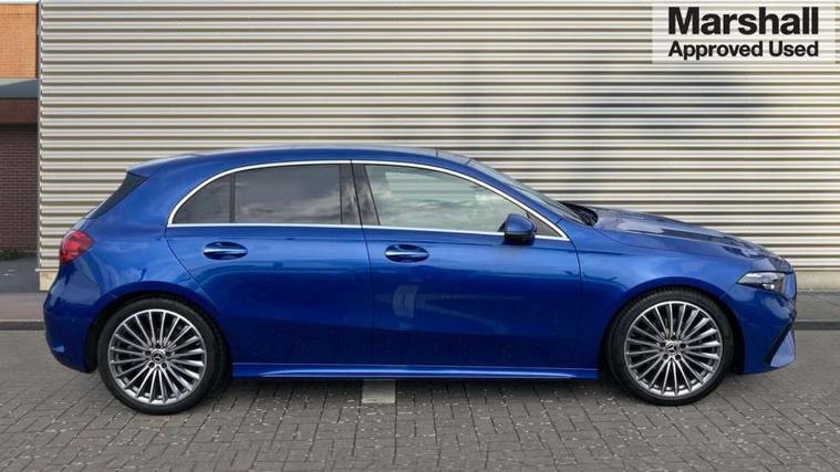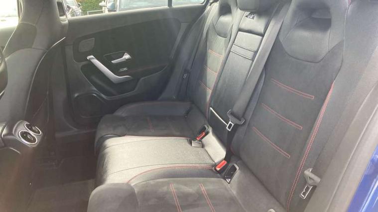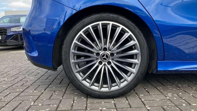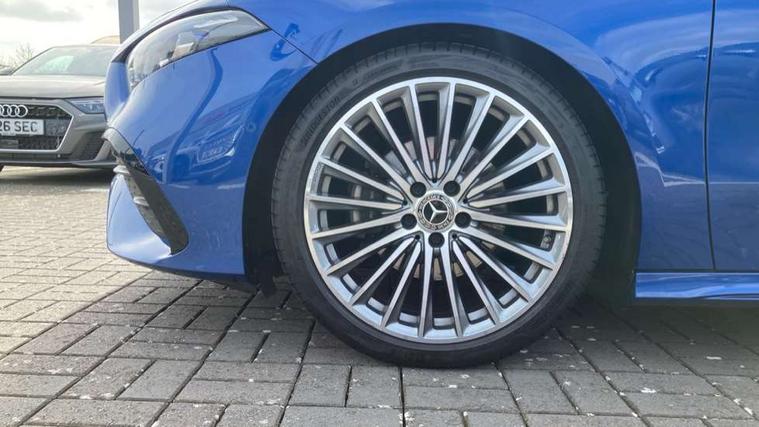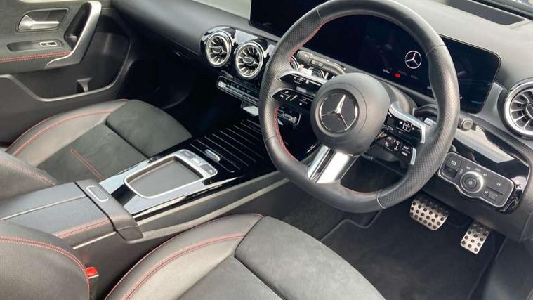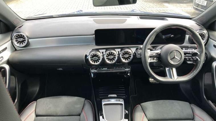10.25 inch touchscreen central media display, 10.25" Digital instrument cluster display screen, Attention assist, Brake pad wear indicator warning light, Car wash mode, Cruise control + speed limiter, Direct steering, Direction indicators with lane change function, Dual bluetooth interfaces, DYNAMIC SELECT with a choice of driving modes (ECO, Comfort, Sport and Individual), Easy pack tailgate hands-free access, ECO start/stop function, Engine start/stop button, Fluid level warning indicator for fuel, oil, coolant and washer fluid, Hard-disk navigation, Head up Display, Hey Mercedes Voice activation, Lamp failure indicator, MBUX augmented reality for navigation, MBUX Interior assistant, Mercedes me connect including emergency call system, accident recovery, breakdown and maintenance management, Mercedes me remote services, Outside temperature gauge, Owners manual in English, Pre-installation of private car share, Preinstallation for Mercedes Benz link, Remote boot closing, Service indicator (ASSYST), Smartphone integration with Apple CarPlay and Android auto, Speed sensitive power steering, Trip computer in multifunction display with current consumption indicator, Wireless charging, Lowered comfort suspension, DAB Digital radio, MBUX multimedia system, Mercedes Benz advanced sound system (225 W) with 10 speakers, 1 central speaker, speakers on doors, a tweeter on door, one sub woofer + boost amplifier, 4 Electric Front and Rear windows, Adaptive brake lights, AMG body styling - AMG front apron with front splitter and AMG rear apron and visible exhaust tailpipe trim elements, Body colour bumpers, Body colour door handles with chrome inserts, Body colour side skirt, Body coloured door mirrors, Chrome beltline strips, Diamond radiator grille with pins in fine star pattern, Electric adjustable and heated door mirrors with integrated LED side indicators, Exhaust system with 2 visible tailpipe trim elements and rear apron, Headlamp assist automatic headlamp activation, Heat insulating dark tinted rear and rear side windows, Heated glass rear windscreen + timer control, LED daytime running lights, LED High level third brake light, LED tail lamp, Multibeam LED headlamps with adaptive highbeam assist and cornering function, Panoramic sliding sunroof, Privacy glass, Radio aerial, Rain sensing windscreen wipers with two sensitivity settings, Rear fog lights, Rear side wing doors, Rear windscreen wiper, Window line trim strip in chrome, 3 seat bench in 2nd row, 3 Spoke flat bottom leather multi function steering wheel with perforated leather in grip area, 40:20:40 split folding rear seats, AMG floor mats, Automatic child seat recognition sensor, Black air vents with surround in silver chrome, Black roof lining, Brushed stainless steel sports pedals with rubber studs, Electrically adjustable front memory seats including lumbar support and backrest inclination, Front centre armrest with stowage, Front seat backs luggage nets, Galvanished gear shift paddles on steering wheel, Heated front seats, Height/reach adjustable steering column, Illuminated Mercedes Benz lettering front door sills with changeable cover, Interior lighting - 64 colour Ambient lighting, Interior mirror with reading lamps in black and frameless, Rear armrest with 2 cupholders, Seat occupancy sensor for front passenger seat, Single front passenger seat, Sports seats with integrated headrests, Stowage compartment in centre console with retractable cover, Sunvisors with illuminated vanity mirrors, Twin front cupholders, Two zone thermotronic luxury automatic climate control, Light and sight pack - A Class, Mirror package - A Class, Parking pack with 360 degree camera - A Class, Seat comfort pack - A Class, USB pack plus - A Class, 3 rear 3 point seatbelts, ABS with Brake Assist, Active bonnet, Adaptive brake assist with hold function and hill start assist, Bonnet with power domes, Childproof locks manually operated for rear doors and electrically operated for rear power windows, Crash responsive emergency lighting, Driver and passenger head and side airbags, Drivers knee airbag, Dual stage driver/passenger airbags, Electronic parking brake, ESP curve dynamic assist, ESP with ASR, Exit warning, Front and rear seatbelt reminder, ISOFIX and top tether child seat fixing points in two outer rear seats, Tyre pressure monitoring system, Warning triangle and first aid kit, Window airbags, Alarm system/interior protection/immobiliser, Guard 360 degree vehicle protection, Keyless entry lock/unlock, Keyless Go, Remote central locking and crash sensor with emergency opening function, Black seatbelts, Light longitudinal grain aluminium trim, 19" AMG multi-spoke light alloy wheels, aerodynamically optimised, painted in titanium grey with high sheen finish, Summer tyres, Tirefit sealant kit,