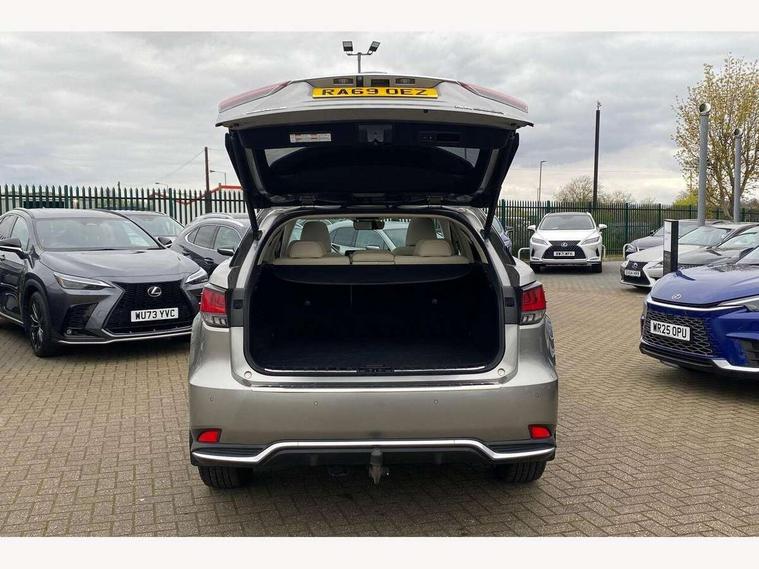 12.3" partial touchscreen multimedia display, 360 degree panoramic view monitor, 5 Driving modes EV/Normal/Eco/Sport/Sport+, Analogue clock with GPS function, Apple car play/Android Auto, Bluetooth mobile phone connectivity, BSM - Blind spot monitoring, Electric power steering, Head up Display, Intelligent clearance sonar, Kick sensor for power tailgate, Lane change flasher function, Lexus link connected services with available optional wifi, Lexus Premium Navigation with full European map capability, street view and connected services, Lexus safety systems+Dynamic Radar Cruise Control with Road Sign Assist, pre crash safety day/night, lane keep assist, sway warning system, auto high beam, Multi-information display 4-inch TFT, Push button starter, Wireless Smartphone charger, Adaptive variable suspension, Vehicle Dynamics Integrated Management (VDIM), Vehicle Stability Control (VSC), AUX socket with VTR compatibility, DAB Digital radio, DVD, Front and rear USB ports, Mark Levinson sound system with 15 speakers, 3 eye LED headlights with adaptive high beam system with bladescan, Auto dimming rear view mirror, Front and rear electric windows, Headlight washers, Heated, auto-dimming, auto-folding door mirrors with memory function, reverse tilt function, turn indicators and puddle lights, LED brake lights and rear lights with emergency brake signal, LED cornering headlights, LED daytime running lights, LED front and rear sequential indicators, LED front fog lights, Privacy glass, rear doors and tailgate, Rain sensor windscreen wipers, Roof rails, 10 way electric power front seats, 2 map pockets in the rear, 2 x fixed shopping bag hooks in boot, 2 x Sunvisors with vanity mirror and lamp, 3 x 12V power sockets, 4 way adjustable lumbar support, 4 x tie down hooks in the boot, 60/40 split folding rear seat with 40/20/40 folding ability, Card holder installed in driver and passengers sun visors, Centre and rear armrest with 2 cupholders, Centre armrest with storage box, Climate concierge, Driver and passenger seat memory, Driver's seat easy access auto retraction function, Dual zone climate control air conditioning system with S flow and Nanoe technology, Electric folding rear seats, Electrically adjustable heated wooden steering wheel with auto retraction function and paddle shifts, Electrically adjustable rear seats, Glasses holder in roof lighting panel, Heated and ventilated front seats, Heated rear seats, Isofix standard child seat restraint mounting, Leather gear lever, LED aluminium scuff plates, LED interior illumination, Lexus safety system +, Rear armrest with storage, Rear door sunshades, Self charging hybrid, Semi-aniline leather upholstery, Sliding/reclining rear seats, Small compartment to right of steering wheel, Textile carpet mats, Unique LED illumination instrumnet panel, 3 point ELR front and rear seatbelts with pretensioners, ABS, Curtain airbags, Driver and front passenger 2 stage airbag, Driver/front passenger side airbags, Drivers knee airbag, EBD + Brake Assist, Electronic parking brake, Electronically controlled braking, Front passenger seat cushion airbag, Hill start assist, Passenger airbag cut-off device, RCTB - Rear cross traffic auto brake, Rear passenger side airbags, Traction control, Tyre pressure warning, WIL whiplash protection front seats, Anti theft system with alarm, intrusion sensor, tilt sensor, glass breakage sensor and engine immobiliser, Locking wheel nuts, Security window etching, Smart card key, Smart keyless entry, Two motion door lock with double lock, 20" Takumi alloy wheels, Temporary spare wheel,