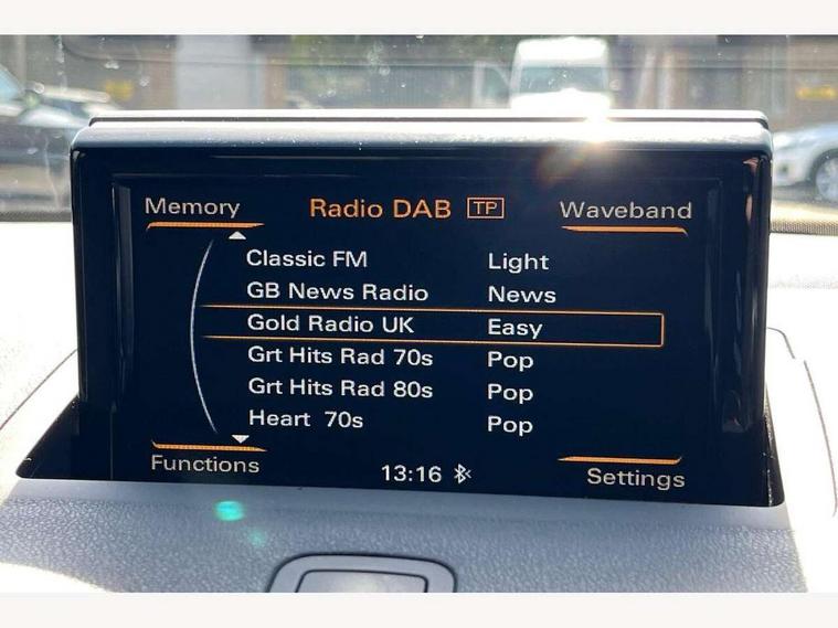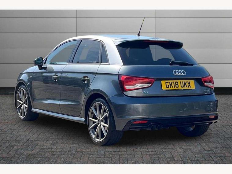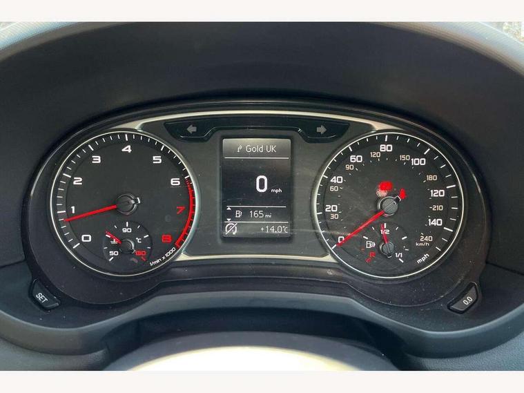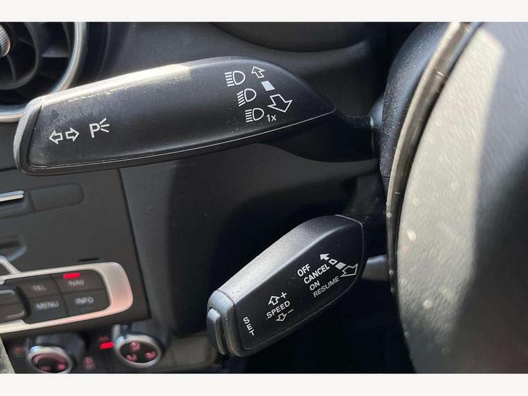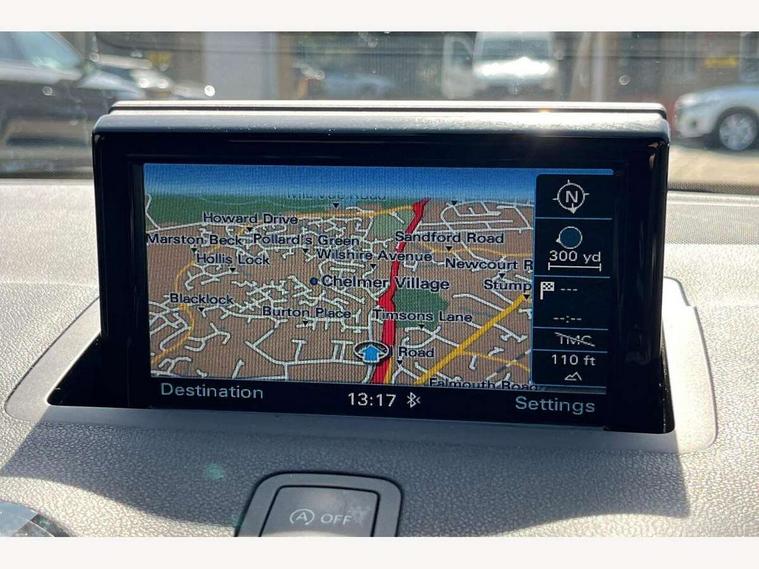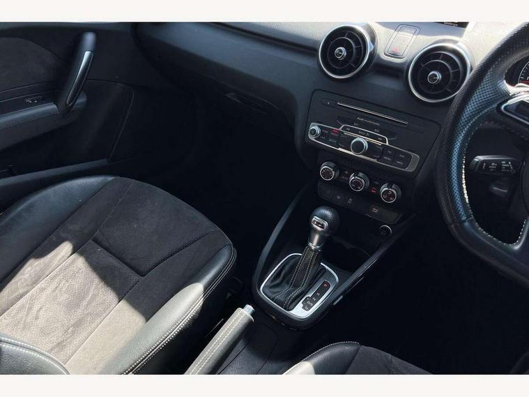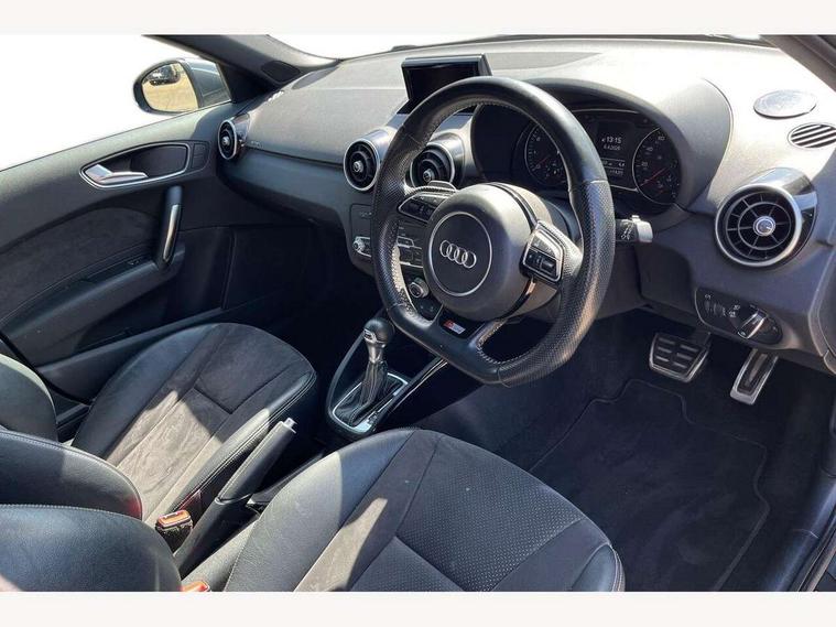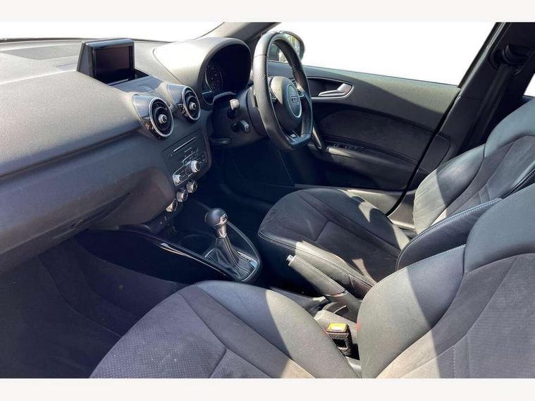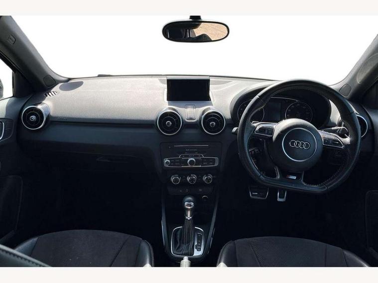 Audi drive select, Cruise control, Driver's information system, Electro-mechanical PAS, Low washer fluid indicator, Service interval indicator, Voice control system, Additional SD card reader, Audi music interface, Bluetooth audio streaming, DAB Digital radio, Adaptive brake lights, Body coloured bumpers, Body coloured door mirrors, Electric adjustable door mirrors, Electric front windows, Electric rear windows, Front fog lights, Heat insulating glass, Heated door mirrors, Heated rear windscreen, Privacy glass, Rain and light sensors, Rear diffuser, Rear wiper, Roof spoiler, S Line body styling, Twin oval high gloss black exhaust tail pipes, Xenon plus headlights including automatic headlights, LED daytime running lights, LED rear lights, dynamic range control and headlight washers, 12V Accessory socket in centre console, 3 rear seats, 3 spoke flat bottom multi-function leather steering wheel including paddle shift, Adjustable rear head restraints, Alcantara/leather upholstery, Black cloth headlining, Cupholders in centre console, Door sills trims with aluminium inlays, Electronic climate control (ECC), Front floor mats, Front head restraints, Front sports seats, Height adjustable front seats, Illuminated glovebox, Isofix attachments on outer rear seats, Jack and tool kit, Leather gear knob, Leather handbrake, Lumbar adjustment for front seats, Rake/reach adjustable steering wheel, Split folding rear seats, Stainless steel pedals, High-gloss black styling pack - A1, 3x3 point rear seatbelts, ABS/EBD, Brake assist function, Driver and passenger side airbags, Driver/Front Passenger airbags, EDL, ESP with ASR, First aid kit, Front and rear seatbelt reminder, Front passenger airbag deactivation, Head airbags, Height adjustable front seatbelts, Tyre pressure monitor, Warning triangle, Locking wheel bolts, Remote central locking with 2 remote folding keys, Thatcham category 1 alarm + immobiliser, Aluminium trim, High gloss black air vent sleeves, High gloss black centre console, Tyre repair kit,