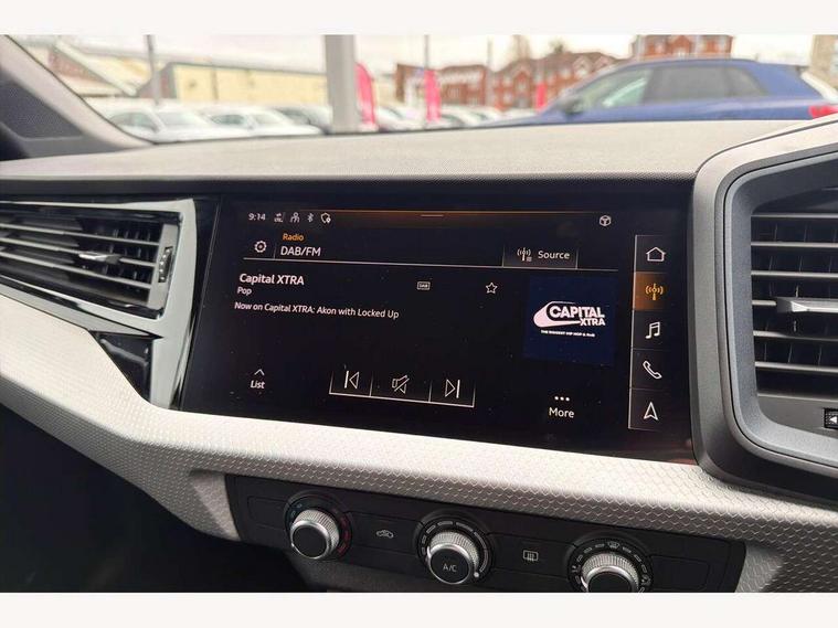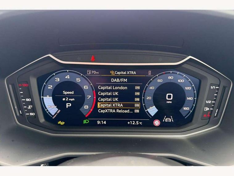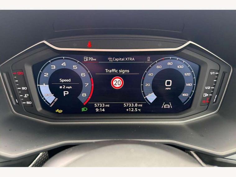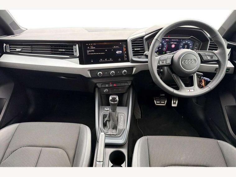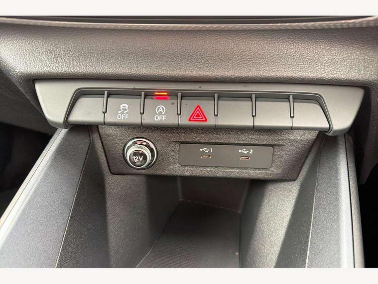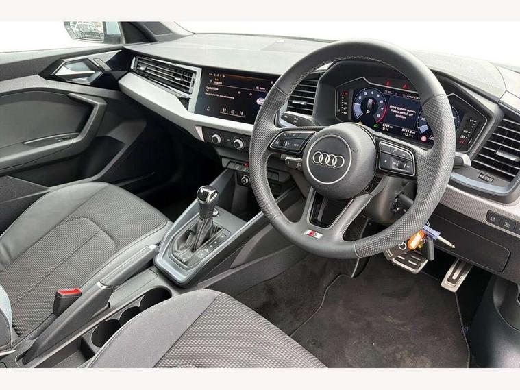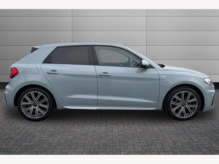 10.25" Digital instrument cluster display classis style instrument dials + speed, odometer, time, outside temperature, telephone menu + fuel level warning, Advanced driver attention and drowsiness monitor, Audi connect emergency call and service, Audi remote connect and control, Audi smartphone interface, Bluetooth interface, Camera based traffic sign recognition, Cruise control, Driver's information system, Electromechanical power steering, Lane departure warning system, Rear parking sensor, Service interval indicator, Speed limiter, Start stop system with recuperation, Voice control system, Washer fluid level indicator, Sports suspension, 2 x USB type C connection points, 6 loudspeakers, DAB Digital radio, MMI radio plus with 10.1" colour MMI display screen and MMI touch, Auto dimming rear view mirror, Body coloured door mirrors, Door sill trims with aluminium inlays and S line logo in front, Electric front and rear windows, Electrically adjustable, heated, folding door mirrors with integrated LED side indicator, Front side air inlets in grained matt black and C frame in anthracite black, Headlight cleaning system, Heat insulating glass windscreen and side windows, Heated rear windscreen, High level LED brake light, LED daytime running lights, LED headlights with range control LED rear lights + dynamic rear indicators, Privacy glass, Radiator grille and rear diffuser in matt anthracite black, Radiator protective grille frame in matt aluminium silver, Rain and light sensors, Rear fog lights, Rear side wing doors, Rear wiper, S line badges on front wings, Side front spoiler lips in grained matt black, 12V socket in centre console with two cup holders, 3 rear seats with headrests, 3 seat bench in 2nd row, 3 spoke leather multi-function plus steering wheel features S badging and grips in perforated leather with contrast stitching, 40:60 Split folding rear seat or fully collapsed, Black cloth headlining, Front and rear velour black floor mats with contrast stitching in fine silver, Front head restraints, Front passenger seat, Height and reach adjustable steering wheel, Interior lighting includes roof module, front and rear reading lights and right luggage compartment lighting, ISOFIX child seat mounting for front passenger and outer rear seats including top tether attachment point of outer rear seats, Leather gear knob with aluminium trim, Leather handbrake grip, Manual air conditioning, Manual height adjustable for driver and front passenger seat, Manually adjustable lumbar support in front seats, Stainless steel pedals, Ambient lighting package - A1, Luggage compartment pack - A1, S line exterior styling pack - A1 Sportback, 3x3 point rear seatbelts, Audi pre-sense front with pedestrain and cyclist recognition, Brake assist function, Driver and front passenger airbag with front side and head airbags, Electronic Stability Control including ABS, EBD, ASR and EDL, Front passenger airbag deactivation switch, Hill hold assist, Manual rear child locks, Seatbelt height adjustment for front seats, Seatbelt monitoring, Tyre pressure loss indicator, Warning triangle and first aid kit, Anti theft alarm, Anti theft wheel bolts, Immobiliser, Remote control key with safelock, Aluminium trim for control switches, air vents and digital instrument cluster, Black dashboard, Silver grey inlays polygon structure in diamond paint finish, Structured grey accent surfaces insert of air vents, interior door handle recesses and centre console in quartz paint finish,