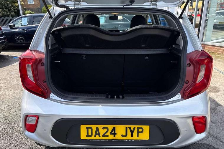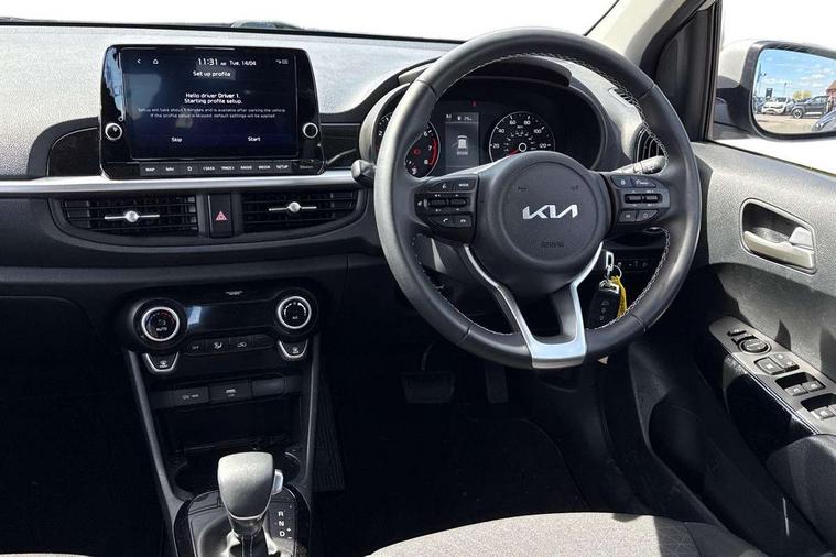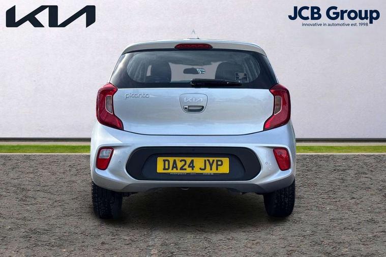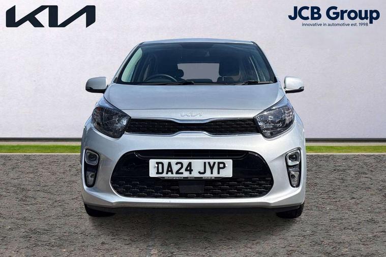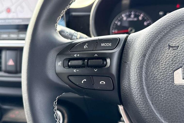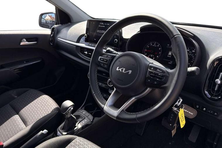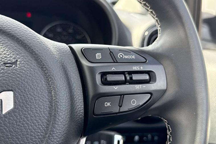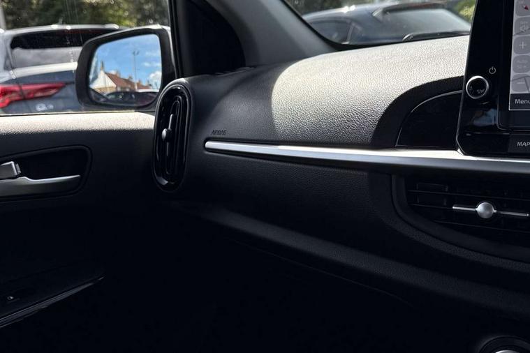 4.2" supervision monochrome cluster display, 8" touch screen satellite naviagtion with RDS and DAB with telematics, Apple car play/Android Auto with voice control, Cruise control + speed limiter, Emergency call service, Emergency stop signalling system, External temperature gauge, Forward Collision-Avoidance Assist (FCA) - City, Kia Connect (UVO), Motor driven power steering, Rear parking sensors, Reversing camera system with dynamic guidelines (Integrated into centre fascia screen), Tachometer, Tailgate, Trip computer, 6 speaker audio system, Bluetooth with music streaming, Steering wheel mounted controls, USB ports for connection of a media device, Automatic headlight control system, Black radiator grille with chrome surround, Body colour bumpers, Body coloured mirrors and chrome exterior handles, Day/night rear view mirror, Daytime running lights, Electric adjustable/heated/folding door mirrors with LED indicators lights, Front and rear electric windows with drivers's auto up/down function, Front fog lights, Headlamp levelling, Heated rear window, High mount brake light, MFR - Multi Focus Reflector halogen headlights with black bezel, Rain sensor, Rear fog lights, Rear side wing doors, Rear wash/wipe, Speed variable front wipers, Tinted glass, Visible VIN plate, Welcome and follow-me home light functionality, 1 x rear coat hook, 12V power point front, 2 seat bench in 2nd row, 3 x passenger assist grips, 60/40 split/folding 2nd row of seats, All round height adjustable headrests, Automatic air conditioning, Centre Console with Storage Box and Sliding Armrest, Cupholders in centre console, Driver and front passenger sunvisor with vanity mirror, Driver seat height adjust, Front cabin lights, Glovebox, High gloss lower centre fascia trim, door armrest and air vents, ISOFIX Child seat top tethers and anchor fixings, Leather trimmed steering wheel and gearshift, Luggage area light, Luggage area parcel shelf, Passenger front seatback pockets, Premium cloth upholstery, Silver paint finished interior door handles, Single front passenger seat, Slide/reclining front seats, Tilt adjustable steering wheel, Advanced Driver Assistance Pack - Picanto, 2 x 3-point rear seatbelts, ABS/EBD, Automatic unlocking of doors in case of impact, ESC + BAS + VSM + HAC, Front passenger airbag cut-off switch, Front seatbelt height adjusters, Front seatbelt pretensioners, Hill hold control, Hill start assist control (HAC), Knee airbags, Rear child proof door locks, Seatbelt warning, Side impact protection, Torque vectoring brake based and straight line stability (SLS), Traction control, Twin curtain airbags, Twin front airbags, Twin front side airbags, Tyre pressure monitoring system, Anti theft alarm, Engine immobiliser, Folding key, Locking wheel nuts, Remote central door locking, 15" Alloy wheels, Tyre mobility kit,