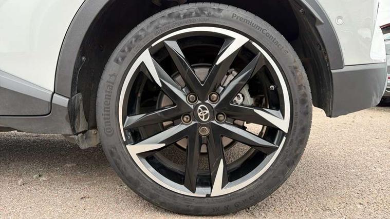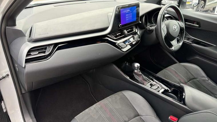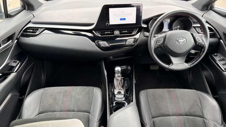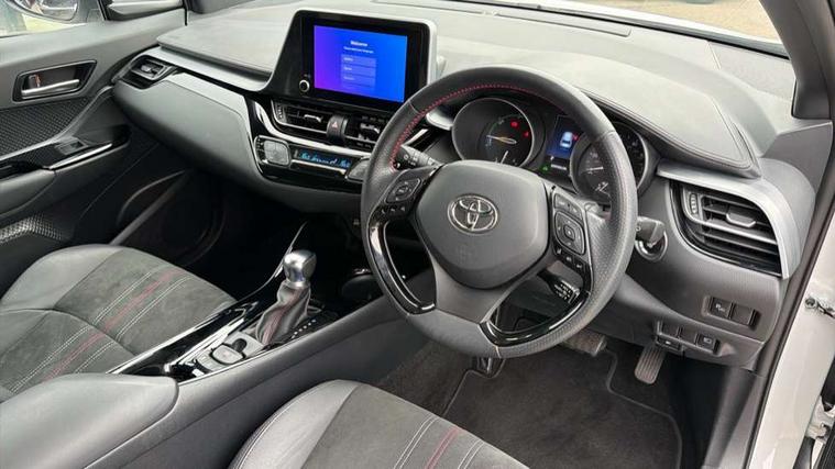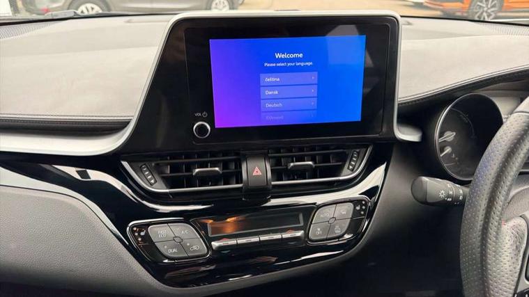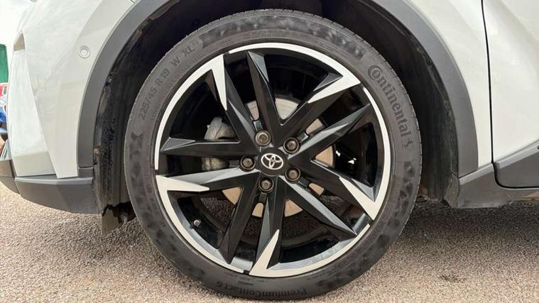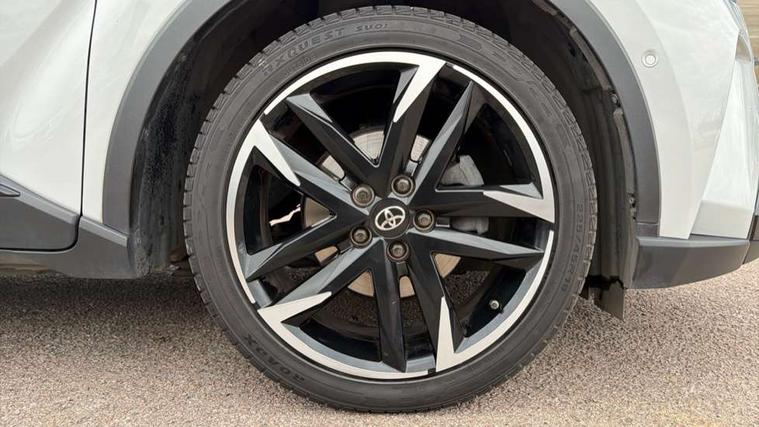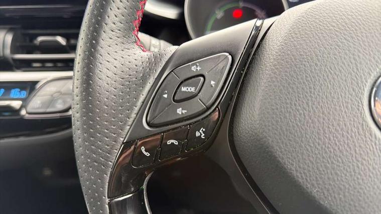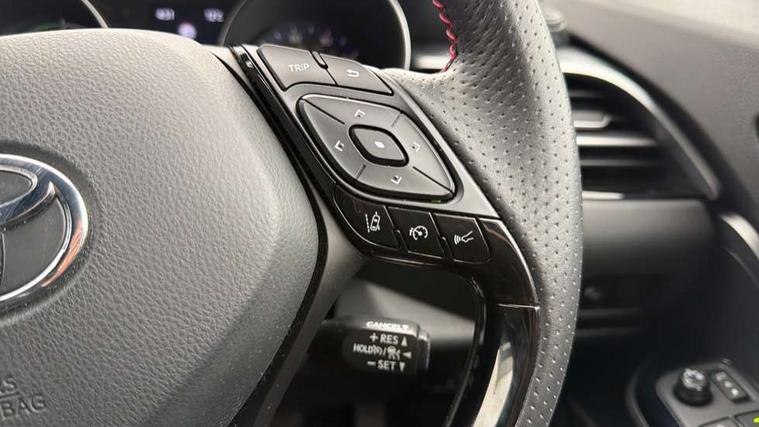 4.2" coloured TFT screen for multi-information display, Adaptive cruise control, Apple car play and Android auto, Bluetooth connectivity, E-call, Electric power steering, Hybrid system indicator, Lane departure alert with steering control, Lane trace assist, Push button tailgate release, Remote boot door release in cabin, Remote boot door release in key, Reversing camera, Road sign assist - RSA, Simple Intelligent parking assist, Smart voice assist, Touch 2 Go navigation system, Trip computer, Voice recognition, Wireless smartphone integration, Vehicle Stability Control (VSC), 6 speakers, AM/FM radio, DAB Radio (Digital Audio Broadcasting), Toyota touch 2 multimedia system with 8" display, USB connector, Wi-fi connectivity, Adaptive front light system, Adaptive LED Headlights, Anti-jam protection on power windows, Auto high beam, Auto up and down function on all power windows, Automatic headlight levelling, Automatic headlights, Automatic headlights cut-off, Black and body coloured rear bumper, Black upper front grille, Body colour door handles, Body colour door mirrors, Body coloured front bumper, Boot door release with push button, Chrome front lower bumper, Electric heated door mirrors, Follow me home headlights, Front and rear power windows, Front spoiler lip in black, Headlight cut off reminder, Honeycomb lower front grille, LED daytime running lights, LED fog lights, LED front light guide, LED High mounted stop light, LED rear brake lights, LED rear combination lights, Noise reduction layer on front windows and windscreen, Power adjustable door mirrors, Privacy glass, Rain sensor, Rear sequential indicators, Rear side wing doors, Rear spoiler, Rear tailgate, Rear window defogger, Rear window wiper, Shark fin antenna, UV-filter on driver and passenger windows, UV-filter on rear windows, Variable front intermittent wipers, 12v power outlet - front, 3 rear headrests, 3 seat bench in 2nd row, 3 spoke perforated leather steering wheel, 60/40 split folding 2nd row rear seats, Adjustable rear headrests, Adjustable speed limiter switch on steering wheel, Assist grips front and centre pillar, Audio and telephone switches on steering wheel, Black front door assist grips, Blue ambient lighting on front cup holders, Blue ambient lighting on front doors, Boot light, Chrome interior door handles, Cloth upholstery, Driver and front passenger personal light, Driver and front passenger Whiplash Injury Lessening seats, Driver and passenger seatback pockets, Dual zone automatic air conditioning, Floor mats, Front cupholders, Front head restraints, Front sports seats, Glovebox with internal light, Hard tonneau cover, Heated driver and front passenger seats, Hooks for luggage holding net, Humidifying Nanoe air purifier, Illuminated entry system, Isofix attachments on outer rear seats, Leather gearshift, Light on driver sun visor, Light on passenger sun visor, Manual telescopic steering wheel, Manual tilt steering wheel, Manually height adjustable driver seat, Manually height adjustable front passenger seat, Manually reclining driver seat, Manually reclining front passenger seat, Manually sliding driver seat, Manually sliding front passenger seat, Microphone on front personal light, Mirror on driver sun visor, Mirror on passenger sun visor, Multimedia switches on steering wheel, Pollen filter, Power adjustable lumbar support on driver seat, Shopping bag hooks, Single front passenger seat, Slow opening on lower glovebox, Voice recognition switch on steering wheel, Tech with parking sensor pack - C-HR, 16 Disk front wheel brake, 3x3 point rear seatbelts, ABS+EBD+Brake assist, Electronic parking brake, Front and rear seatbelt reminder, Front passenger airbag on/off switch, Hill start assist control (HAC), Pre collision system with pedestrian detection, Pre-tensioners and force limiters, Rear door child safety locks, SRS Airbags - Driver + Front passenger, front side, front and rear curtain and driver's knee airbags, Toyota safety sense, Tyre pressure monitoring system, Tyre pressure warning system, Acoustic vehicle alert system (AVAS), Glass-breaking alarm sensors, Immobiliser, Intrusion alarm, Intrusion sensor, Motion sensor alarm, Power door locks, Power passenger window lock, Remote central locking, Black lower dashboard, Black upper dashboard, Piano black console, Silver deco line on upper dashboard, 19" Black machined alloy wheels, Tyre repair kit,
