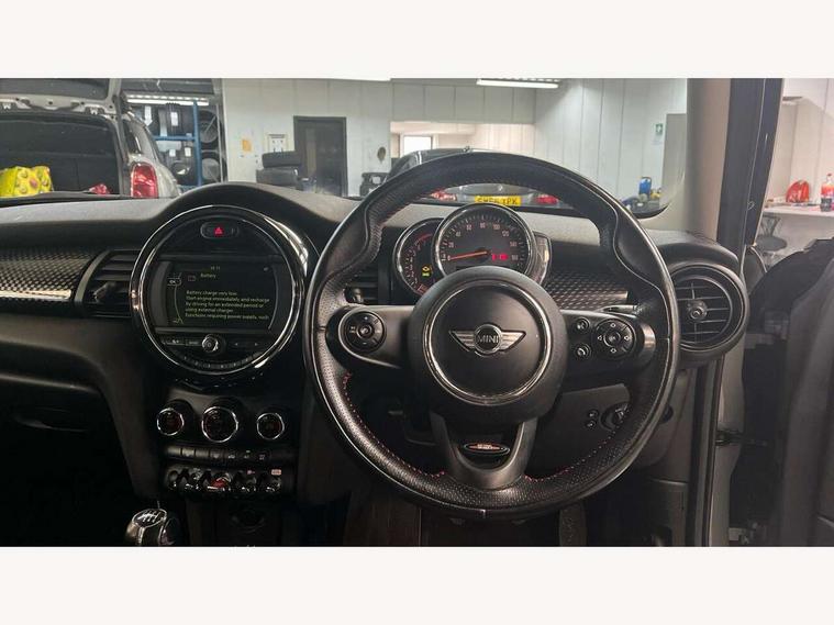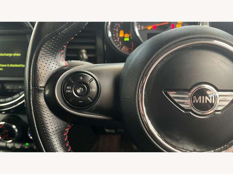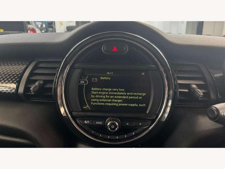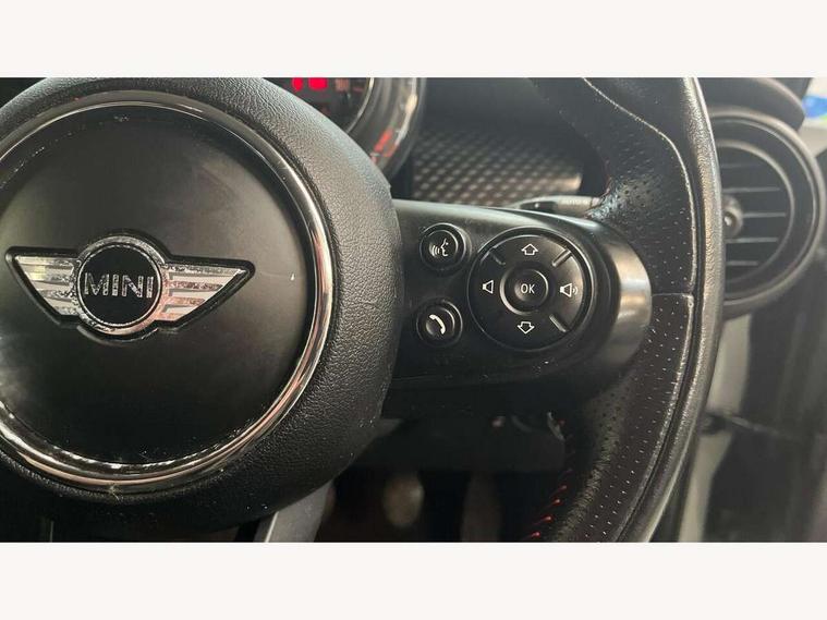 Acoustic seat-belt warning, Brake fluid level warning light, Brake pad wear indicator warning light, DTC - Dynamic traction control, Exterior temperature gauge, Intelligent emergency call, MINI TeleServices, Oil level indicator, On board computer, Push button starter, Service interval indicator, Servotronic PAS, Electronic differential lock, Performance Control, Auxiliary input socket, DAB digital radio module, 2 speed wipers+intermittent wipe, Anti dazzle mirror, Anti trapping/one touch open close front windows, Body colour scoop integrated into engine- compartment lid, Body coloured bumpers, Chrome bezels around rear lights and headlights, Chrome door handles, Chrome plated fuel cap, Chrome plated trim on bottom edge of window, Chrome strip on lower grille, Electric front windows, Electrically adjustable door mirrors, Flared wheel arches, Follow me home headlights, Green tinted heat insulating glass, Heated door mirrors/heated windscreen washers, Heated rear window with auto timer, High gloss black tailgate, Honeycomb radiator grille, Rear wiper, Roof spoiler in roof colour, Twin chromed exhaust pipes, White indicator lights, 2 rear head restraints, 4 boot load lashing points, 4 way manually adjustable passenger seat with height, reach, tilt, backrest and headrest, 6-way manually adjustable driver's seat, Active carbon filter, Air recirculation system, Auxiliary socket in centre console storage compartment, Centre console storage, Driver's seat height adjuster, Driver/passenger sunvisors, Front and rear cupholders, Front head restraints, Front interior light, Front passenger grab handle, Front seat backrest storage nets, Front sports seats, Gear/selector and handbrake in artificial leather, Internal chrome door handles, Isofix child seat preparation, Luggage compartment lighting, Reach + rake adjustable steering column, Rear grab handles, Rear storage trays, Split folding rear seats, Storage compartments in doors, Toolkit in luggage compartment, 3 point seatbelts, ABS/EBD, ASC+T, Cornering brake control (CBC), Crash Sensor - activates hazard/interior lighting + unlocks doors, Driver and passenger airbags, Driver/front passenger side airbags, DSC - Dynamic Stability Control, Fuel cut off safety device, Head airbags, Hill start assist, Manual passenger airbag deactivation function, Seatbelt pretensioners, Tyre pressure warning, Ventilated front disc brakes, Drive away door locking, Locking wheel bolts, Remote central locking/doors+fuel cap+tailgate, Second remote key, Thatcham category 1 alarm + immobiliser,