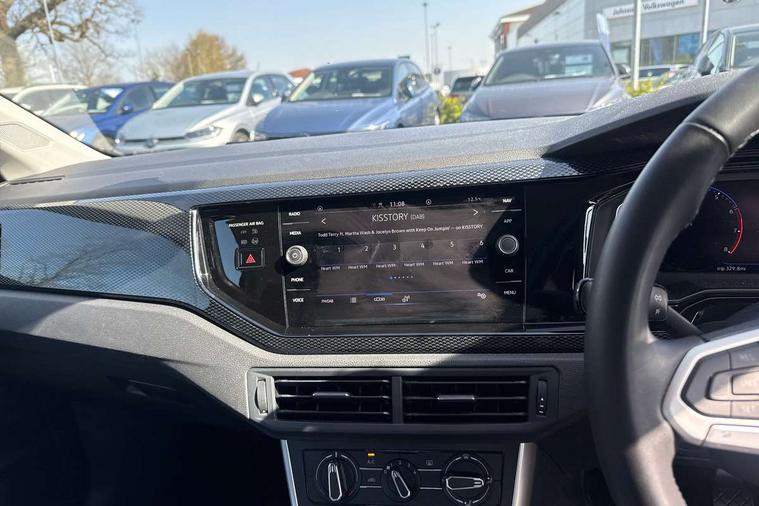 Bluetooth mobile phone interface, Cruise control + speed limiter, Driver alert system, Emergency call service, Lane keeping system Lane Assist, Power assisted speed sensitive steering, Preparation for We connect and We connect plus, Speedo and rev counter, electronic odometer, trip, service interval display and fuel gauge, Standard rear axle, Trip computer, Warning signal and warning light for front and rear seatbelts not fastened, Washer fluid level indicator, Wireless app connect, Front wheel drive, Rear shock absorpion, Start-stop system with battery regeneration (recuperation - energy recovery during braking), DAB Digital radio, Diversity antenna for FM reception, Front and rear 6 speakers, Automatic dimming interior rear view mirror, Body colour bumpers, Body colour door handles, Body colour door mirrors, Electric front windows, Heat insulating darkened glass in side and rear windows, Heat insulating glass windscreen, Power folding adjustable/heated exterior mirrors and front passenger exterior mirror lowering function, Rain sensor, Rear electric windows, Rear fog light, Rear side wing doors, Rear windscreen washer and wiper with interval delay, Third brake light, 12V power socket in centre console, 2 front and 2 rear reading lights, 2 USB-C ports in the front, 2 USB-C charging sockets on the center console in the rear, 3 rear head restraints, 60/40 split folding rear seat and rear seat bench not split, Ceramique headliner, Chrome plated radiator grille inserts, air vent surrounds and light switch surrounds, Door and side trim panel, Driver and front passenger seat height adjustment, Driver/passenger sunvisors with illuminated vanity mirrors, Front centre armrest, Front seat backrest storage pockets, Front standard seats, Handbrake lever handle in leather, Hartley/Thomas cloth upholstery, Isofix child seat preparation easy-fit (for two outer rear seats, and front passenger seat) compatible with I-size, Leather trimmed gear knob, Luggage compartment cover, Luggage compartment floor, Luggage compartment lighting, Multifunction steering wheel, Single front passenger seat, Standard pedal cluster, Light and vision pack - Polo, 3 point height adj front seatbelts + pretensioners, 3x3 point rear seatbelts, ABS, Driver and front passenger airbag with front passenger airbag deactivation, Drivers and front passengers safety optimised head restraints, ESC (Electronic stability control) + EDL (Electronic Differntial lock) and ASR (Traction control), Extended and predictive pedestrian/ cyclist protection, Front assist including city emergency braking, Front curtain and side airbags with center airbag, Front disc brakes, Hill hold control, Manual child lock in rear doors, Rear drum brakes, Single tone horn, Tyre pressure loss indicator, Alarm with interior protection, Anti-theft alarm system with interior monitoring, backup horn, and towing protection, Anti-theft wheel bolts, Electronic engine immobiliser, Lava stone black gloss/matt decorative inserts in dash and front door panels, Low rolling resistance tyres,