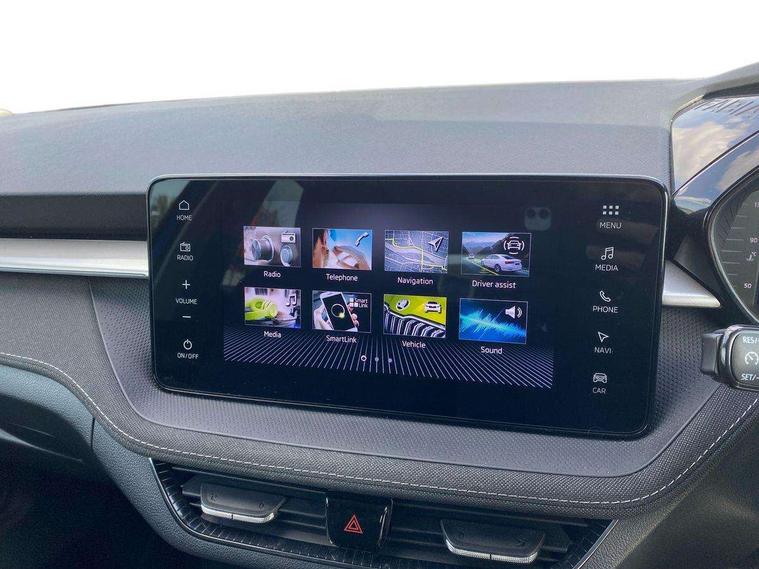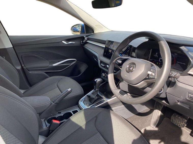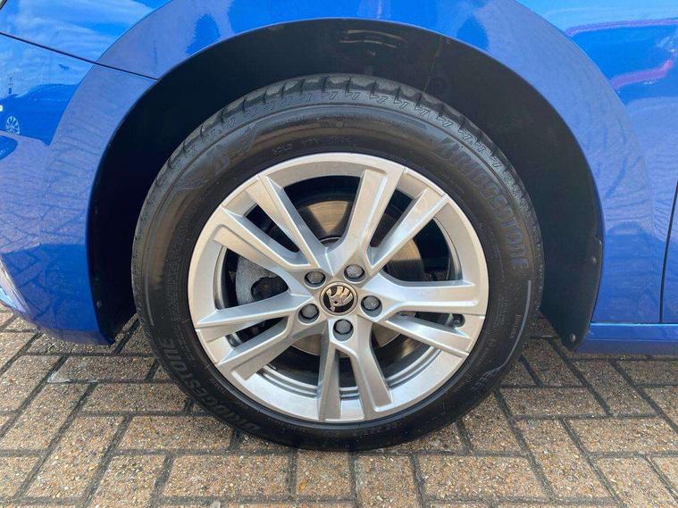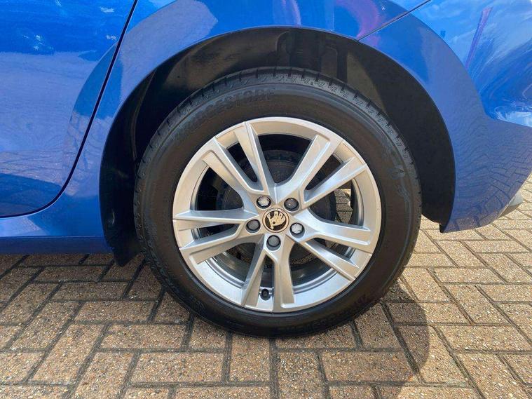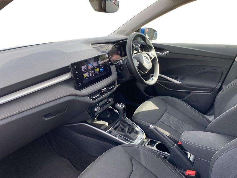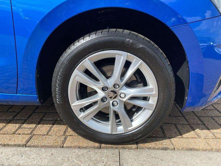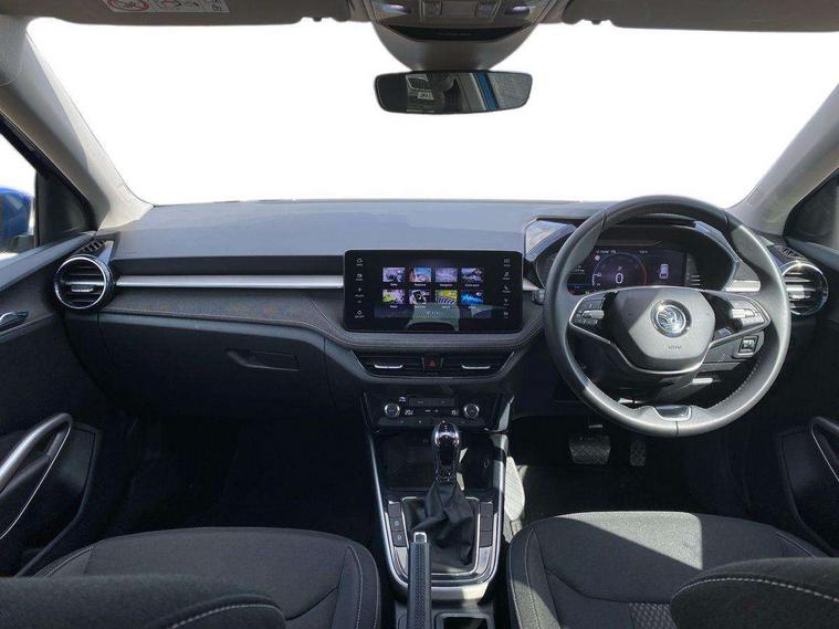 Advanced driver attention and drowsiness monitor, Bluetooth connection, Electromechanical power steering, Exterior temperature gauge, Service interval indicator, Traffic sign recognition, Virtual cockpit with 10.25" colour display, Wireless SmartLink for Apple CarPlay and Android Auto, 6 Speakers (4 in front and 2 in rear), 9.2" colour display skoda navigation system with voice control and web radio, Auxiliary socket for external MP3 player, DAB digital radio reception, Auto dimming rear view mirror, Body colour door mirrors, Body coloured bumpers, Chrome window surround, Door mirror integrated indicators, Front and rear electric windows, Front window wiper intermittent control, Headlight range control - Automatic, Ice scraper in fuel cap, LED daytime running lights with coming and leaving home feature, LED rear lights, Privacy glass, Rear LED fog light, Rear side wing doors, Rear window wiper with washing nozzles, Roof mounted spoiler, SKODA tailgate lettering in chrome, Third brake light, 2 reading lights in front and 2 reading lights in rear, 3 rear headrests, Backrest split and folding, Central console with removable cup holder and storage box, Chrome handbrake release button, Comfort seats, Door sills with fabia badging, Dual zone air conditioning with climatronic electronic control, Fabric upholstery, Front centre armrest, Gearshift knob/handle in leather, Hand brake lever handle in leather, Height adjustable front headrests, Height adjustable front seats, Height adjustable steering wheel, ISOFIX and TopTether anchorage points to the outer rear seats, ISOFIX and TopTether on the front passenger seat, Luggage compartment lighting, Manually adjustable lumbar support in front seats, Metallic grey interior door handles, Pollen filter, Rear seat bench unsplit, Single front passenger seat, Storm grey headlining, Sun visors with mirror and airbag label on passenger side, Textile floor mats, Ticket holder, Umbrella in drivers door, 3-point height adjustable front seats belts with pretensioner and force limiter, Automatic warning lights in case of crash, Driver and passengers airbag with switch off function, e-Call+, ESC including ABS, MSR, ASR, EDS, HBA and XDS, Front and rear seat belt warning, FRONT ASSIST (AEB City and AEB Inter Urban), Front side airbags, Head airbags, Hill hold control, One tone horn, Pedestrian protection, Three rear 3-points safety seat belts with pretensioner and force limiter including stop function for outer rear seat belts, Tyre pressure monitoring system, Anti-theft alarm system including immobiliser, interior monitoring, backup horn, and towing protection, Central locking with radio remote control, interior controls, SAFE function and 2 foldable keys, Chrome edged air vents, Metallic grey central console cover, Metallic grey upper decorative trim, Satin black door and side trim panel in front, Textile microsuede grey lower decorative trim with art grey stitching, Anti-theft wheel bolts protection, Super-low rolling resistance tyres,
