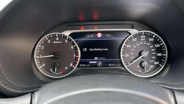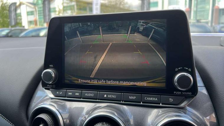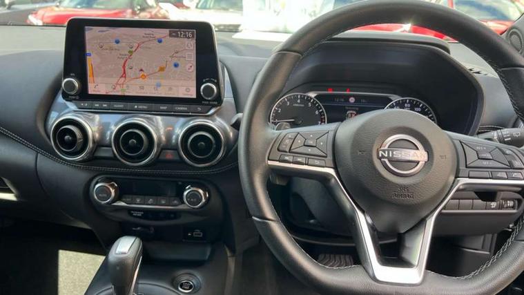 7" full colour TFT screen combimeter, Apple CarPlay and Google Android auto, Drive modes select (Eco, normal and sport), Emergency and breakdown call, Front parking sensor, Idle start/stop system, Intelligent lane intervention, Lane departure warning system, Nissan connect 8" touch screen entertainment system, Nissan connect nav with TomTom traffic, Nissan connect services and Wifi connection, Outside temperature sensor, Power Steering, Rear parking sensor, Traffic sign recognition, Trip computer, Voice recognition, Gasoline particulate filter, 6 speakers, Bluetooth system, USB, Aux-in and 12V socket, DAB Digital radio, Rear console USB port, Auto dimming interior rear view mirror, Auto headlights, Automatic hazard signal with emergency stop signal, Body colour bumpers, Body colour door handles, Electrically adjustable door mirrors with integrated indicators, Follow me home headlights, Front and rear electric window with one touch driver window, Heated and auto folding door mirrors, High beam assist, LED daytime running lights, LED headlamps, LED rear fog lamp, LED rear lamps, Rain sensor windscreen wipers, Rear privacy glass, Rear side wing doors, Rear wiper, Three blink turn signal, 3 height adjustable rear headrests, 3 seat bench in 2nd row, 60/40 split folding rear seat, Automatic climate control, Card holder on driver sunvisor, Cloth upholstery with black and metallic grey syntech leather inserts, Driver and passenger sliding and reclining seats, Driver side rear coat hanger, Driver/passenger sunvisors and vanity mirrors, Front and rear cabin lighting, Front armrest, Front door pockets with bottle holders, Front head restraints, Front/rear passenger grab handles, Grey synthetic leather kneepad, Height adjustable driver's seat, Internal chrome door handles, Leather gearshift knob, Leather steering wheel, Luggage board, Luggage space lighting, Monoform sporty seats, Multifunction steering wheel, Rear door bottle holders, Single front passenger seat, Steering wheel mounted gearshift paddles, Telescopic steering wheel adjustment, Two cupholders in front centre console, Two rear isofix child seat anchorage points with top tether, Welcome light and console tray ambient lighting, ABS with EBD and brake assist, Active ride control, Active Trace Control, Driver and passenger airbags, Driver and passenger side airbags, Electric handbrake with auto hold function, Electronic Stability Programme (ESP), Front and rear curtain airbags, Height adjustable seatbelts, Hill start assist, Intelligent emergency braking with pedestrian and cyclist recognition, Rear door child safety locks, Seatbelt reminder for driver/front passenger and rear seats, Single tone horn, Three 3 point rear seatbelts, Traction control, Tyre pressure monitoring system, VDC Dynamic Vehicle Control, Ventilated rear brake discs, Alarm, Immobiliser, Intelligent key and start push button with walk away lock and approach unlock functions, Remote central locking,
