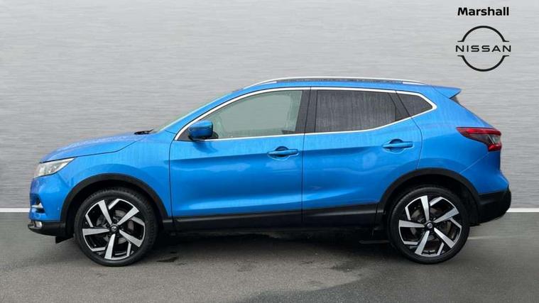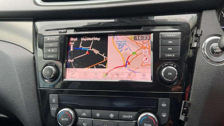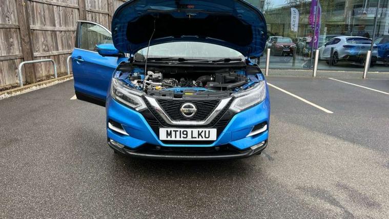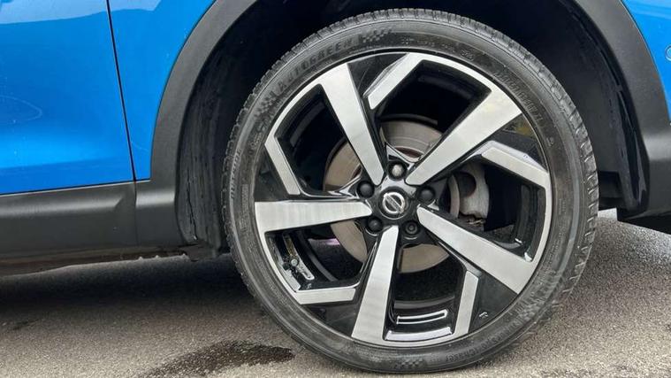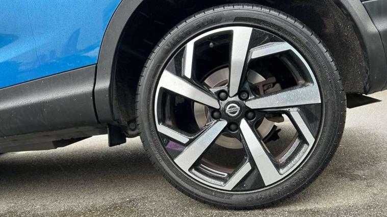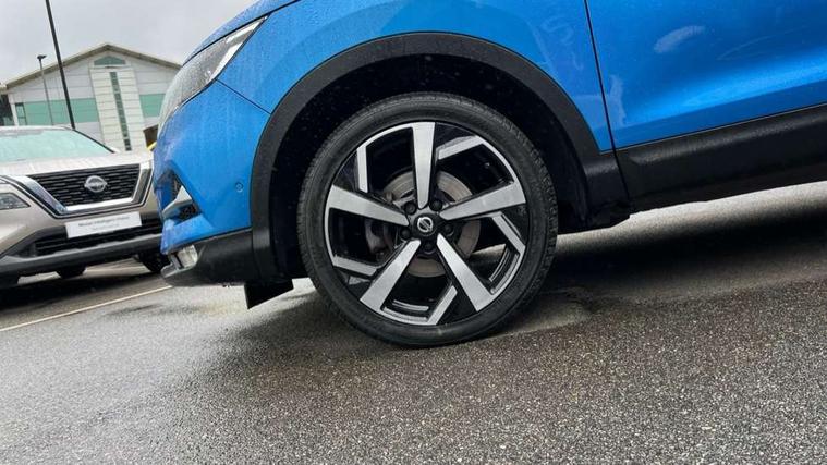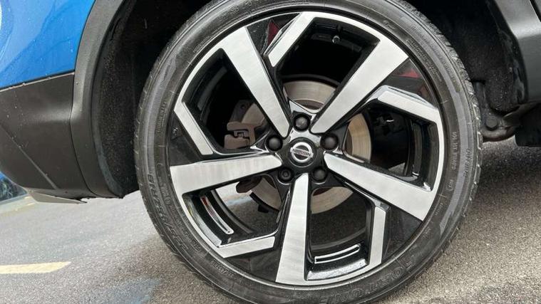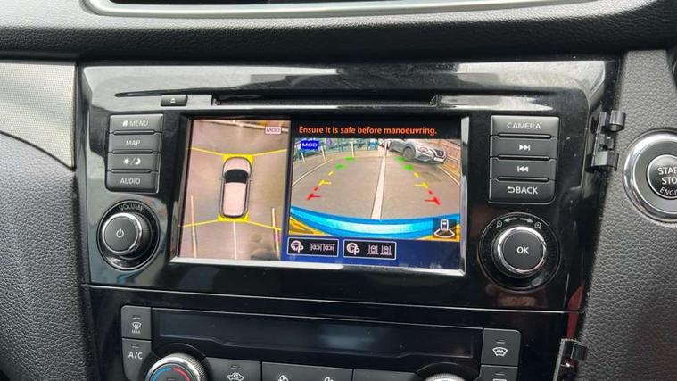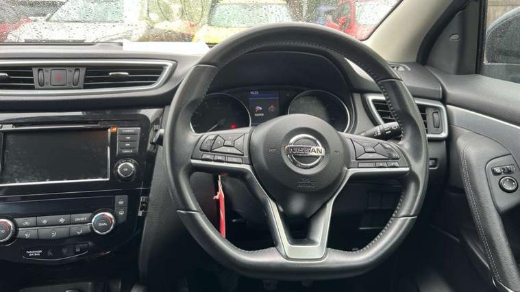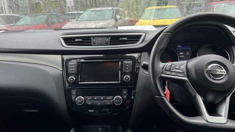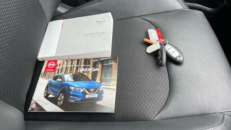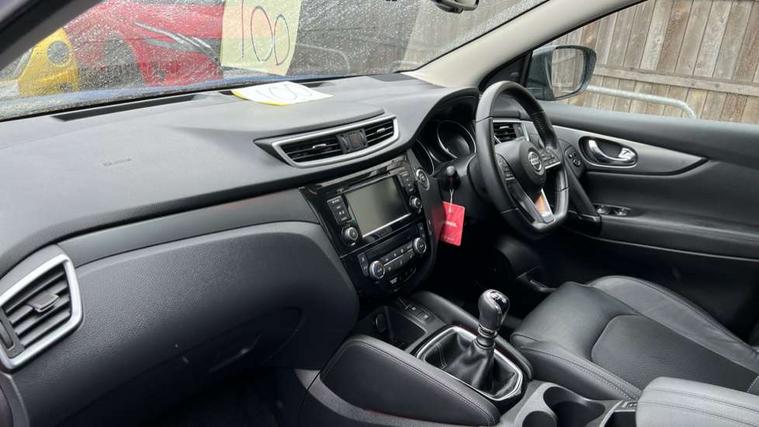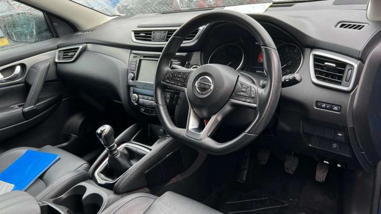 Advanced drive assist display 5'' TFT coloured screen, Android Auto, Apple CarPlay preparation, Bluetooth connectivity, Cruise control + speed limiter, Electric speed sensitive power steering, Front parking sensors, Intelligent around view monitor, Intelligent parking assist, Lane departure warning system, Nissan connect evo 7" touchscreen navigation and entertainment system, Normal or sport selectable steering, Outside temperature sensor, Push button starter, Rear parking sensors, Rear view camera, Service interval indicator, Smartphone integration, Stop/start system, Tomtom connected services, Traffic sign recognition, Trip computer, Voice control system, Nissan chassis control (intelligent ride control, intelligent trace control, intelligent engine brake), AM/FM radio, CD audio system, Aux-in socket, Bose premium 8 speaker system, DAB Digital radio, Steering wheel mounted audio controls, USB port, Anti dazzle rear view mirror, Auto wipers, Body colour bumpers, Body coloured door handles, Body coloured door mirrors, Chrome window surround, Daytime running lights dip function when turn signal applied, Electric folding door mirrors, Electric front and rear windows with one touch illuminated window controls, Electric front/rear windows, Electrically adjustable door mirrors, Front fog lights, Heated door mirrors, High beam assist, Intelligent auto headlights, LED indicators in door mirrors, Matt silver roof rails, Panoramic sunroof with one touch shade, Privacy glass, Rear roof spoiler, Rear wiper with reverse link, Shark fin antenna, Underbody vortex generators, 2 X front 12v power sockets, 3 height adjustable rear headrests, 60/40 split folding rear seat, Ambient lighting in centre console, Boot lighting, Centre console storage box/armrest, Chrome interior door handles, Configurable luggage board system, Dual zone climate control, Electrically adjustable driver seat, Front and rear door pockets with bottle holders, Front and rear seat belt pre-tensioners with load limiters, Height adjustable front headrests, Individual rear seat reading lights, Leather D shaped steering wheel, Leather gear lever, Leather knee pad, Manual height adjustable front passenger seat, Manual lumbar support on driver seat, Manual lumbar support on passenger seat, Monoform front seats with plastic backboard, One touch electric shade, Parcel shelf stow function under luggage board, Part leather upholstery, Pollen filter, Rear armrest with 2 cupholders, Synthetic leather wrapped door handle with contrasting stitching, Tilt/telescopic adjustable steering wheel, Heat package - Qashqai, LED pack - Qashqai, Safety shield plus pack - Qashqai, 6 airbags - Driver, front passenger, curtain and side airbags, ABS, ESP, EBD and brake assist, Auto hold function, Child locks on rear doors, Electronic parking brake, Front and rear seat belt warning, Front passenger airbag deactivation, Height adjustable front seatbelts, Hill start assist, Intelligent emergency braking with pedestrian recognition, Three 3 point rear seatbelts, Tyre pressure monitoring system, Anti-theft immobiliser, Intelligent Key, Remote central locking, Thatcham Cat.1 alarm, Carbon graphite dash trim, Tyre puncture repair kit,