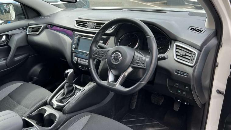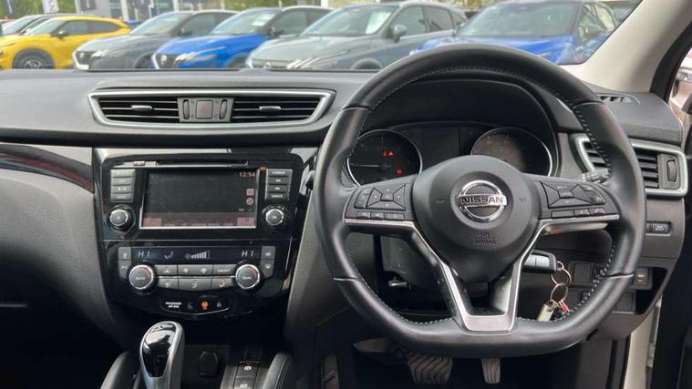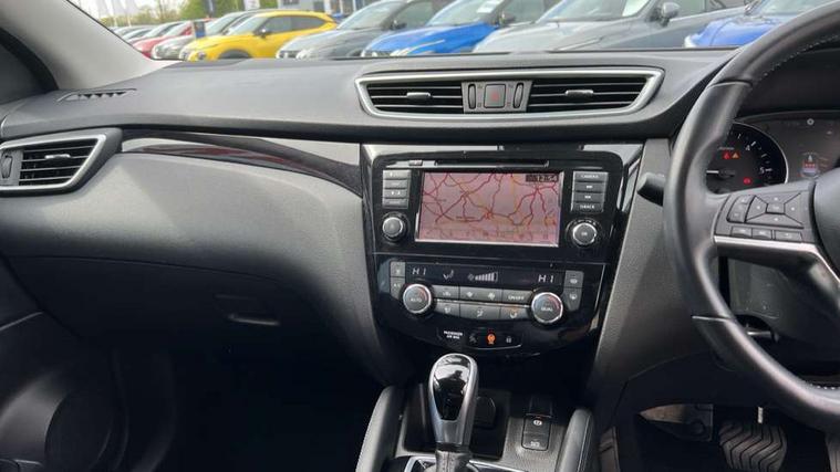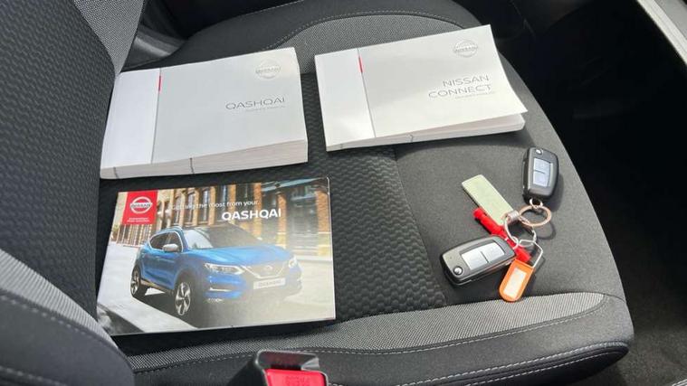 Advanced drive assist display 5'' TFT coloured screen, Android Auto, Apple CarPlay preparation, Bluetooth connectivity, Cruise control + speed limiter, Electric speed sensitive power steering, Front parking sensors, Lane departure warning system, Nissan connect evo 7" touchscreen navigation and entertainment system, Normal or sport selectable steering, Outside temperature sensor, Rear parking sensors, Rear view camera, Service interval indicator, Smartphone integration, Stop/start system, Tomtom connected services, Traffic sign recognition, Trip computer, Voice control system, Diesel particulate filter, Nissan chassis control (intelligent ride control, intelligent trace control, intelligent engine brake), 6 speakers, AM/FM radio, CD audio system, Aux-in socket, DAB Digital radio, Steering wheel mounted audio controls, USB port, Anti dazzle rear view mirror, Auto wipers, Body colour bumpers, Body coloured door handles, Body coloured door mirrors, Chrome window surround, Daytime running lights dip function when turn signal applied, Electric folding door mirrors, Electric front and rear windows with one touch illuminated window controls, Electric front/rear windows, Electrically adjustable door mirrors, Front fog lights, Halogen headlights, Heated door mirrors, High beam assist, Intelligent auto headlights, LED indicators in door mirrors, Rear roof spoiler, Rear wiper with reverse link, Signature LED daytime running lights, Underbody vortex generators, 2 X front 12v power sockets, 3 height adjustable rear headrests, 60/40 split folding rear seat, Ambient lighting in centre console, Boot lighting, Centre console storage box/armrest, Chrome interior door handles, Cloth upholstery, Driver's seat manual height adjust, Dual zone climate control, Front and rear door pockets with bottle holders, Front and rear seat belt pre-tensioners with load limiters, Height adjustable front headrests, ISOFIX on outer rear seats, Leather D shaped steering wheel, Leather gear lever, Leather knee pad, Manual height adjustable front passenger seat, Manual lumbar support on driver seat, Parcel shelf stow function under luggage board, Pollen filter, Rear armrest with 2 cupholders, Tilt/telescopic adjustable steering wheel, 6 airbags - Driver, front passenger, curtain and side airbags, ABS, ESP, EBD and brake assist, Auto hold function, Child locks on rear doors, Electronic parking brake, Front and rear seat belt warning, Front passenger airbag deactivation, Height adjustable front seatbelts, Hill start assist, Intelligent emergency braking with pedestrian recognition, Three 3 point rear seatbelts, Tyre pressure monitoring system, Anti-theft immobiliser, Remote central locking, Thatcham Cat.1 alarm, Piano black dash trim, 17" Alloy wheels, Tyre puncture repair kit,