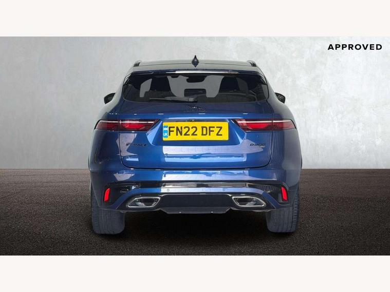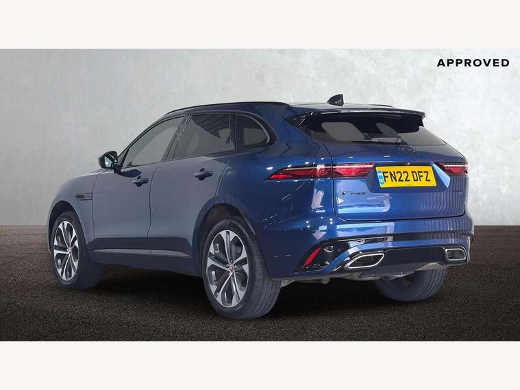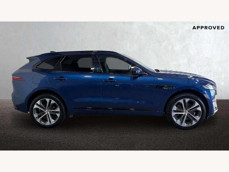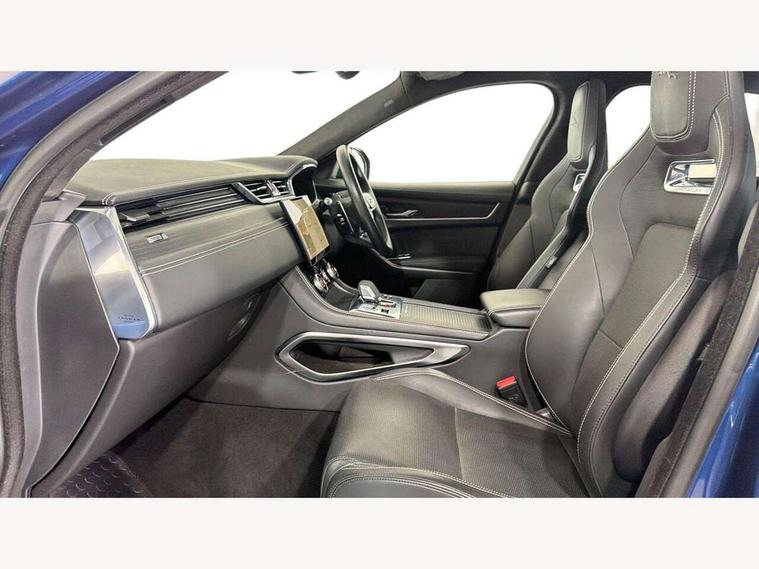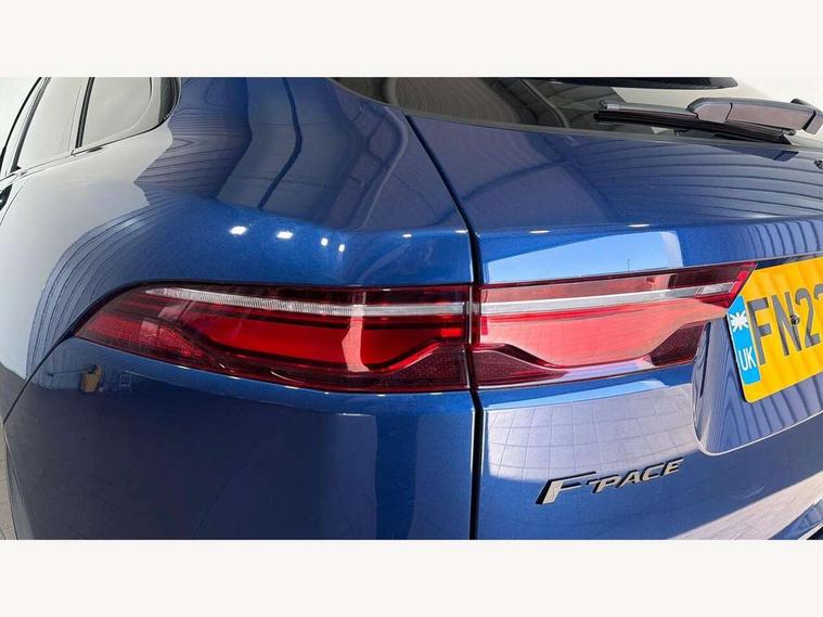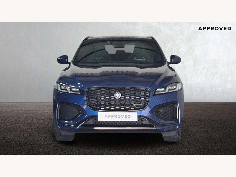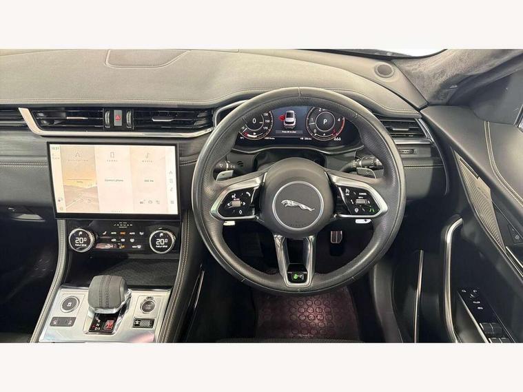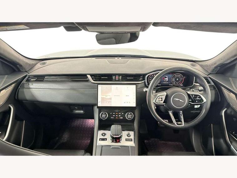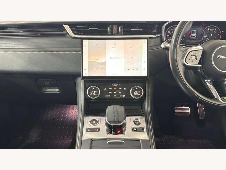 11.4" touchscreen, Adaptive cruise control with steering assist, Android Auto, Apple car play, Blind spot assist, Bluetooth connectivity, Clear exit monitor, Driver alert system, Driver condition monitor, eCall emergency call system, Eco driving style assistant, Electric power assisted steering, InControl remote, Jaguar Toggle shift selector, Lane departure warning system, Lane keep assist, Outside temperature gauge, Personalisation profile management, Pivi pro connected navigation system with app interface and media storage, Pro services and wifi hotspot, Push button starter, Rear collision monitor, Rear traffic monitor, Service interval indicator, Speed proportional steering, Start up sequence with movement in dials and lighting, Traffic sign recognition with adaptive speed limiter, Trip computer, Voice control system, 8 speed automatic transmission, Adaptive dynamics, All terrain progress control, All Wheel Drive (AWD), Configurable dynamics, Open differential with torque vectoring by braking, AM/FM radio, Bluetooth streaming, DAB Radio (Digital Audio Broadcasting), Dynamic volume control, InControl apps, InControl protect, iPod integration, 3 flash lane change indicators, Animated directional indicators, Approach Illumination, Auto dimming rear view mirror, Automatic headlights, Body colour door mirrors, Electric heated/power fold memory door mirrors with approach lights and auto dimming driver side, Electric windows with one touch open/close and anti trap, F-Pace and R Dynamic badge, Green tinted glass, Heated front windscreen + heated washer jets, Heated rear window with timer, Illuminated metal tread plates with Jaguar script, Jaguar script and leaper, LED High level third brake light, LED tail lights, Metal load space scuff plates, Non acoustic front windscreen, R Dynamic badge on side door, Rain sensor windscreen wipers, Rear fog lights, Rear metal tread plates, Rear side wing doors, Rear wiper, Trailer stability assist, Variable front intermittent wipers, 12V power point front, 3 rear headrests, 3 seat bench in 2nd row, Air distribution speed, Bright metal foot pedals, Centre armrest console, Centre console with side storage, Deletion loadspace storage rails, Door sill tread plates, Electrically adjustable steering column, Fold flat front seats, Front centre armrest with storage compartment, Front door storage space, Glovebox finisher with jaguar script, Heated steering wheel, Hooks in loadspace, Illuminated glovebox, Interior front door handles with separate locking switches, ISOFIX on outer rear seats, Jaguar sense, Luggage tie downs in loadspace, Mist sensing, Multifunction steering wheel, Overhead lighting console, Overhead stowage for sunglasses, Passive front head restraints, Premium cabin lighting, Premium carpet mats, R-Dynamic branded leather steering wheel, Rear air vents, Rear armrest with twin cupholders, Rear centre headrest, Rear door storage space, Reversible boot floor, Satin chrome gearshift paddles, Shopping bag hook, Single front passenger seat, Sunvisors with illuminated vanity mirrors, Twin front cupholders with cover, Online Pack with data plan - F-Pace, 380mm front brakes and 325mm rear brakes, 3x3 point rear seatbelts, ABS, All surface progress control (ASPC), Brake pad warning light, DSC - Dynamic Stability Control, Electric parking brake (EPB), Emergency brake assist, Front airbags with passenger seat occupant detector, Front and rear seatbelt reminder, Front side airbags, Full length side window curtain airbag, Hill launch assist, Power operated child locks, Torque vectoring brake, Traction control, Tyre pressure monitoring system, Immobiliser, Keyless entry, Keyless start, Locking wheel nuts, Perimeter alarm, Remote central locking, Valet mode,