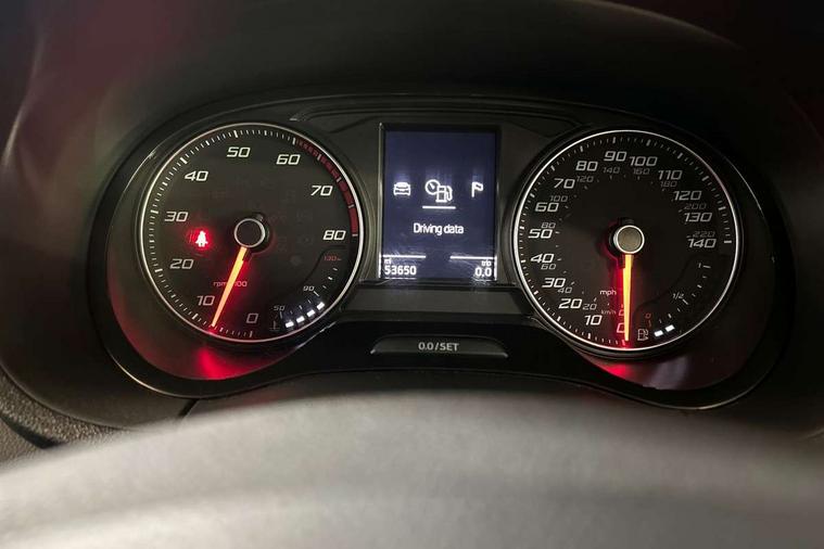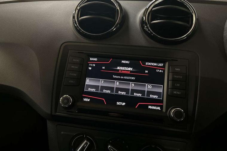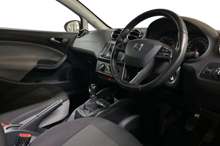 'Lights On' Reminder warning buzzer, Bluetooth system, Digital clock, Low fuel warning light, Outside temperature gauge, Satellite navigation system, SEAT logo boot release, Service interval indicator, Speed sensitive power steering, Trip computer, Auxiliary input socket, Digital Audio Broadcast (DAB) Tuner, Steering column with mounted audio controls, Body colour door handles, Body coloured bumpers, Cornering front fog lights, Electric headlight adjustment, Electrically adjustable and heated door mirrors, LED daytime running lights, LED tail lights, One touch electric front windows, Rear wiper, 12V accessory power point in centre console, 3 cupholders, Boot light, Driver/passenger sunvisors and vanity mirrors, Dust/pollen filter, Easy entry and height adjustable passenger seat, Front courtesy lights, Front door pockets, Front reading lights, Front seat and rear pockets, Front/rear floor mats, Height adjustable driver's seat, Height adjustable front/rear head restraints, Height/reach adjust steering wheel, Illuminated glovebox, Isofix system on outer rear seats, Kinetic cloth upholstery, Leather steering wheel and gear knob, Rear centre head restraint, Split folding rear seats, Full link media system pack - Ibiza, 3 point seatbelts on all 3 rear seats, ABS, Active front headrests, Driver and passenger airbags, ESP+EBA, Front passenger airbag deactivation, Front side airbags, Multi-Collision braking, Seatbelt warning, Tyre pressure monitoring system, 2 folding remote keys with window open/close function, Deadlocks, Electronic engine immobiliser, Locking wheel bolts, Remote central locking, Volumetric alarm with back up horn,