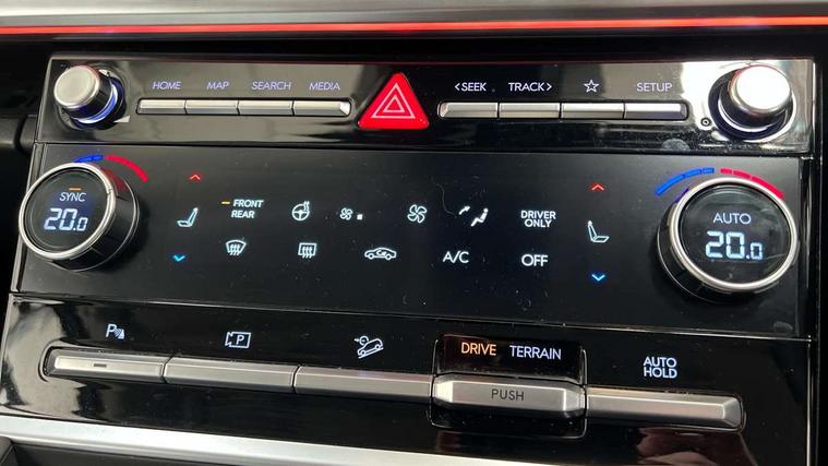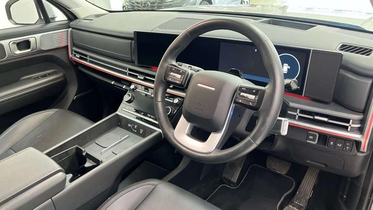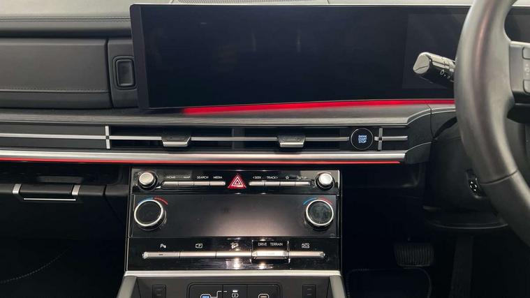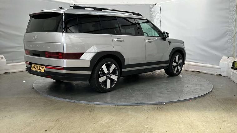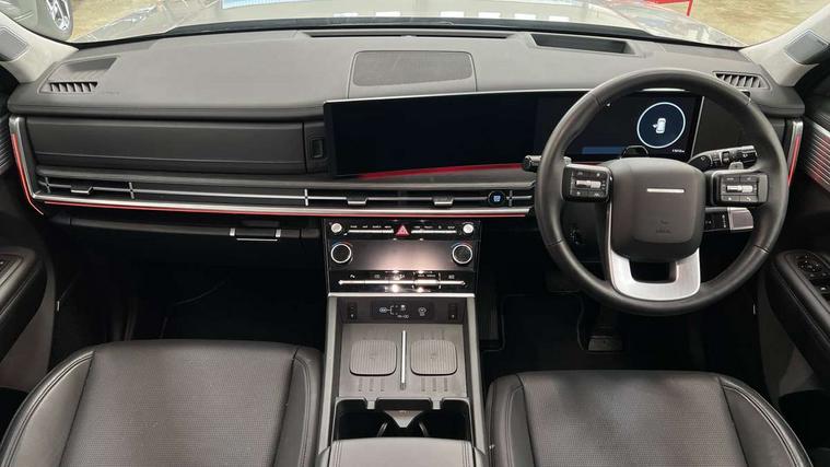 12.3" Drivers supervision instrument cluster with LCD display, 360 degree parking sensors, Blind spot collision avoidance assist (BCA), Blind spot view monitor (BVM), Bluelink and Wireless Apple Carplay/Android Auto, Bluetooth connectivity with voice recognition, Drive mode selector, Driver status monitor (DSM), Dual wireless phone charging pad, Emergency services call system, Forward collision avoidance assist (FCA 2.0), Head up Display, Highway drive assist 2 (HDA 2), Intelligent speed limit assist (ISLA), Lane departure warning system (LDW), Lane Follow Assist 2 (LFA 2), Lane keeping assist (LKA), Low washer fluid warning, Navigation based smart adaptive cruise control with stop and go, Over the air software updates (OTA), Parking Collision Avoidance Assist-Reverse (PCA-R), Power assisted steering, Remote smart parking assist, Safe exist assist (SEA), Smart electric tailgate with hand's free opening function, Surround view monitor, Self levelling suspension, Shift by Wire Gear Selector (SBW), 12.3" Touchscreen display with satellite navigation, 2nd Row USB C Ports x2 Charging, 3rd Row USB C Ports x2 Charging, Front USB C port 1 charging and 1 data/charging, Premium BOSE sound system with 12 speakers and subwoofer, Steering wheel audio, phone and cruise controls, Automatic headlights with dusk sensor, Automatic windscreen wipers with rain sensor, Body colour bumpers, Digital centre mirror, Dual glass electric tilt and slide sunroof, Dynamic welcome lights, Electric adjustable/heated/auto power folding door mirrors, Front and rear electric windows, Heated rear window, Hidden rear wiper, High beam assist, LED daytime running lights, LED Headlights, LED indicator lights, LED indicators in door mirrors, LED positioning lights, LED taillights, LED third brake light, Manual rear door blinds, Rear side wing doors, Rear windows and tailgate privacy glass, Roof rails, Solar glass windscreen and front windows, Windscreen acoustic film, Windscreen auto defog function, 2nd and 3rd row center armrest with cupholder, 3rd row head restraints, Centre rear head restraint, Dual zone climate control air conditioning, Electrically adjustable front seats with 2 way electric lumbar support, Front head restraints, Front seats with memory, Heated front seats, Heated rear seats, Height and reach electrically adjustable steering column, Leather upholstery, Leather wrapped heated steering wheel, Luggage cover, Luggage hooks, Luggage net, Multi colour LED ambient lighting, Rear head restraints, Single front passenger seat, Split folding (50/50) third row seats, Split folding (60/40), sliding and reclining second row seats, Sun Visors with driver and passenger illuminated vanity mirrors, Two front cup holders, Ventilated front seats, Trailer wiring pack - Santa Fe, 3 point seatbelts on all seats, Adjustable regenerative braking paddle shifters, Airbag - Front, front side, curtain and centre front airbags, Anti-lock brake system (ABS), Dynamic brake control, Electric parking brake with auto hold function, Electronic Stability Control (ESC), Hill start assist control (HAC), Manual child lock in rear doors, TSA (Trailer Stability Assist), Tyre pressure monitoring system, Immobiliser, 20" Standard silver alloy wheels, Tyre mobility kit,