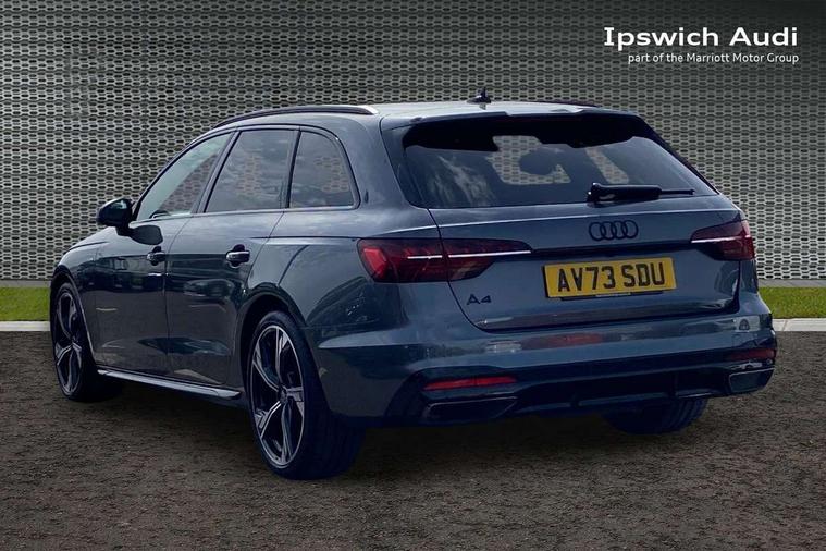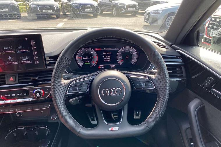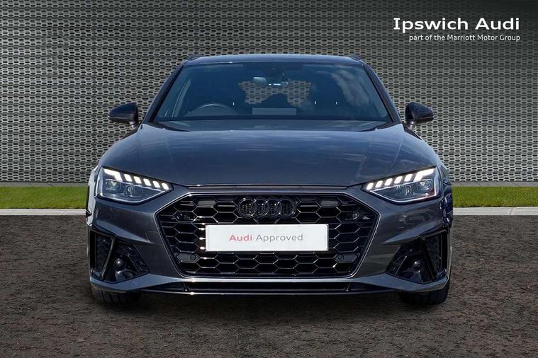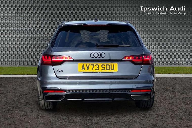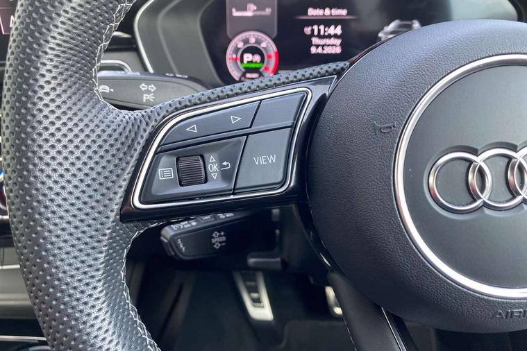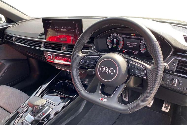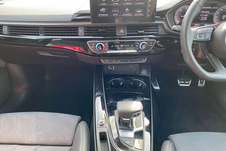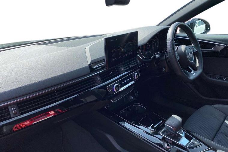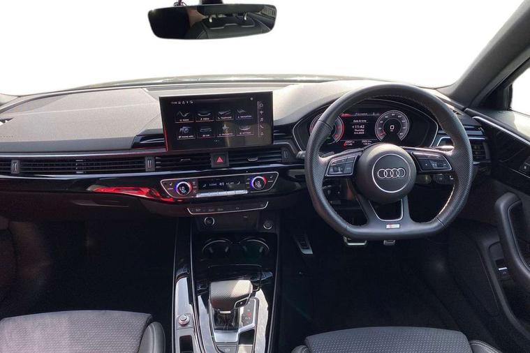 Audi connect safety and service (e-call), Audi drive select, Audi smartphone interface, Audi virtual cockpit, Automatic start-stop system with coasting functionality and efficiency programme, Bluetooth interface, Camera based traffic sign recognition, Electromechanical power steering, Email, calendar and text messages displayed via MMI, Front and rear parking sensors, Lane departure warning, MMI Navigation plus with MMI touch includes 10.1" high resolution colour MMI display, 3D map, Power operated tailgate, Rear view camera, Voice control system, Sports suspension lowered by 23mm, 2 USB charging ports, 8 passive loudspeakers, DAB digital radio reception, Audi beam uses LEDs to project the audi logo onto the ground as you exit your A4, Auto dimming rear view mirror, Black Audi rings and black badging (model name in black badging, no engine badging), Body colour door handles, Body colour front spoiler lip, Body colour side sill trim, Electric adjustable/heated/folding door mirrors with auto dimming, Exhaust tailpipes in high dark chrome, Grained matt black side air inlets with matt aluminium silver inlay, High beam assistant, High gloss black B pillar trims and triangular rear door trim, LED headlights with LED rear lights + dynamic rear indicators + headlight adjustment and high beam, turning light + LED daytime running lights, LED third brake light, Privacy glass, Rain and light sensors, Rear diffuser in matt black with trim strip in matt aluminium silver, Rear side wing doors, Rear wiper, RS4 rear spoiler in body colour, S Line roof edge spoiler, Sport front and rear bumpers with side skirts, Variable intermittent front wash/wipe, Windscreen with acoustic glazing, 4 way electric lumbar support for driver and front passenger, 40/20/40 split folding 3 rear seat bench in 3 parts with rear centre armrest, Black carpets, Black cloth headlining, Black perforated leather gearknob, Contrast stitching on seats, steering wheel and gear lever gaiter, Deluxe 3 zone electronic climate control, Electric load area cover, Front and rear head restraints, Front centre armrest, Heated front seats, Illuminated door sill trims with S logo, ISOFIX child seat mounting and top tether, Manual seat adjustment, Single front passenger seat, Stainless steel pedals and foot rest, Black styling pack - A4 Avant, LED Interior light pack - A4/S4, 3 rear seatbelts, 6 airbags - Driver, front passenger, curtain and side windows, Attention and drowsiness assist, Electronic Stabilisation Control (ESC) including ABS, ASR and EDL, Hill hold assist, Multi collision brake assist, Pop-up bonnet for pedestrian protection, Pre sense city, Rear door child safety locks, Seatbelt monitoring, Warning triangle and first aid kit, Anti theft alarm, Anti theft wheel bolts, Central locking, Keyless Go, Piano black finish inlay, Tool kit, Tyre repair kit,
