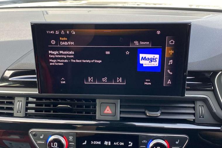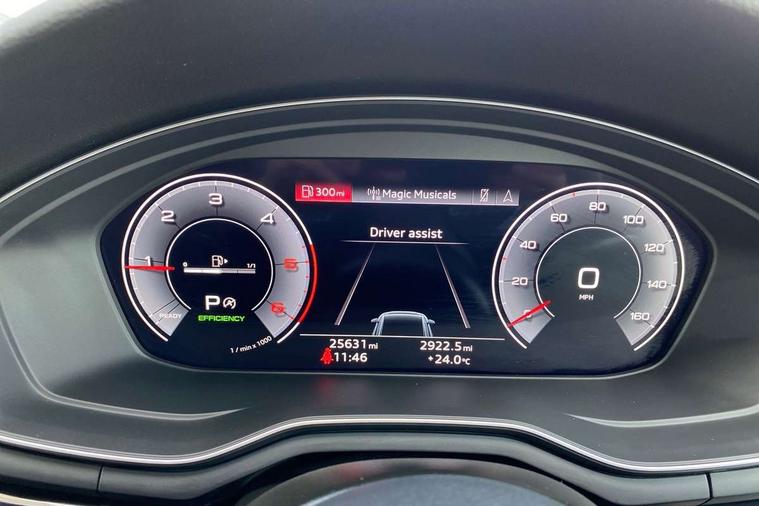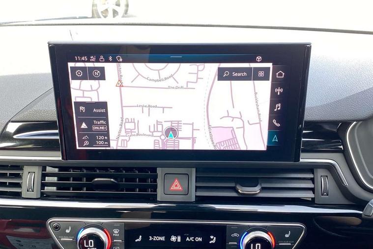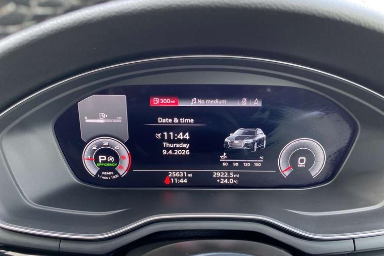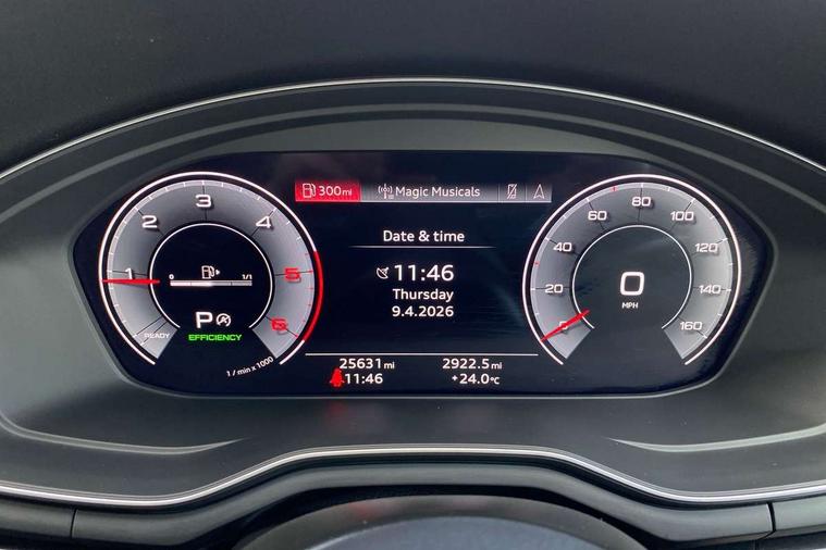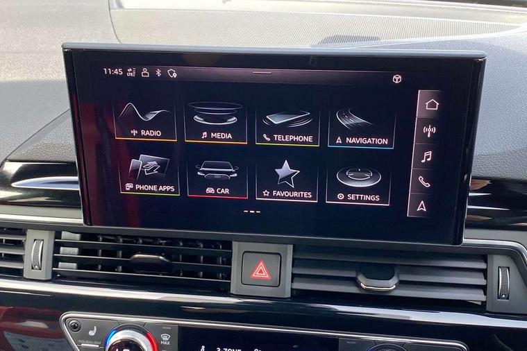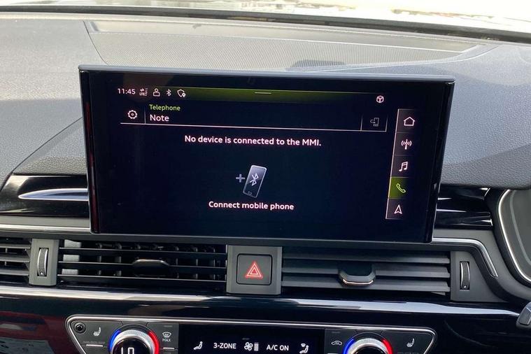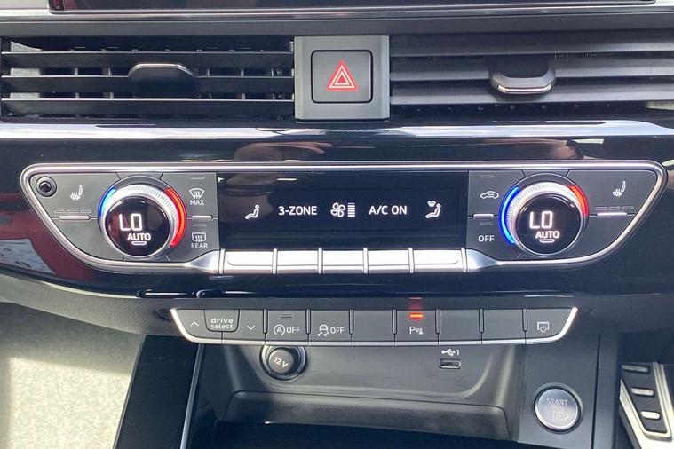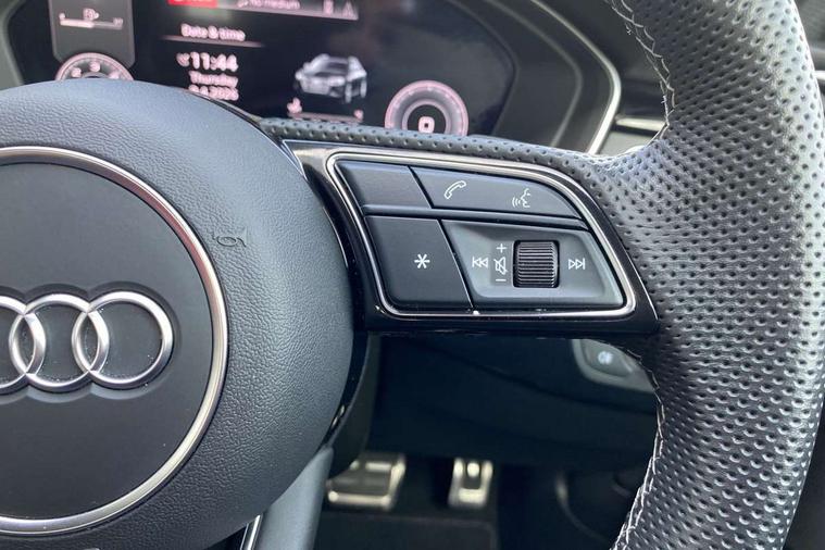 Audi connect safety and service (e-call), Audi drive select, Audi smartphone interface, Audi virtual cockpit, Automatic start-stop system with coasting functionality and efficiency programme, Bluetooth interface, Camera based traffic sign recognition, Electromechanical power steering, Email, calendar and text messages displayed via MMI, Front and rear parking sensors, Lane departure warning, MMI Navigation plus with MMI touch includes 10.1" high resolution colour MMI display, 3D map, Power operated tailgate, Rear view camera, Voice control system, Sports suspension lowered by 23mm, 2 USB charging ports, 8 passive loudspeakers, DAB digital radio reception, Audi beam uses LEDs to project the audi logo onto the ground as you exit your A4, Auto dimming rear view mirror, Black Audi rings and black badging (model name in black badging, no engine badging), Body colour door handles, Body colour front spoiler lip, Body colour side sill trim, Electric adjustable/heated/folding door mirrors with auto dimming, Exhaust tailpipes in high dark chrome, Grained matt black side air inlets with matt aluminium silver inlay, High beam assistant, High gloss black B pillar trims and triangular rear door trim, LED headlights with LED rear lights + dynamic rear indicators + headlight adjustment and high beam, turning light + LED daytime running lights, LED third brake light, Privacy glass, Rain and light sensors, Rear diffuser in matt black with trim strip in matt aluminium silver, Rear side wing doors, Rear wiper, RS4 rear spoiler in body colour, S Line roof edge spoiler, Sport front and rear bumpers with side skirts, Variable intermittent front wash/wipe, Windscreen with acoustic glazing, 4 way electric lumbar support for driver and front passenger, 40/20/40 split folding 3 rear seat bench in 3 parts with rear centre armrest, Black carpets, Black cloth headlining, Black perforated leather gearknob, Contrast stitching on seats, steering wheel and gear lever gaiter, Deluxe 3 zone electronic climate control, Electric load area cover, Front and rear head restraints, Front centre armrest, Heated front seats, Illuminated door sill trims with S logo, ISOFIX child seat mounting and top tether, Manual seat adjustment, Single front passenger seat, Stainless steel pedals and foot rest, Black styling pack - A4 Avant, LED Interior light pack - A4/S4, 3 rear seatbelts, 6 airbags - Driver, front passenger, curtain and side windows, Attention and drowsiness assist, Electronic Stabilisation Control (ESC) including ABS, ASR and EDL, Hill hold assist, Multi collision brake assist, Pop-up bonnet for pedestrian protection, Pre sense city, Rear door child safety locks, Seatbelt monitoring, Warning triangle and first aid kit, Anti theft alarm, Anti theft wheel bolts, Central locking, Keyless Go, Piano black finish inlay, Tool kit, Tyre repair kit,