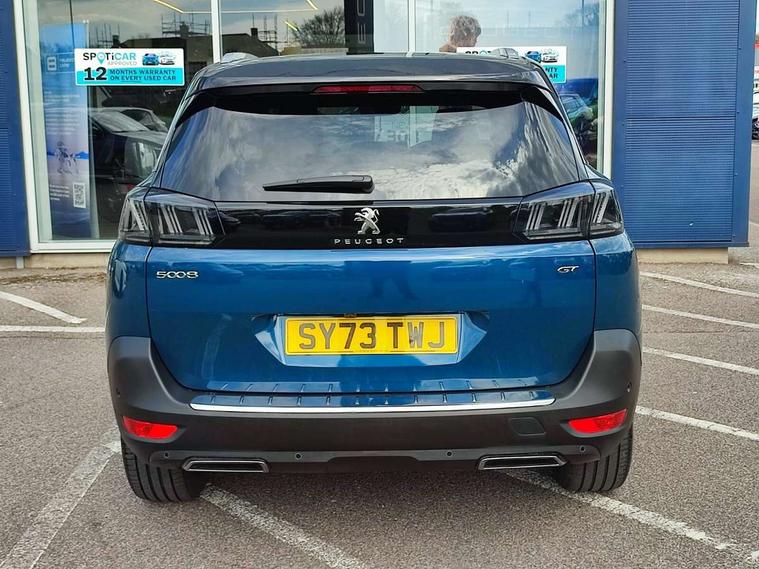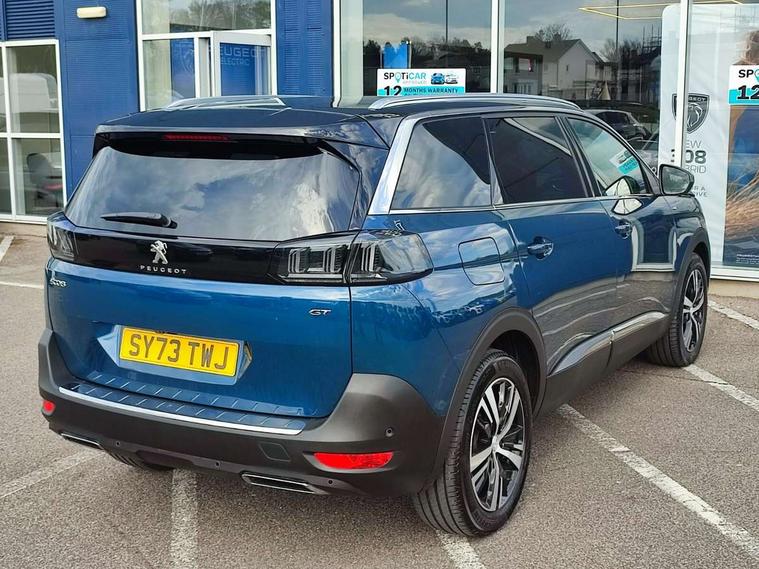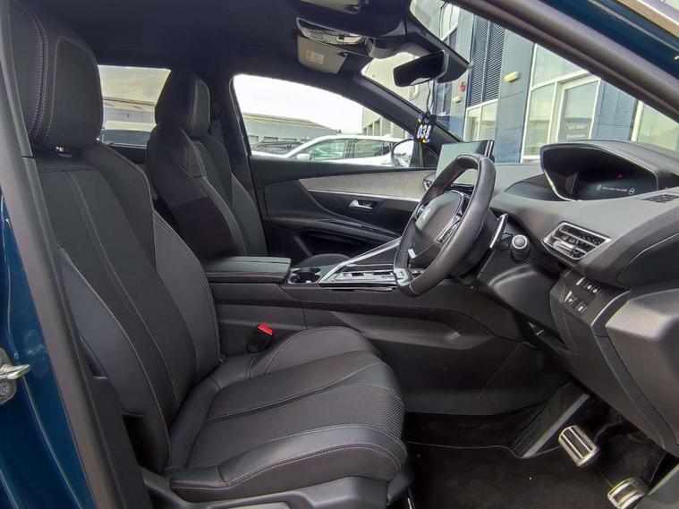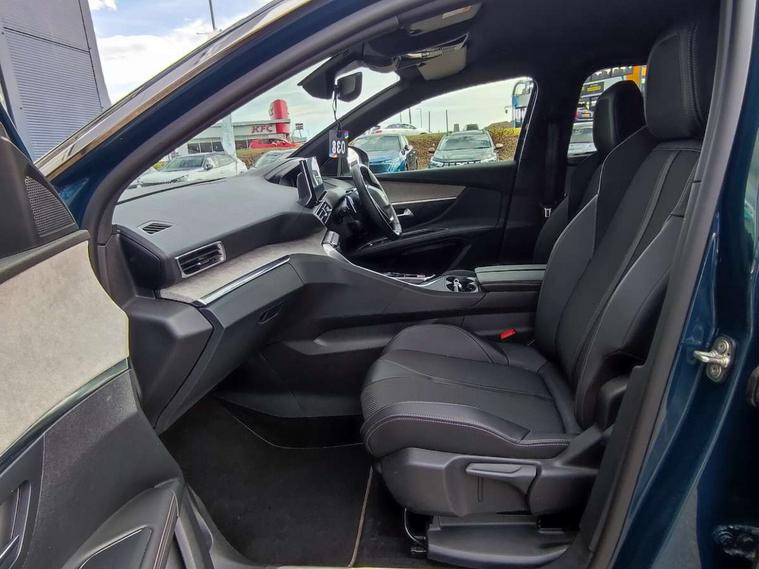 3D connected navigation with 10" HD touchscreen + voice recognition system, Apple car play and Android auto, Bluetooth telephone connection, Drive mode selector (Eco, Normal and Power), Driving timer alert system, Emergency services call system, Extended traffic sign recognition, Exterior temperature indicator with ice warning, Front and rear parking sensors, Lane departure warning system, Multi function trip computer, Peugeot i-cockpit with configurable 12.3" headup digital instrumental panel and compact sports steering wheel, Rear passenger USB charging sockets (x2) (type A), Speed limit recognition and recommendation, Dynamic stability control and electronic anti-skid system, Bi Tuner radio including DAB, USB socket, Aluminium front door sills, Auto self levelling headlights, Automatic activation of hazard warning lights, Black diamond door mirror covers, Black diamond roof, Body colour door handles, Body protectors in black, Dark tinted rear side and tailgate windows, Dynamic frameless design in front radiator grille, Electric adjustable heated door mirrors, Front windscreen wiper with magic wash cleaning system, Full LED headlights with fog mode, Gloss black B and C pillar and aerodynamic deflector trim, Gloss black rear cluster connecting strip, Gloss black windscreen trim, GT emblem (front wings and tailgate), Headlights left on audible warning, Heated rear windscreen with integrated antenna, LED daytime running lights in fang style, LED front indicator, LED rear number plate lighting, LED side indicator lights integrated into door mirrors, LED third brake light, One touch electric front/rear windows with pinch protection, Power folding door mirrors, Rear LED PEUGEOT signature Claw Effect lights (with daylight function) with clear lens and scrolling LED direction indicators, Rear side wing doors, Rear windscreen wiper with auto activation when reversing, Stainless steel door sill scuff plates, Twin exhaust effect trim, 2 cupholders in front centre console, 2 rear reading spotlights, 2 separate seats in 3rd row, 2nd row window blinds, 3 bench rear seats in 2nd row, 3 x 12V power sockets, 4 Grab handles retractable and damped, Aikinite stitching in armrest, gear lever and dashboard facia, Aluminium pedals, Automatic dual zone climate control, Aviation tables on seat back of first row, Blue ambient lighting for connecting zone, Blue ambient lighting for front cupholders, Blue ambient lighting to front door panels, Blue ambient lighting to head up instrument panel, Brumeo fabric trimmed door armrests, Central front armrest with butterfly wing opening and illuminated storage compartment, Electric power steering with reach and rake adjustable steering column, Flocked front door pocket interior with blue ambient lighting, Flocked glovebox interior, Fold flat front passenger seat with picnic table, Footwell lighting, Front interior light with 2 reading spotlights and rear interior light with timer, Front passenger seat manual adjustment (longitudinal and back rest angle), Height adjustable passenger seat, Illuminated glove box, central storage area and load area, Illuminated vanity mirror, Isofix child seat fittings x 3 in the second row, LED interior lighting, Map pocket on front seat backs, Mistral floor mats with Aikinite contrast stitching, Mistral full grain perforated leather steering wheel with aikinite stitch detail and satin chrome 'GT' emblem, Rear ventilation system, Retractable parcel shelf, Roof lining and windscreen pillars in Mistral black, Satin chrome digital instrument panel and touchscreen trim, Satin chrome front door panel recess trim, Satin chrome interior door handles, Satin chrome scorpion's tail and toggle switch trim, Seatbelt not fastened audible and visual alert for front seats, Seatbelt unfastened on the move audible and visual alert for front and rear seats, Second row underfloor storage, Single front passenger seat, Third row seats (can be stored under bootfloor or removed completely), Twin rear coat hooks, Drive assist plus package - 5008, Visibility pack - 5008 GT, ABS + EBD + EBA, Adaptive driver and front passenger airbags including passenger airbag deactivation function, Electric child locking functionality on rear windows and doors, Electronic parking brake + Hill assist, ESP and ASR traction control with deactivation switch, Five 3 point rear safety belts, Front and rear curtain airbags, Front optimised safety headrests and rear retractable headrests (x3), height adjustable, Front side airbags, Front three point retractable seatbelts height adjustable with pre tensioners and force limiters, Front ventilated disc brakes, Rear disc brakes, Rear three-point retractable seatbelts (x3) with pre-tensioners and force limiters in the outer rear seats, Single tone horn, Automatic door locking when moving off, Electronic code immobiliser, Perimetric and volumetric alarm with lift and tilt sensor, Peugeot Open and Go System, Remote control central locking with two plip keys,