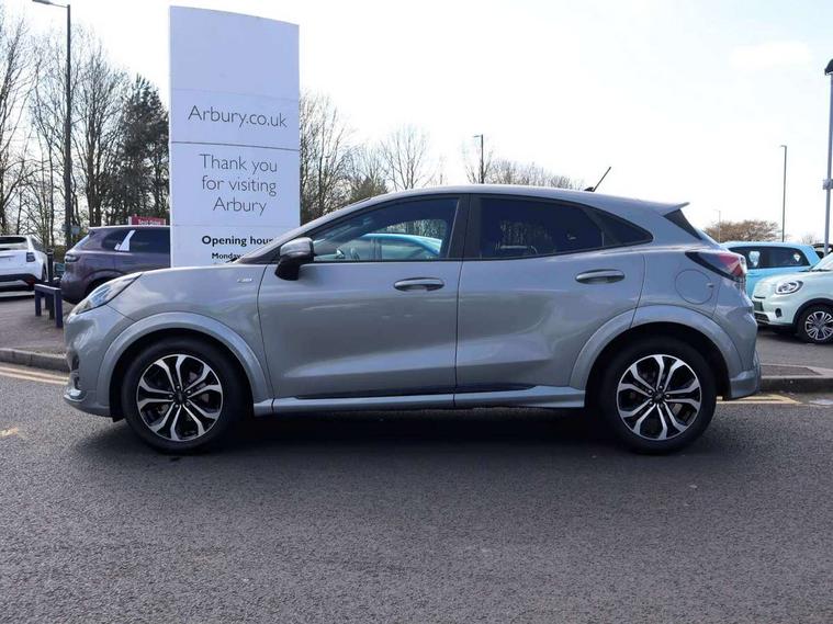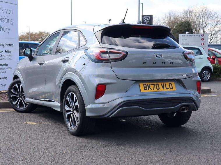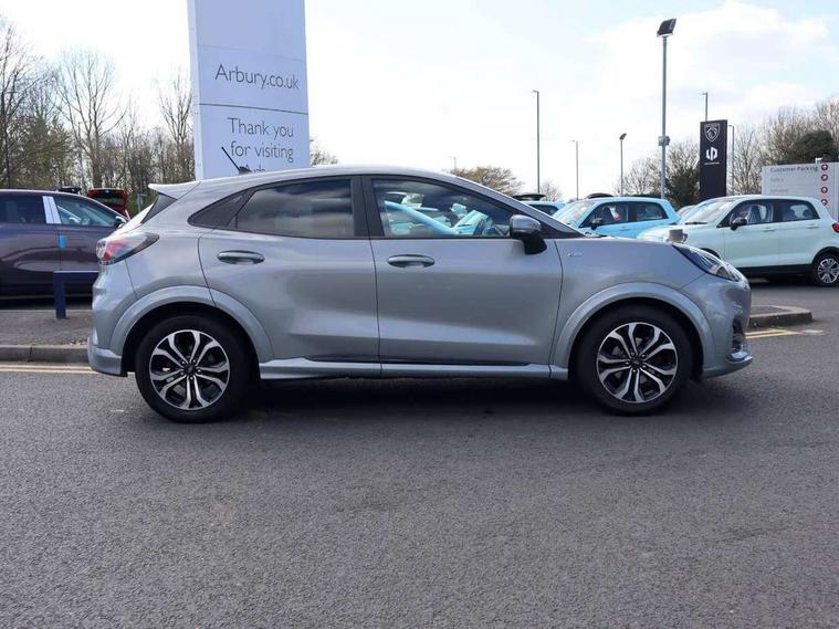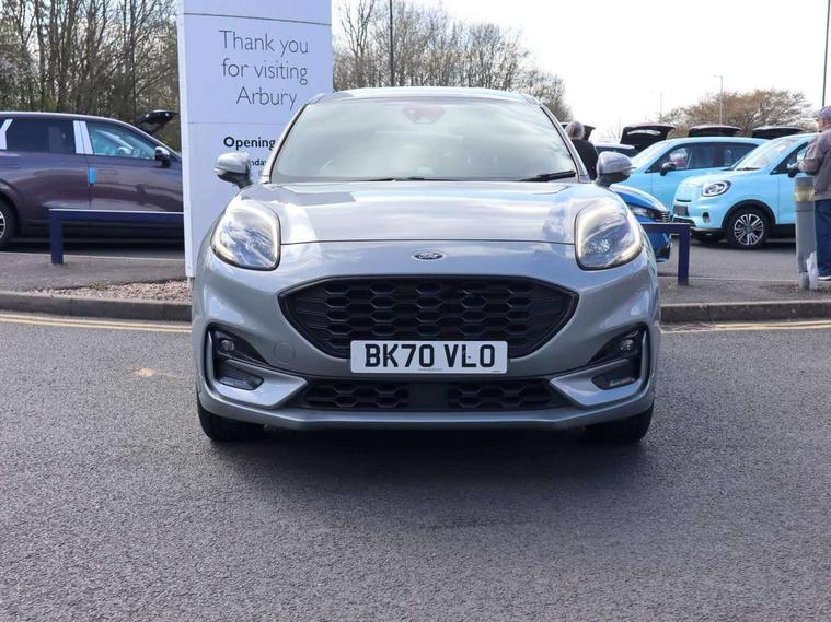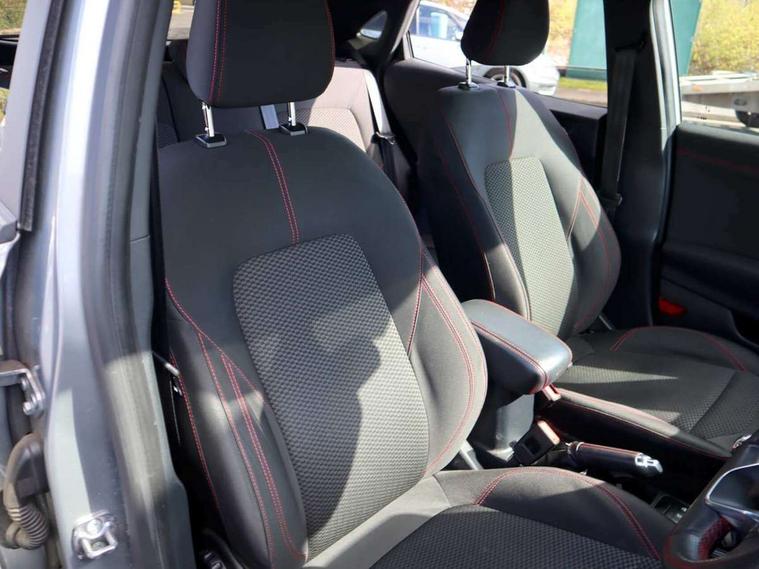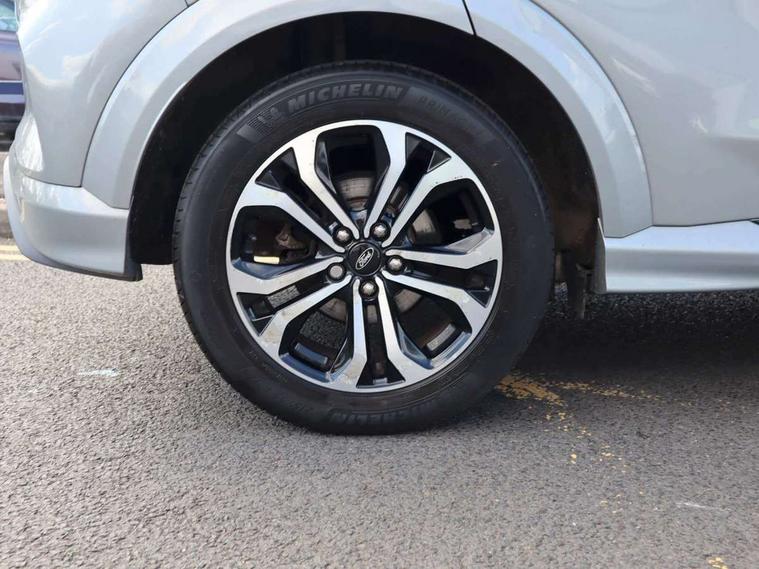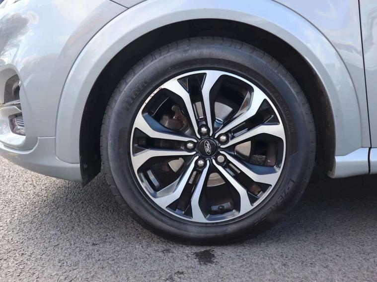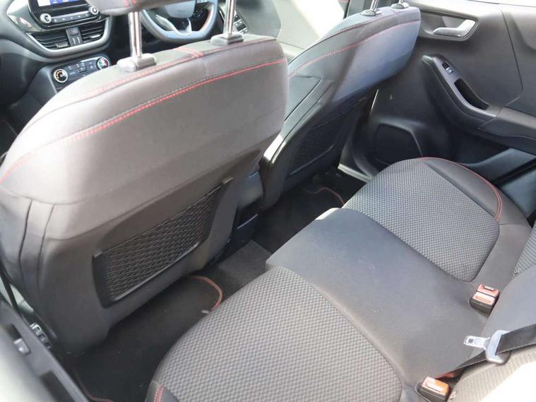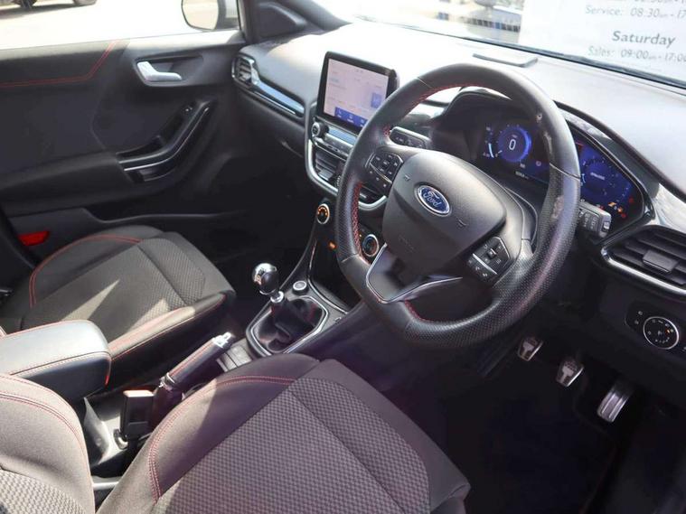Ford easy fuel, Full digital 12.3" instrument cluster, Lane keeping aid with lane departure warning, Power assist steering, Rear parking sensor, Selectable drive modes(Normal, Eco, Sport, Slippery and Trail), Automatic headlights with rain sensing wipers and auto high beam, Body coloured door mirrors, Front fog lights with cornering lights and LED rear lamps, Power foldable heated door mirrors with puddle lamps, Quickclear heated windscreen, Rear wiper, ST-Line body kit with large rear spoiler wth sports suspension, Alloy sports pedals, Centre console with armrest and stowage, Cloth upholstery, Driver seat height/lumbar adjust, Ford megabox extended bootspace, Front and rear floor mats, Front and rear head restraints, Manual air conditioning, ST-Line flat bottomed sensico leather steering wheel with leather handbrake and aluminium gear knob, 3 rear seatbelts, Electronic stability control (ESC) and hill start assist, Pre-collision assist with autonomous emergency braking, pedestrian/cyclist detection & post-collision braking, Tyre pressure monitoring system (TPMS), Thatcham alarm,