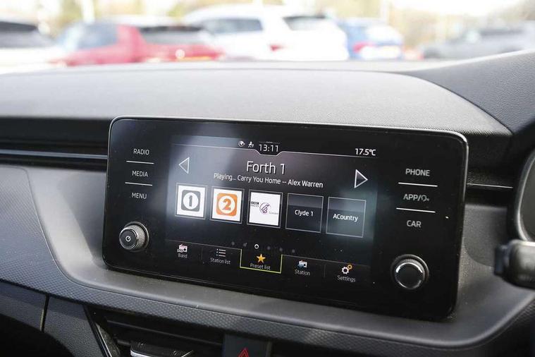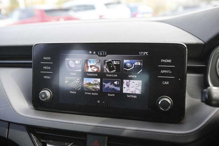 Bluetooth system, E-call, Front assist system, Lane assist, PAS, Service indicator, Speed limiter, Trip computer, Wireless SmartLink for Apple Car Play, 2 USB - C ports with 1x adaptor cable, Auxiliary input socket, DAB Digital radio, Auto dimming rear view mirror, Body colour bumpers, Body colour door mirrors and handles, Chrome grille surround, Electrically adjustable and heated door mirrors, Front and rear electric windows, Headlight range control, Heated rear window, Light and rain sensors, Rear fog lights, Rear wiper, 12V Accessory socket in centre console, Chrome inner door handles, Front head restraints, Glove compartment with illumination, Ice scraper, Isofix child seat fittings on outer rear seats, ISOFIX on front passenger seat, Manual lumbar support for front seats, Rake/reach adjustable steering wheel, Reading lights for driver and front passenger, Sun visor with make up mirror for front passenger, Textile floor mats, Third rear headrest, Top tether for front passenger seat, Umbrella in driver's door, 3x3 point rear seatbelts, Airbags - driver and front passenger, ESP, Front passenger airbag deactivation switch, Front side airbags with curtain airbags, Hill hold control, Manual parking brake, One tone horn, Rear disc brakes, Seatbelt reminder for driver an co-driver, Traction control, Tyre pressure monitor, Alarm with interior monitoring, back up horn and tilt sensor with safe function and towing protection, Anti-theft wheel bolts, Immobiliser, Remote central locking with SAFE system,