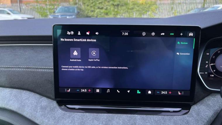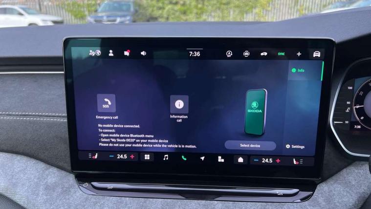 1x USB Typc C port in rear view mirror, 4x USB Type C ports - 2x in front centre console and 2x in rear (45W), Drive mode selection, Driver fatigue sensor, eCall emergency system, Electro-mechanical power steering, Front assist system, Traffic sign recognition, Turn Assist, Virtual Cockpit - 10.25" digital display, Voice control system, Wireless charging (15W) with cooling function, Wireless SmartLink for Apple CarPlay and Android Auto, 13" touchscreen display with navigation, DAB Digital radio, Aero front windscreen wipers with intermittent function, Auto dimming rear view mirror, Body colour bumpers, Body colour door mirrors and handles, Chrome grille surround, Chrome strip in lower front bumper, Chrome window surrounds, Electric front and rear windows, Electrically adjustable, heated, folding and driver side auto-dimming door mirrors, Heated rear windscreen, High level third brake light, Ice scraper in fuel cap, LED daytime running lights, LED Headlights, Logo projection in front doors, Rain and light sensors, Rear fog light on one side and reversing lights on both sides, Rear privacy glass, Rear side wing doors, 12 volt socket in boot, 3 rear headrests, 3 seat bench in 2nd row, 4 foldable roof handles, Boot net programme, Electric auxiliary air heater, Front head restraints, Heated front seats, Illuminated glovebox, Interior door handles in dark chrome, Jumbo Box storage, Luggage compartment lighting x2 lights, Mechanical rear seat release from boot, Parcel shelf - folding, Single front passenger seat, Steering wheel in black leather with black stitching, Storage compartment under passenger seat, Storage compartments in left and right of boot, Sun visors with mirrors, Sunglasses storage, Ticket holder, Two-spoke leather multi function steering wheel with paddles, Umbrella in door panel, Unsplit rear bench seat, split folding backrest with centre armrest with cupholder, Comfort package - Octavia, 3x3 point rear seat belts, Alarm with interior monitoring, tilt sensor and back up horn, Curtain airbags and front side airbags, Driver and front passenger airbags, Drivers knee airbag, Electronic parking brake, ESC including ABS, EBV, MSR, ASR, EDS, HBA, DSR, Front central airbag, Hill hold assist, ISOFIX on front passenger seat and outer rear seats, Passenger airbag deactivate switch, Three point seat belts in front and rear, Two tone horn, Tyre pressure monitor, Visual and acoustic seat belt reminder, Warning reflectors in front door, Anti-theft wheel bolts, Keyless entry and start/stop, Remote central locking, Chrome air vent surrounds,
