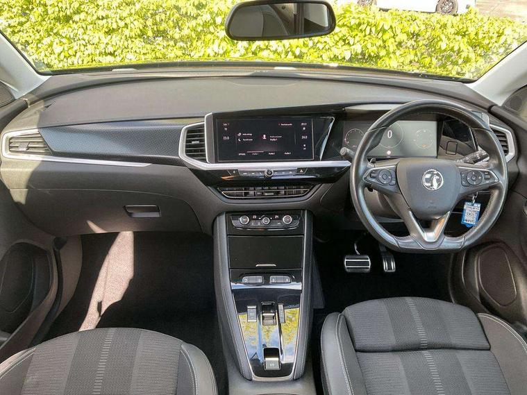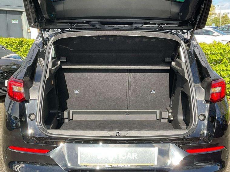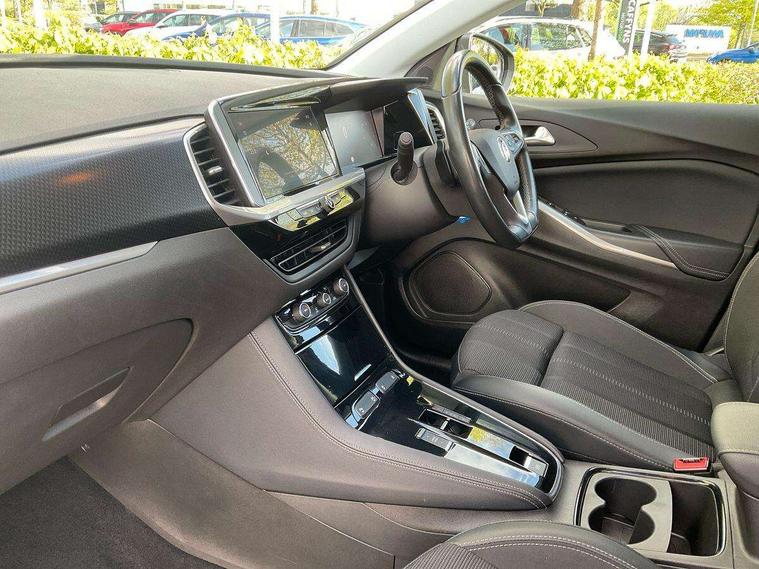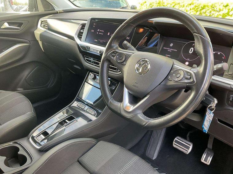 12" colour digital cluster, Central facia display with digital clock, outside air temperature and audio information, Cruise control with speed limiter, Digital fuel gauge with low fuel level warning light, Digital rev counter, Digital speedometer, Digital water temperature gauge with warning light, Driver drowsiness alert system, Driver information - Total mileage, service indicator, oil life, Front and rear parking distance sensors with 180 degree rear view camera and advanced park assist, Gearshift up/down indication light, Lane departure warning system, Lane keep assist, Lights on audible warning, Multi function trip computer - Trip odometer, vehicle range, average speed and fuel economy, instantaneous fuel economy and driving time, Multimedia navi pro with 10" colour touch+ sat nav+AM/FM/DAB radio, bluetooth audio streaming/mobile phone portal, Apple carplay/Android auto, USB, Side blind spot alert, Speed sensitive electric power assisted steering, Speed sign recognition, Start/stop system, Vauxhall connect including Emergency call (SOS e-call) and Breakdown call (b-call), Anti-roll bars, Compound crank rear suspension with coil springs and gas pressure dampers, Independent decoupled MacPherson strut front suspension with gas pressure dampers and coil springs, anti-roll bar, Six speaker - four front + two rear, Steering wheel mounted audio/phone/cruise controls, Automatic lighting control, Automatically dimming anti dazzle rear view mirror, Black door mirrors, Black roof, Black side window trim, Body colour door handles, Body colour upper front bumper, Carbon black lower front and rear bumpers, protective wheel arches and lower door cladding, Collapsible windscreen wipers, Dark tinted rear windows, Door to door illumination, Electric adjustable/heated/folding door mirrors, Electrically operated front and rear windows with safety auto reverse and one touch up/down facility, Front wiper system spraying directly from wipers, Hazard warning lights, Heated rear screen with timed cut off, High beam assist, High gloss black exterior detailing, High gloss black Griffin for Vizor and tailgate with high gloss black Grandland tailgate lettering, High gloss black protective front and rear skid plates and C-shape bumper inserts, High gloss black roof rails, High level centre rear brake light, Intermittent rear window wash/wipe, LED daytime running lights, LED Headlights, LED tail lights, Magic wash, Manual headlight beam levelling, Rain sensor windscreen wipers, Rear side wing doors, Rear spoiler, Reversing light, Shark fin aerial, Soundproof insulated windscreen, Two speed windscreen wipers with variable intermittent wipe, Upper and lower bumper design, Vizor front grille, Welcome lighting, 12V electrical accessory socket in front, 3 bench rear seats in 2nd row, 3 spoke flat bottom leather steering wheel with satin chrome effect bezel, 4 way electric driver lumbar support, 4 way passenger electric lumbar support, 60/40 split folding rear seat, Advanced predictive logic control system using a sun sensor, Alloy sports pedals, Ambient centre console downlighter, Automatic air direction and fan speed with manual override, Charcoal filter, Chrome effect interior door handles, Covered storage compartment in centre console and in driver armrest, Driver's centre armrest, Drivers seat with height, reach, backrest adjustment and seat cushion extension, Dual zone electronic climate control, Ergonomic active drivers sports style seat, Focus cloth upholstery, Front door pockets with 2.6 litre capacity, Front passenger seat, Front passenger seat with reach and backrest adjustment, Front passengers sports style seat, Fully carpeted luggage area, Height adjustable headrests, Illuminated driver/passenger sunvisors with vanity mirror, Illuminated luggage area, ISOFIX on front passenger and rear outer seats, Luggage compartment cover, Reach + rake adjustable steering column, Rear centre seat head restraint, Rear door pockets with 1.8 litre capacity, Rear passenger compartment heating ducts, Rear reading lights, Two drinks holders in centre console, Anti-lock braking system (ABS), Automatic emergency braking with pedestrian detection, Child proof locks on rear doors, CSC - Cornering stability control, Deactivation switch for front passenger front and side impact airbags, Deflation detection system, Driver airbag, Dual seatbelt pretensioners on front seats, EBD - Electronic brakeforce distribution, Electronic parking brake, Electronic stability program (ESP) including traction control, Front brake ventilated disc 304mm diameter, Front passenger airbag, Front seat side impact airbags, Full-size curtain airbags for driver and front passenger, Hill start assist, Hydraulic Brake Assist (HBA), Inertia reel lap and diagonal seatbelts for all seats, Load limiters on outer rear seatbelt retractors, Pretensioners on outer rear seatbelt retractors, Rear brake ventilated disc 268mm diameter, Smart seatbelt reminder for front and rear seats, Tyre pressure monitoring system, Central locking, Deadlocking system, Electronically protected audio equipment, Engine deadlock immobiliser, Locking wheel nuts, Remote security alarm system, Black door panels with black premium leather effect inserts, Dax decor facia panel with palladium medium finish, 18" 5 twin spoke high gloss black alloy wheels, Tyre inflation kit,