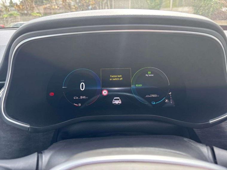 10" TFT Driver information display, Adaptive cruise control with Stop and Go, Blind spot warning, Bluetooth system, Driver drowsiness alert system, EASY LINK 9.3" portrait touchscreen with 3D navigation, hybrid voice recoginition and applications store, Eco mode, EV button to activate pure mode, Fixed speed limiter 180km/h, Front and rear parking sensors, Gear change indicator, Lane departure warning, Lane keep assist, Multi-sense - 3 driving modes and 8 ambient lighting, Rear cross traffic alert, Rear view camera, Renault automatic emergency assist, Start/stop system, Traffic sign recognition with over speed prevention, Trip computer, Variable assistance electric power steering, Wireless phone charger, Wireless Smartphone Integration includes Apple CarPlay and Android auto, Arkamys classic sound system with 6 speakers, DAB radio, USB port, 3rd brake light, Auto dimming rear view mirror, Automatic full LED headlights, Automatic high / low beam, Automatic windscreen wipers with rain sensor, Black door mirrors, Black side door protection with chrome insert, Body colour rear boot spoiler, Body coloured bumpers, C-shaped LED front signature lighting (333 high), Chrome decopart on wing (fender molding), Chrome window lower lining, Double exhaust glossy black tailpipes elements, Electrically adjustable and foldable door mirrors with defrosting, temperature sensor and automatically fold when vehicle closure, Esprit alpine exterior styling, Esprit alpine F1 blade bumper, Exterior chrome enhancement, Extra tinted rear windows and tailgate, Frameless rear view mirror, Front and rear electric windows, Front driver window with one touch facility and anti-pinch function, Front grille with chrome on upper part, Grey front and rear skid plates, Heated rear window, Rear windscreen wiper, Shiny black shark fin antenna, Variable front intermittent wipers, 1/3-2/3 foldable fixed bench, 3 seat bench in 2nd row, Automatic climate control with combined filter, humidity sensor and AQS, Black interior roof lining, Central console with storage, Esprit alpine interior styling, Esprit alpine TEP artificial leather/suede upholstery, Foldable armrest with 2 cup holder in rear passenger seats, Front and rear head restraints, Heated front seats, Heated steering wheel, Height and reach adjustable steering wheel, ISOFIX child seat fixing points on rear outermost seats, LED front and rear roof lights, Power adjustable driver and passenger seat with lumbar adjustable drivers seat, Rear air vents, Single front passenger seat, Sun visor with enlighted vanity mirror, Synthetic leather steering wheel, Variable boot floor, 3x3 point rear seat belts, Active emergency braking system, Anti-lock braking system (ABS), B Brake Mode - One pedal driving with increased regenerative braking, Distance warning alert, Driver airbag, Driver and passenger front and side airbag deactivation, Driver and passenger side airbags, Driver height adjustable seat belt, Electronic brake distribution, Electronic parking brake with auto hold, ESC (Electronic Stability Control), Front and rear no seatbelt warning sound, Front curtain airbags, Front head airbags, Front seatbelt pretensioner, Hill start assist, Passenger airbag, Sound for pedestrian (1 to 30 kph), Tyre pressure warning light, Anti drill door locks and locking fuel cap, Central door locking, Deadlocking system, Hands free keycard with Keyless access and start, RAID (Renault Anti-Intruder Device) automatic door locking, Rear side wing door and window child locking function (front driver door control panel), Thatcham alarm, 19" Esprit alpine(elixir) diamond cut alloy wheels,