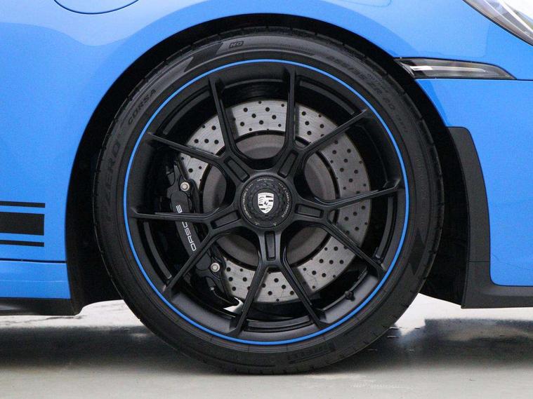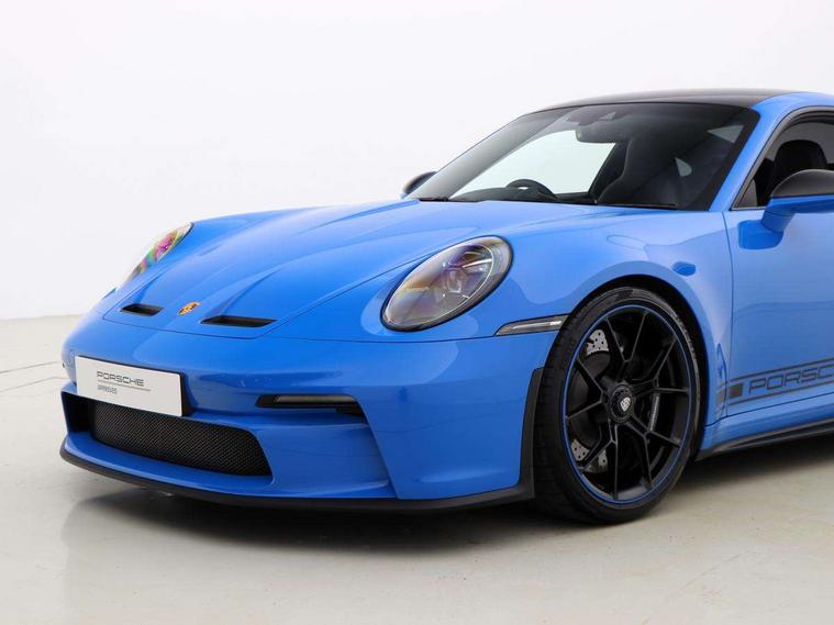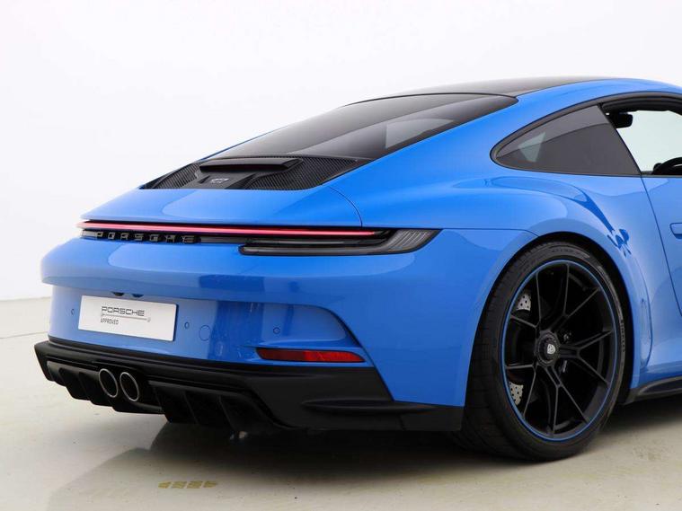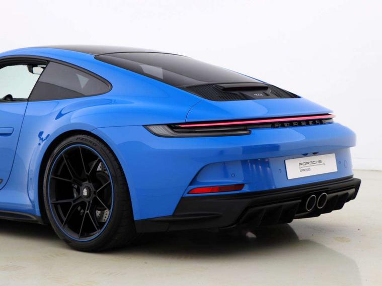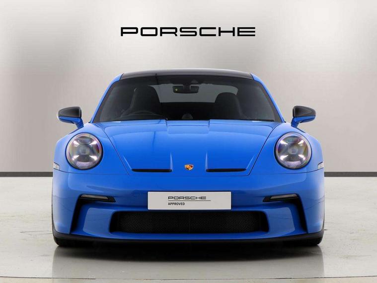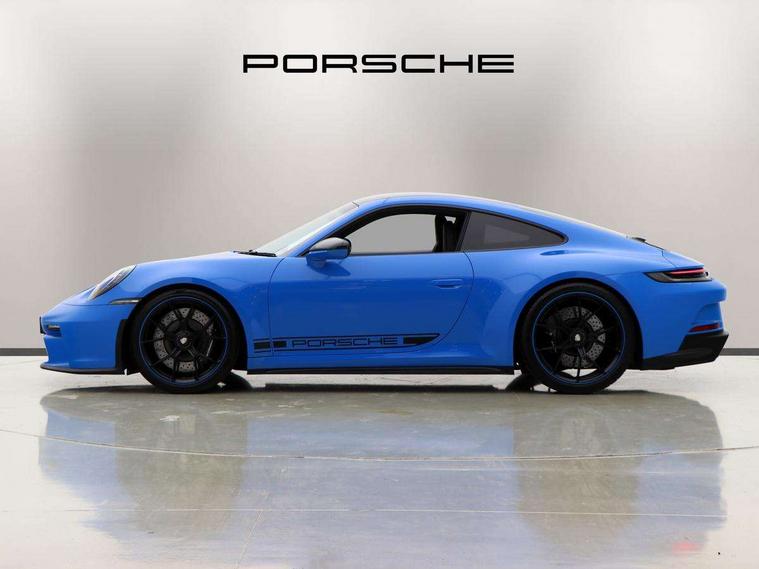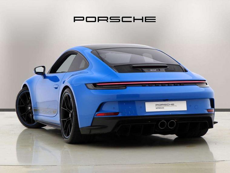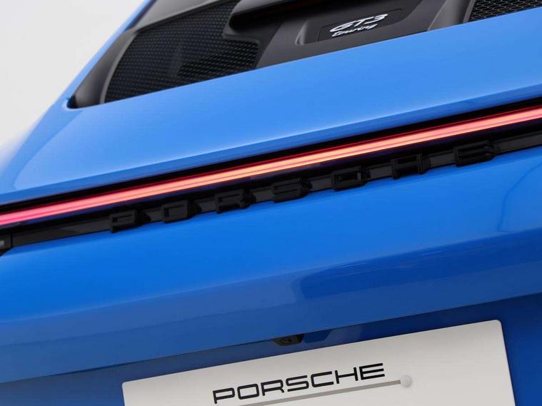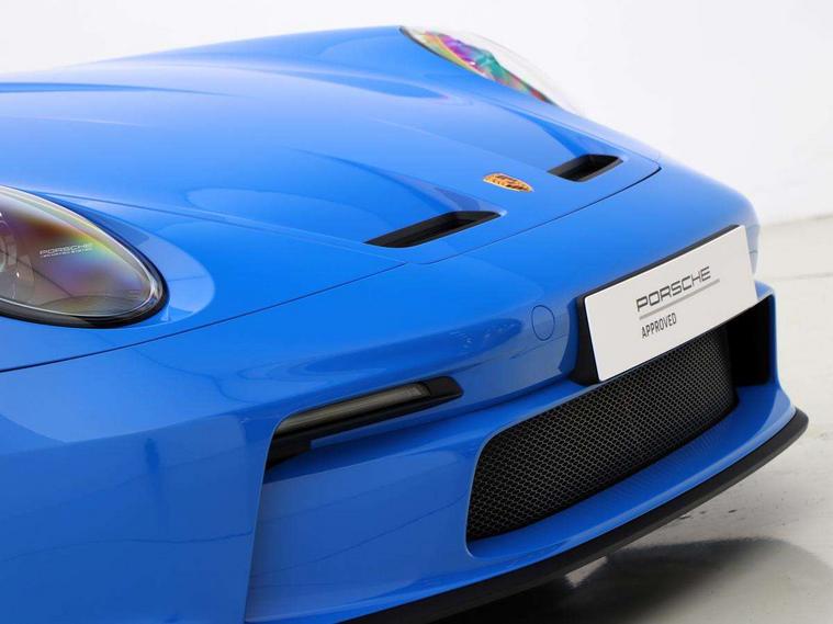 Automatic start/stop system, Brake pad wear indicator warning light, Cruise control, eCall emergency system, Electromechanical power-assisted with variable steering ratio and speed sensitive power steering assistance, Instrument cluster with central analogue rev counter and two 7-inch TFT displays with track screen, Porsche Communication Management (PCM) including online navigation module, mobile phone preparation, audio interfaces and voice control system, Porsche track precision app, Rear axle steering with sport tuning, Rev counter with digital display for selected gear and vehicle speed with distinguishable yellow dial and illuminated "GT3" logo, Service indicator, Smartphone integration with Apple CarPlay and Android auto, Trip computer, 2 seat coupe with rear mounted engine, 60Ah Lightweight starter battery, 7 Speed Porsche Doppelkupplung (PDK) with short transmission ratios and sports set up, Adjustable suspension for race track use in toe, camber, anti-roll bars, Aluminium engine block and cylinder heads, Direct fuel injection (DFI), Dry-sump lubrication with separate engine oil tank, Four valve technology with cam followers, Front axle - Double wishbone front suspension with anti-roll bar, all suspension mountings ball jointed, Multi-link rear axle with integrated helper springs, anti roll bar, selected suspension mountings ball jointed, Porsche Active Suspension Management (PASM) sport tuning and 25mm lower chassis, Porsche Stability Management (PSM), including ABS, with two switchable stages (SC OFF and SC+TC OFF), Porsche Torque Vectoring (PTV) including mechanical rear differential lock with asymmetrical lock factor, Rear wheel drive, Two gasoline particulate filter, Two three-way catalytic converters and on-board diagnostics for monitoring emission control system, Variable plastic intake manifold with switchable tuning flap, VarioCam camshaft control for inlet and exhaust valves, 2 USB ports in centre console main storage comaprtment lid, DAB Digital radio, Automatic headlight activation including welcome home lighting, Automatically dimming interior and exterior mirrors with integrated rain sensor, Automatically extendible rear spoiler and distinctive air intake grille including plaque with GT3 touring logo, Central wheel bolts in black and wheel hub cover with two tone Porsche crest, Deletion of model designation on rear apron PORSCHE logo retained, Electrically adjustable heated exterior mirrors on door waist rails, aspherical on driver's side, Front apron entirely in exterior colour with integral cooling air intakes with anthracite coloured grilles and black spoiler lip, Heated rear windscreen, Intelligent lightweight body in Aluminium/Steel composite construction, LED auxiliary light units in the front end with position lights, direction indicators and side indicators, LED courtesy light, Lightweight black carpet rear cover, Lightweight bonnet in carbon fibre reinforced plastic in exterior colour with two air outlets, Lightweight glazing made of compound glass and acoustic, Lightweight stainless steel sports exhaust system with 2 central tailpipes in black, Power windows with one touch operation and door seal protection, Rear apron with additional air outlets including anthracite coloured grilles, black lower section, Rear boot, Rear side wing doors, Retractable door handles, Seamless taillight strip with integrated PORSCHE logo in high gloss light silver, Side window trim in anodised aluminium and side skirts in black, Side window with water repellent coating, Taillight strip as rear driving lights with integrated parking and rear fog light, Underbody panelling with finned rear diffuser, Windscreen washer system with aero wiper blades, two wiping speeds, adjustable intermittent wipe and washer jets, Windscreen with grey top tint, 12V socket in front passenger footwell, 2 individual seats in 2nd row, Clothes hooks on seat backrests and on B-Pillar, Driver and front passenger illuminated vanity mirrors, Front and rear head restraints, Headrests embossed with Porsche crest, backrest shells in dark silver, LED footwell lights, LED glove compartment lighting, LED ignition light, LED luggage compartment lighting, LED orientation light, LED reading lights, Lockable glove compartment, Luggage compartment at front, Multifunction GT3 sports steering wheel, PDK shift paddles and mode switch, steering rim and top centre marking and airbag module in black leather, Oil supply with fully variable hydraulic oil pump, seven suction stages and centrifugal oil cleaner, Partial seat centre, steering rim, gear selector grip area incl gaiter, door pulls, door panel armrest, centre console storage compartment lid armrest, Particle/pollen filter with active carbon filter, Seat bolsters, headrests and steering wheel airbag module in black leather, Single front passenger seat, Smooth finish leather airbag module in black and manual fore/aft and height adjustment, Stitching and door release levers in black, Storage compartment in centre console, Storage compartments in doors, Two individual cupholders 1x as inlet in centre console and 1x passenger side, Two zone auto climate control with separate temperature settings for driver/front passenger, automatic air recirculation mode incl air quality sensor, Black exterior touring package - 911, 3 Point automatic front seat belts with buckle on seat, Composite brake discs with aluminium brake chambers, 408mm diameter at front and 380mm at rear, internally vented and cross drilled, Electric parking brake, Forged titanium piston rods, Full size airbags for driver and front passenger, Porsche side impact protection incl side impact protection in doors, thorax airbag side front seat bolster, curtain airbag door panels for passengers, Tyre pressure monitoring system with race circuit mode, Dashcam prep, Engine immobiliser with remote central locking and alarm system with radar based interior surveillance, Keyless drive, Porsche vehicle tracking system (PVT