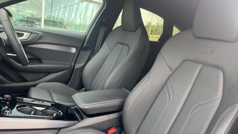 Adaptive cruise control, Advanced driver attention and fatigue montior, Audi application store, Audi assistant, Audi connect emergency call and service, Audi drive select, Audi virtual cockpit plus with 11.9" OLED colour display, Automatic start/stop system with coasting functionality, Camera based traffic sign recognition, Intersection assist, Lane departure warning, MMI navigation plus with high resolution 14.5" OLED touchscreen colour display, Park assist plus, Parking system plus with 360 display, Progressive steering with servotronic, Rear view camera, Smartphone interface, Swerve assist and turn assist, Traffic sign based speed limiter, Sports suspension lowered by 20mm, 2 USB-C ports in both the front and rear, Audi sound system impressive sound with 8 loudspeakers including centre speaker and subwoofer, 6-channel amplifier with a total output of 180 watts, DAB digital radio reception, Smartphone compartment with wireless charging, Aluminium window trims, Auto dimming rear view mirror, Body colour door mirrors, Door mirrors - electrically adjustable, heated, folding and auto dimming on both sides, Front and rear electric windows, Front door sill trims with aluminium inlays, illuminated with 'S' logo, High beam assist, LED headlights Plus incl. digital daytime running lights, turning light, all-weather light, motorway light, manouevring light and intersection light, LED rear lights pro incl. dynamic rear indicators and illuminated light strip with animated coming and leaving home function, LED third brake light, Privacy glass, Rear and side windows with heat insulating glass, Rear boot, Rear side wing doors, S Line badges on the front wings, S line bumpers, radiator grille and diffuser in phantom black and diffuser insert in matt anthracite, White rhombus logo projection light in exterior mirrors, Windscreen with acoustic glazing, 3 rear headrests, 3 seat rear bench, 3 spoke leather steering wheel with multi-function buttons with touch control, flattened on top and bottom, with S badging and contrast stitching, 3-zone automatic climate control, 40:20:40 split folding rear seat bench with centre armrest and cup holders, Comfort front centre armrest, Front and rear floor mats, Front seats with manual adjustment for position and 4-way electric lumbar support, Front sport seats with integrated headrest and S embossed logo, Headlining in black cloth, Heated front seats, i-Size child seat mounting on the front passenger side and outer rear seats, i-Size and top tether on the outer rear seats, Luggage compartment lid, electrically opening and closing, Manual steering column height and depth adjustment, Single front passenger seat, Stainless steel pedals and footrest, Steering wheel grips in perforated leather and shift paddles, Ambient lighting package plus - A5, 3x3 point rear seat belts, Driver airbag, Electric child safety locks, First aid kit with warning triangle and vests, Front emergency brake assist, Front passenger airbag, Front passenger airbag deactivation, Front side airbags with head airbag system and front interaction airbag, Hill hold assist, Seat belt monitoring with rear seat occupant reminder, Tyre pressure loss indicator, Anti theft alarm, Anti-theft wheel bolts, Keyless Go, Accent surfaces and control buttons in gloss black, Black dashboard with contrast stitching, Inlays in matt brushed aluminium with linear embossing, anthracite, Softwrap in leatherette with contrast stitching, Upper and lower interior elements in leatherette, Tyre repair kit,
