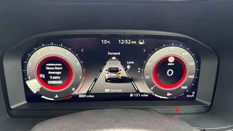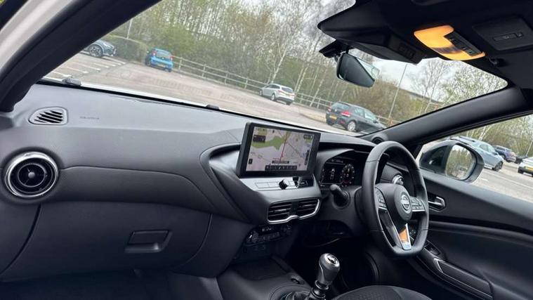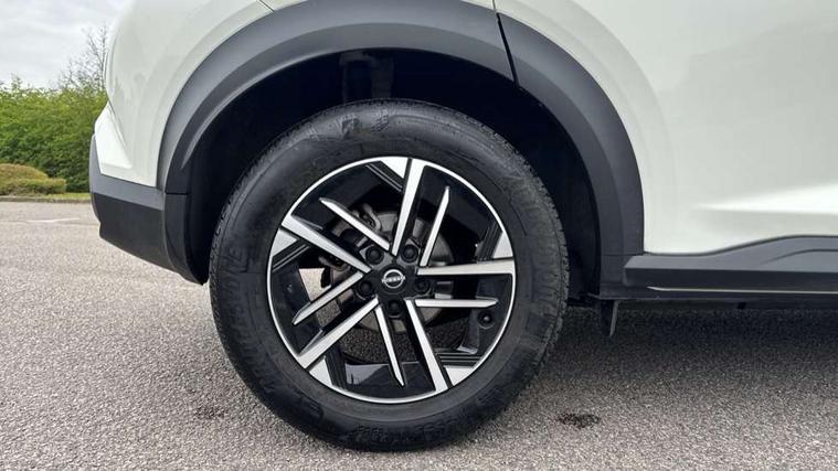 12.3" full colour TFT screen combimeter, Drive modes select (Eco, normal and sport), Emergency and breakdown call, Front parking sensor, Idle start/stop system, Intelligent driver alert system, Intelligent lane intervention, Lane departure warning system, Nissan connect 12.3" touch screen entertainment system, Nissan connect nav with TomTom traffic, Nissan connect services, Outside temperature sensor, Power Steering, Rear parking sensor, Stop/start button, Traffic sign recognition, Trip computer, Voice recognition, WiFi connectivity, Wireless Apple CarPlay and Google Android auto, Wireless Smartphone charger, 2 X Rear console USB port, 6 speakers, Bluetooth system, USB, Aux-in and 12V socket, DAB Digital radio, Auto dimming frameless rear view mirror, Automatic hazard signal with emergency stop signal, Body colour door handles, Electrically adjustable door mirrors with integrated indicators, Follow me home headlights, Front and rear electric window with one touch driver window, Heated and auto folding door mirrors, High beam assist, LED 3rd brake light, LED daytime running lights, LED headlamps, LED rear fog lamp, LED rear lamps, One touch passenger window, Rain sensor windscreen wipers, Rear privacy glass, Rear side wing doors, Rear wiper, Roof spoiler, Shark fin roof antenna in solid Black, Three blink turn signal, 3 height adjustable rear headrests, 3 seat bench in 2nd row, 60/40 split folding rear seat, Automatic climate control, Card holder on driver sunvisor, Cloth/Synthetic leather with melange fabric inserts, Driver side rear coat hanger, Driver/passenger sunvisors and vanity mirrors, Front and rear cabin lights, Front armrest, Front door pockets with bottle holders, Front head restraints, Front/rear passenger grab handles, Height adjustable driver's seat, Internal chrome door handles, Leather gearshift knob, Luggage board, Luggage space lighting, Monoform sporty seats, Multifunction steering wheel, Rear door bottle holders, Single front passenger seat, Smooth synthetic leather steering wheel, Synthetic leather kneepad, Telescopic steering wheel adjustment, Two cupholders in front centre console, Two rear isofix child seat anchorage points with top tether, Welcome light and console tray ambient lighting, ABS with EBD and brake assist, Active ride control, Active Trace Control, Driver and passenger airbags, Driver and passenger side airbags, Electric handbrake with auto hold function, Electronic Stability Programme (ESP), Front and rear curtain airbags, Height adjustable seatbelts, Hill start assist, Intelligent emergency braking with pedestrian and cyclist recognition, Rear door child safety locks, Seatbelt reminder for driver/front passenger and rear seats, Three 3 point rear seatbelts, Traction control, Tyre pressure monitoring system, VDC Dynamic Vehicle Control, Alarm, Immobiliser, Intelligent key and start push button with walk away lock and approach unlock functions, Remote central locking, 17" Alloy wheels, Tyre puncture repair kit,
