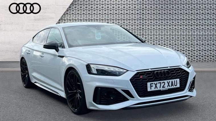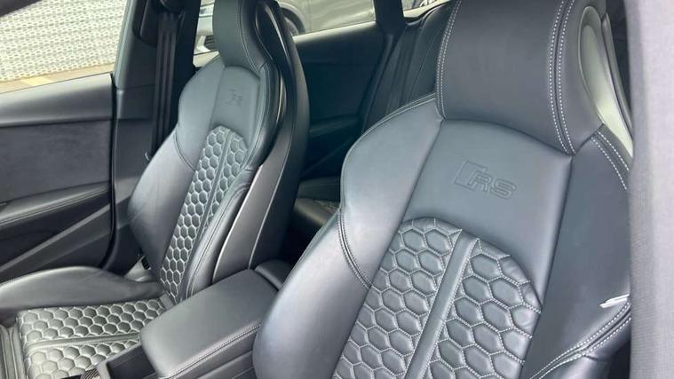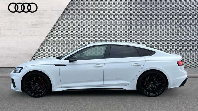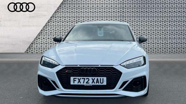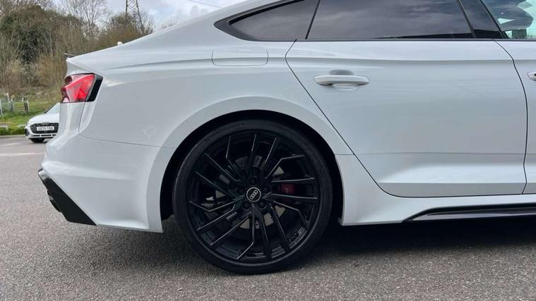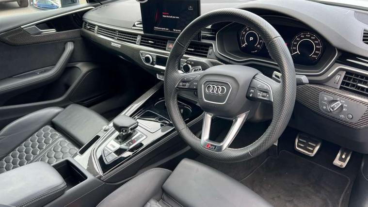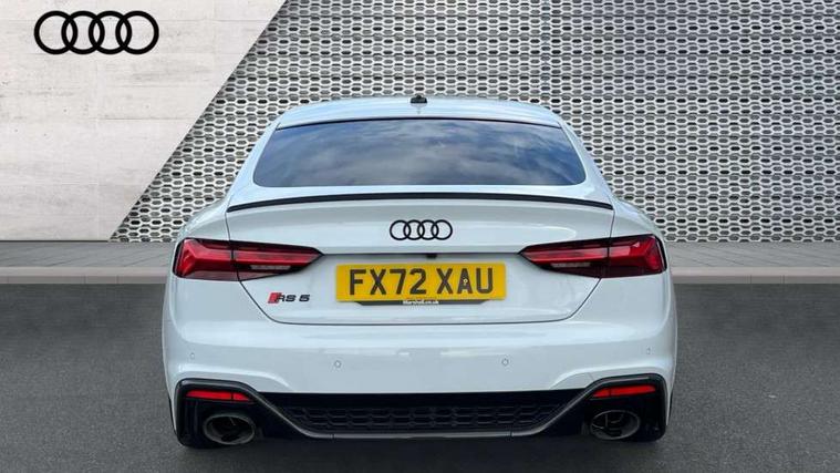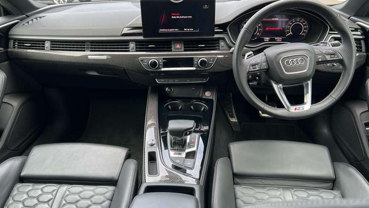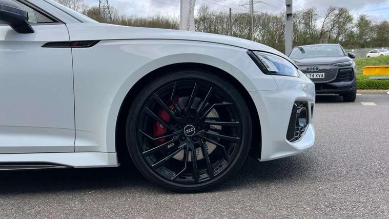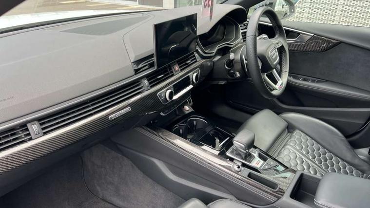 Audi connect safety and service (e-call), Audi connect with Amazon Alexa Integration, Audi parking system plus with front and rear sensors, Audi side assist, Audi smartphone interface, Audi Virtual Cockpit with RS specific design and 12.3" display, Automatic start-stop system with coasting functionality and efficiency programme, Bluetooth interface, Electromechanical power steering, Email, calendar and text messages displayed via MMI, MMI Navigation plus with MMI touch includes 10.1" high resolution colour MMI display, 3D map, Rear view camera, RS Audi drive select, RS drive modes on steering wheel, Service interval indicator, Voice control system, Quattro sports differential, Audi sound system, DAB digital radio reception, Audi Beam uses LEDs to project the RS logo, Audi matrix LED headlights with LED rear lights + dynamic front and rear indicators, Audi rings and lettering glossy black, Auto dimming rear view mirror, Body colour door handles, Electric front windows, Electric rear windows, Electrically folding, adjustable and heated door mirrors with integrated LED side indicators and kerb view function for passenger side, Exterior mirror housing in high gloss black, High beam assistant, Larger singleframe grill, LED 3rd brake light, LED daytime running lights, Privacy glass with rear acoustic glazing, Rain and light sensors, Rear side wing doors, RS bumper with quattro lettering, RS5 badges on grille, the front wing panels and rear, RS5 dual branch chrome tailpipes with left and right oval pipes, Windscreen with acoustic glazing, 2 x USB charging port with aux input socket, 3 spoke leather heated multi-function plus steering wheel with RS badging, 40:20:40 split folding 3 rear bench seat in 2nd row with rear centre armrest, Aluminium shift paddles, Black cloth headlining, Deluxe 3 zone electronic climate control, Electrically adjustable front seats, Fine Nappa leather upholstery, Front centre armrest, Front head restraints, Front/rear floor mats, Heated front seats, Illuminated door sill trims with RS5 logo, ISOFIX child seat mounting and top tether, Leather door armrests and knee pad, Perforated leather gear lever knob with contrast stitching, Pneumatic massage function, Rear head restraints, RS Super Sports seats with contrast honeycomb stitching, Single front passenger seat, Stainless steel pedals, Tool kit, Carbon black styling pack - RS5, LED Interior light pack - RS5, 3x3 point rear seatbelts, 6 airbags - Driver, front passenger, curtain and side airbags, Child locks on rear doors, Electromechanical parking brake, Electronic Stabilisation Control (ESC) including ABS, ASR and EDL, Front passenger airbag deactivation, Height adjustable front seatbelts, Hill hold assist, Multi collision brake assist, Pop-up bonnet for pedestrian protection, Pre sense city, RS Model enhanced braking system, Seatbelt monitoring, Tyre pressure warning, Warning triangle and first aid kit, Anti theft alarm system, Anti theft wheel bolts, Immobiliser, Keyless Go, Remote control key with RS emblem, Carbon twill inlays, 20" 5 Segment spoke Evo style design audi sport alloy wheels in glossy black, Tyre repair kit,