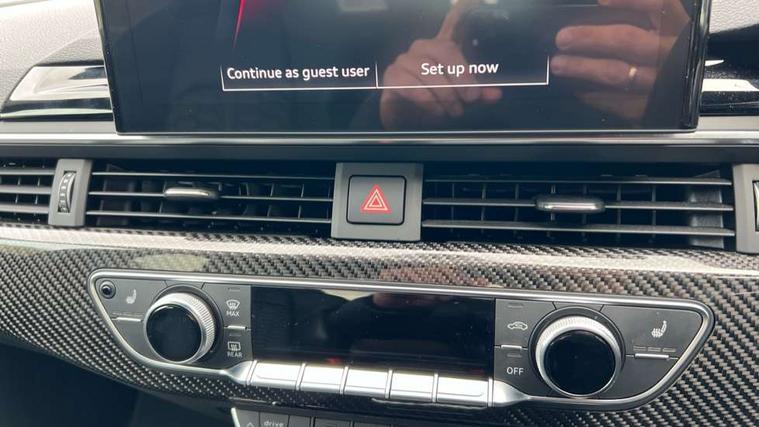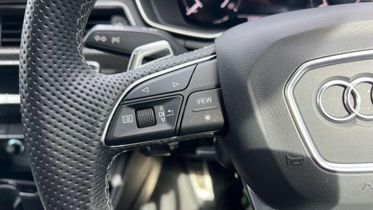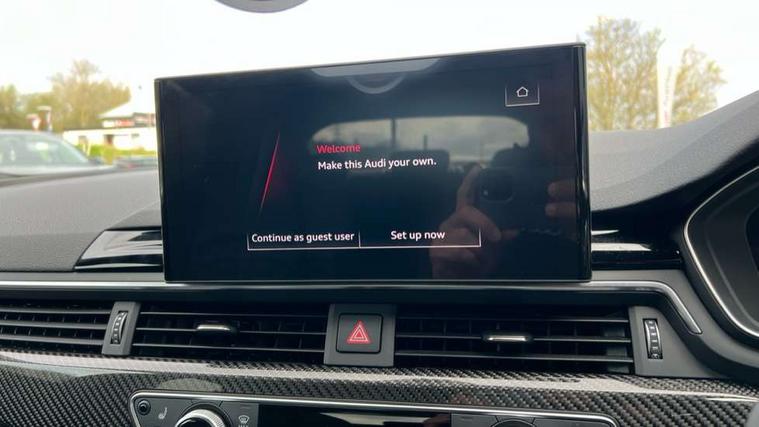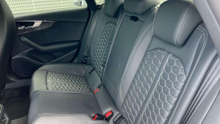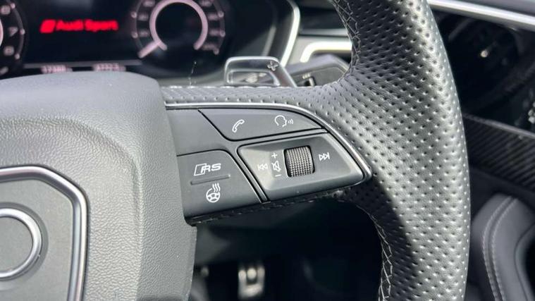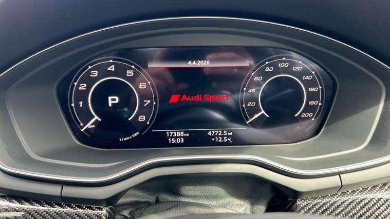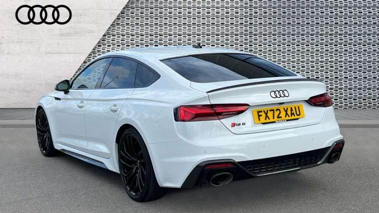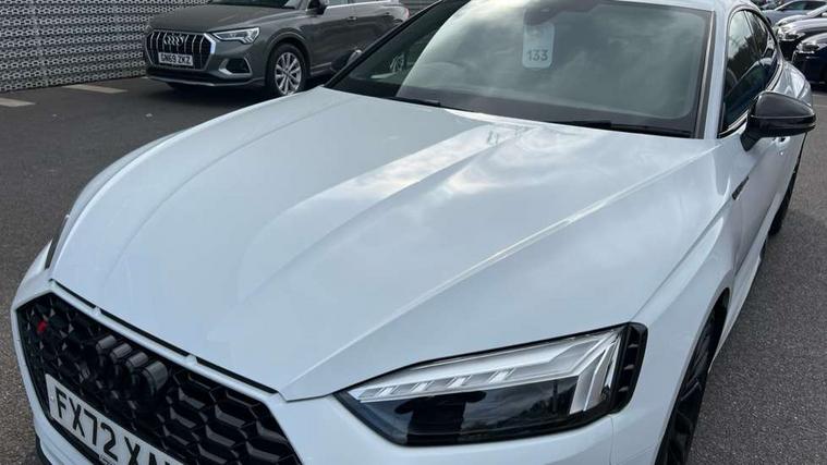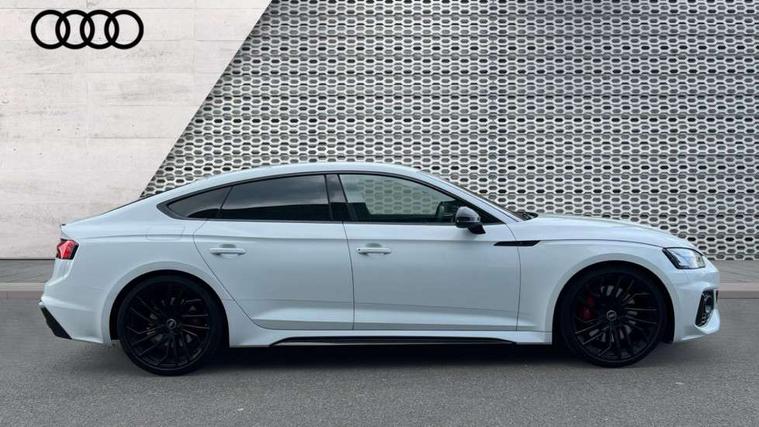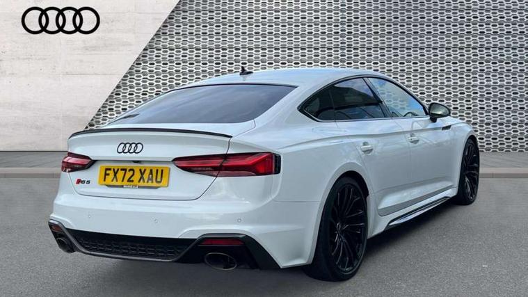 Audi connect safety and service (e-call), Audi connect with Amazon Alexa Integration, Audi parking system plus with front and rear sensors, Audi side assist, Audi smartphone interface, Audi Virtual Cockpit with RS specific design and 12.3" display, Automatic start-stop system with coasting functionality and efficiency programme, Bluetooth interface, Electromechanical power steering, Email, calendar and text messages displayed via MMI, MMI Navigation plus with MMI touch includes 10.1" high resolution colour MMI display, 3D map, Rear view camera, RS Audi drive select, RS drive modes on steering wheel, Service interval indicator, Voice control system, Quattro sports differential, Audi sound system, DAB digital radio reception, Audi Beam uses LEDs to project the RS logo, Audi matrix LED headlights with LED rear lights + dynamic front and rear indicators, Audi rings and lettering glossy black, Auto dimming rear view mirror, Body colour door handles, Electric front windows, Electric rear windows, Electrically folding, adjustable and heated door mirrors with integrated LED side indicators and kerb view function for passenger side, Exterior mirror housing in high gloss black, High beam assistant, Larger singleframe grill, LED 3rd brake light, LED daytime running lights, Privacy glass with rear acoustic glazing, Rain and light sensors, Rear side wing doors, RS bumper with quattro lettering, RS5 badges on grille, the front wing panels and rear, RS5 dual branch chrome tailpipes with left and right oval pipes, Windscreen with acoustic glazing, 2 x USB charging port with aux input socket, 3 spoke leather heated multi-function plus steering wheel with RS badging, 40:20:40 split folding 3 rear bench seat in 2nd row with rear centre armrest, Aluminium shift paddles, Black cloth headlining, Deluxe 3 zone electronic climate control, Electrically adjustable front seats, Fine Nappa leather upholstery, Front centre armrest, Front head restraints, Front/rear floor mats, Heated front seats, Illuminated door sill trims with RS5 logo, ISOFIX child seat mounting and top tether, Leather door armrests and knee pad, Perforated leather gear lever knob with contrast stitching, Pneumatic massage function, Rear head restraints, RS Super Sports seats with contrast honeycomb stitching, Single front passenger seat, Stainless steel pedals, Tool kit, Carbon black styling pack - RS5, LED Interior light pack - RS5, 3x3 point rear seatbelts, 6 airbags - Driver, front passenger, curtain and side airbags, Child locks on rear doors, Electromechanical parking brake, Electronic Stabilisation Control (ESC) including ABS, ASR and EDL, Front passenger airbag deactivation, Height adjustable front seatbelts, Hill hold assist, Multi collision brake assist, Pop-up bonnet for pedestrian protection, Pre sense city, RS Model enhanced braking system, Seatbelt monitoring, Tyre pressure warning, Warning triangle and first aid kit, Anti theft alarm system, Anti theft wheel bolts, Immobiliser, Keyless Go, Remote control key with RS emblem, Carbon twill inlays, 20" 5 Segment spoke Evo style design audi sport alloy wheels in glossy black, Tyre repair kit,