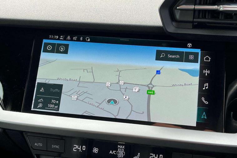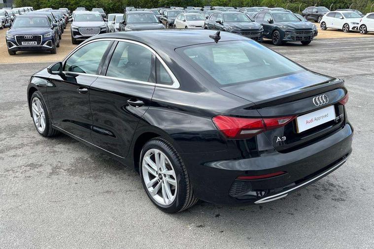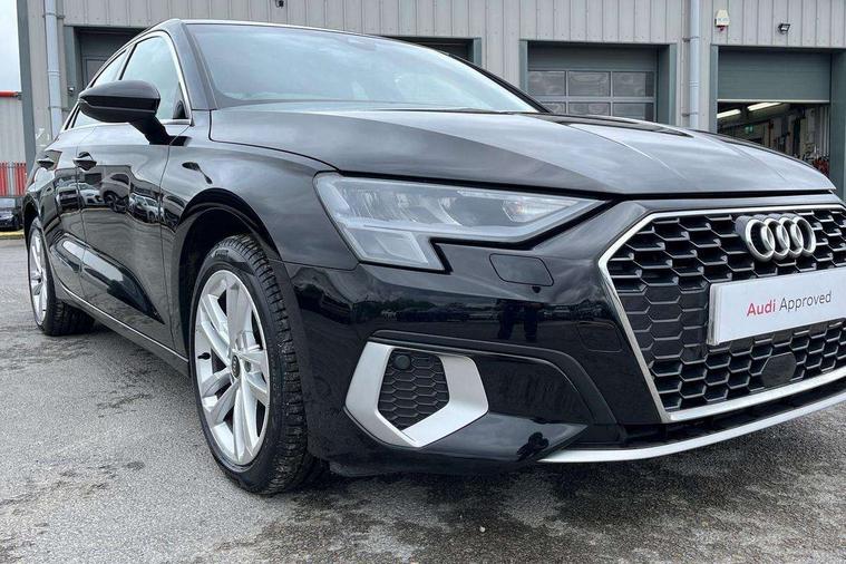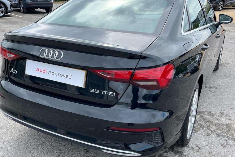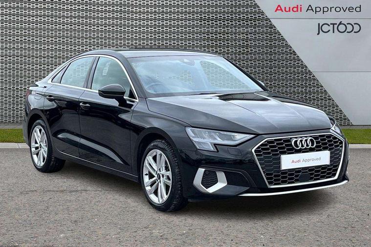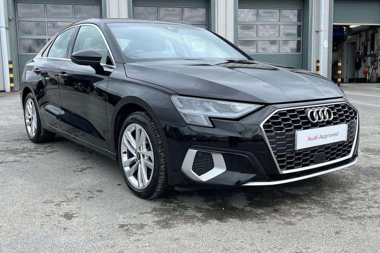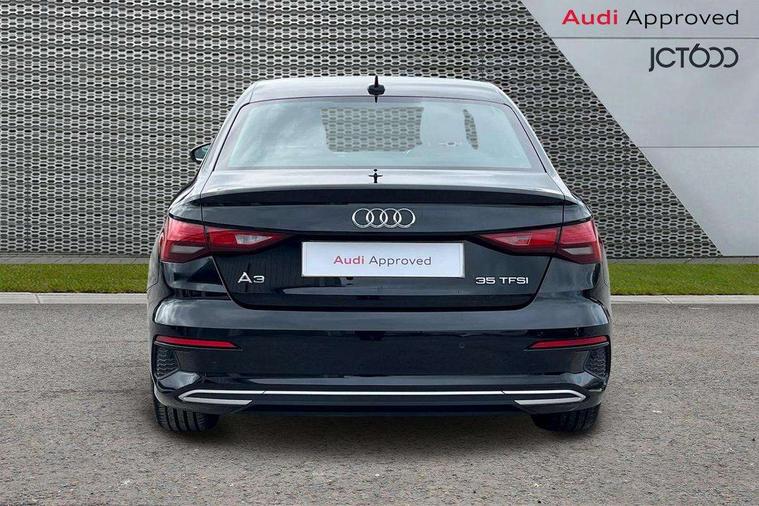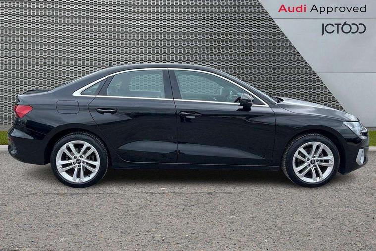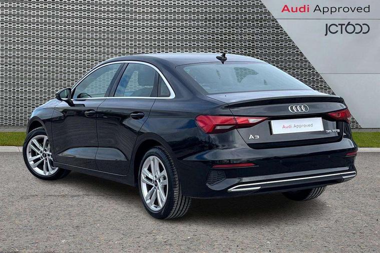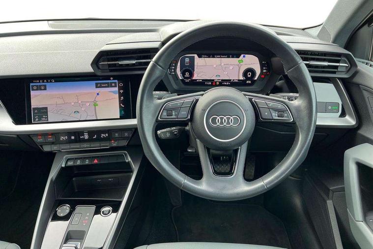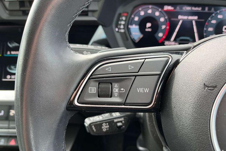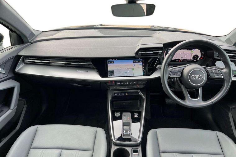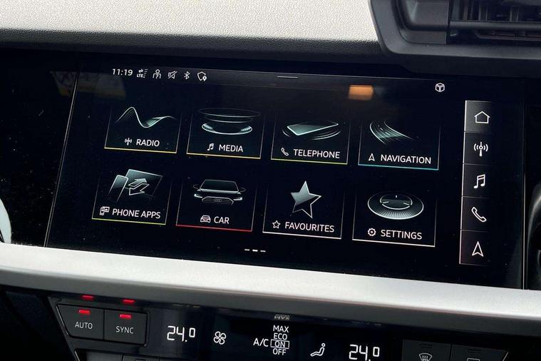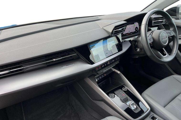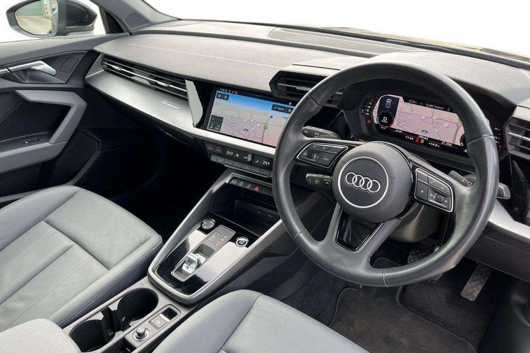 Audi connect emergency call and service, Audi drive select (Auto, Comfort, Dynamic, Efficiency and Individual), Audi smartphone interface, Audi Virtual Cockpit - 10.25" digital and colour instrument cluster, Automatic start/stop system with recuperation, Bluetooth interface, Collision avoidance assistant, Electromechanical power speed sensitive steering, Lane departure warning system, MMI Navigation Plus with high resolution 10.1" colour touch screen display, Service indicator, Voice control system with natural language interaction, Standard suspension, 2x USB Type C ports (for charging and data transfer), 6 passive loudspeakers, CD player, DAB Digital radio, 3rd brake light, Acoustic glass windscreen, Aluminium window trim, Auto dimming frameless rear view mirror, Body colour exterior mirrors, Body colour roof spoiler, Electrically adjustable/heated/folding/auto dimming door mirrors with integrated LED indications + kerb view function for passenger side, Front electric windows, LED daytime running lights, LED headlights and halogen rear lights, Light and rain sensors, Model and engine designation badges at rear, Rear boot, Rear electric windows, Rear side wing doors, Rear window, rear door windows and rear side windows in clear glass, 12V socket and storage compartment in front centre console, 3 seat bench in 2nd row, 3 spoke leather multifunction steering wheel with gear shift paddles, 40/20/40 split folding rear seat bench with cupholder, Dual zone electronic climate control, Front and rear headrests, Front centre armrest, Front door sill trims with aluminium inlay, Front/rear floor mats, Height and reach adjustable steering wheel, Interior lighting - Front and rear roof module including reading lights, glove compartment light and right hand side, Luggage compartment floor covering, Manual boot compartment lid, Manually adjustable front seats, Seat side bolsters, Single front passenger seat, Steel grey cloth headlining, Twin leather upholstery, Aluminium interior elements pack - A3, Sport styling pack - A3 Saloon, 3x3 point rear seat belts, Driver and front passenger airbag with passenger airbag deactivation, Electronic Stabilisation Control (ESC) including ABS, ASR and EDL, First aid kit with warning triangle and 2 safety vests, Front side airbags with head airbags and interaction airbag, Hill hold assist, Pre-sense front with pedestrian and cyclist detection, Seatbelt monitoring, Tyre pressure loss indicator, Anti theft alarm, Anti-theft wheel bolts, Electronically operated child locks, Immobiliser, Remote control central locking, Aluminium air vent surrounds, Aluminium trim elements, Inlays with silk effect paint in platinum grey,