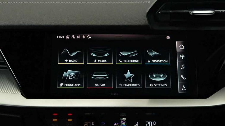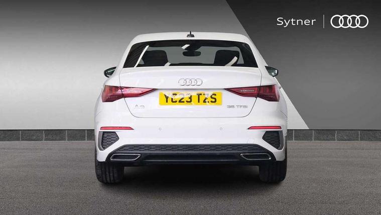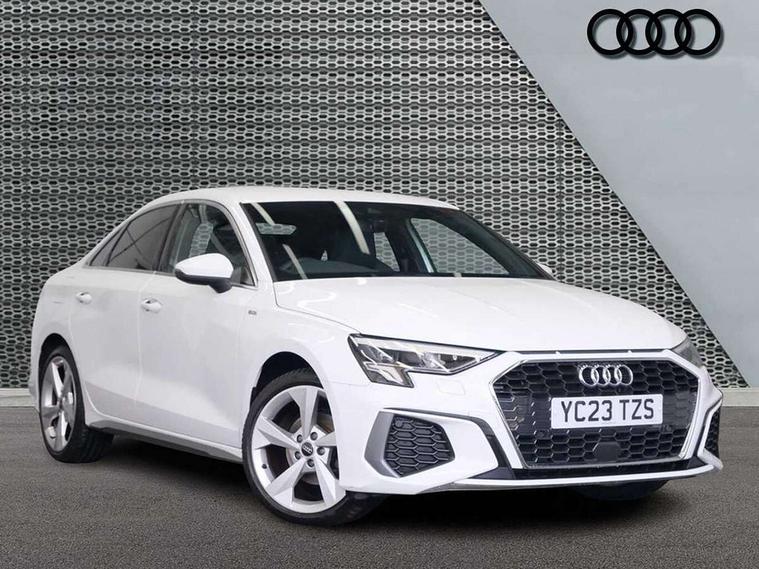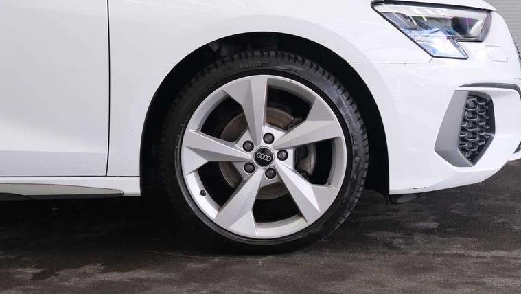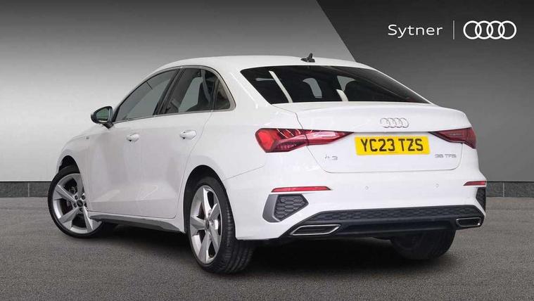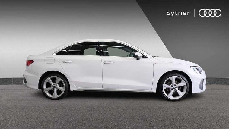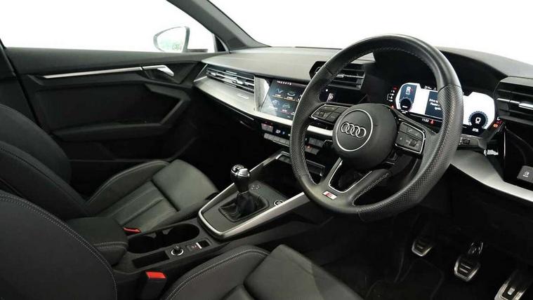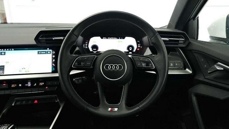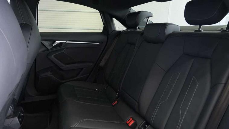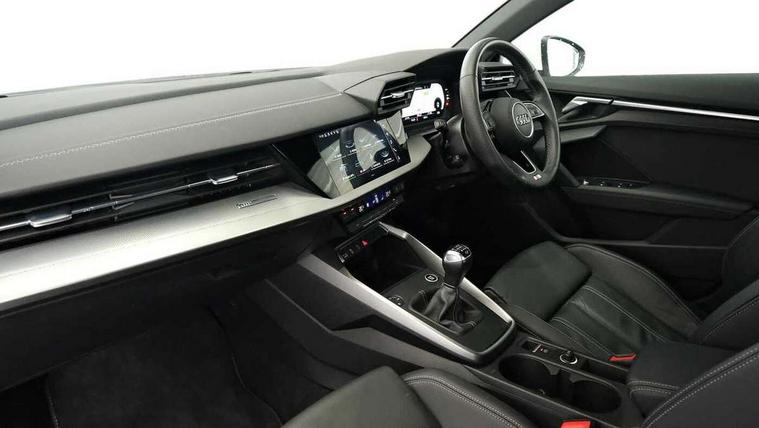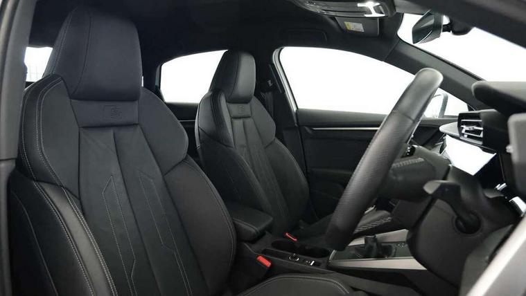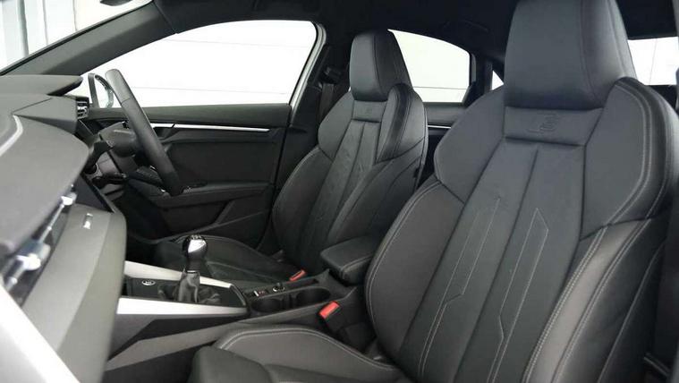 Audi connect emergency call and service, Audi drive select (Auto, Comfort, Dynamic, Efficiency and Individual), Audi smartphone interface, Audi Virtual Cockpit - 10.25" digital and colour instrument cluster, Automatic start/stop system with recuperation, Bluetooth interface, Collision avoidance assistant, Cruise control + speed limiter, Electromechanical power speed sensitive steering, Lane departure warning system, MMI Navigation Plus with high resolution 10.1" colour touch screen display, Rear parking sensors, Service indicator, Voice control system with natural language interaction, Sports suspension, 2x USB Type C ports (for charging and data transfer), 6 passive loudspeakers, CD player, DAB Digital radio, 3rd brake light, Acoustic glass windscreen, Aluminium window trim, Auto dimming frameless rear view mirror, Body colour exterior mirrors, Electrically adjustable/heated/folding/auto dimming door mirrors with integrated LED indications + kerb view function for passenger side, Front electric windows, Illuminated door sills with aluminium inserts at the front with S logo, LED daytime running lights, LED headlights with LED rear lights and dynamic rear indicators, Light and rain sensors, Model and engine designation badges at rear, Privacy glass - dark tinted rear window, rear door and side windows, Rear boot, Rear electric windows, Rear side wing doors, S line bumpers, S roof spoiler, 12V socket and storage compartment in front centre console, 3 seat bench in 2nd row, 3 spoke leather multifunction steering wheel, 40/20/40 split folding rear seat bench with cupholder, Black cloth headlining, Dual zone electronic climate control, Front and rear centre armrest in leather, Front and rear headrests, Front/rear floor mats, Height and reach adjustable steering wheel, Illuminated vanity mirror, Interior lighting - glove compartment light and right hand side, Luggage compartment floor covering, Manual boot compartment lid, Manually adjustable front sport seats, Seat side bolsters, Single front passenger seat, Stainless steel pedals and front footrest in black, Twin leather upholstery with front sports seats S embossed logo, Aluminium interior elements pack - A3, LED interior lighting pack - A3 Saloon, S line styling pack - A3 Saloon, 3x3 point rear seat belts, Driver and front passenger airbag with passenger airbag deactivation, Electronic Stabilisation Control (ESC) including ABS, ASR and EDL, First aid kit with warning triangle and 2 safety vests, Front side airbags with head airbags and interaction airbag, Hill hold assist, Pre-sense front with pedestrian and cyclist detection, Seatbelt monitoring, Tyre pressure loss indicator, Anti theft alarm, Anti-theft wheel bolts, Electronically operated child locks, Immobiliser, Remote control central locking, Aluminium air vent surrounds, Aluminium trim elements, Dark spectrum aluminium inlays, accent surfaces in the dashboard and centre console in platinum grey silk effect paint finish,