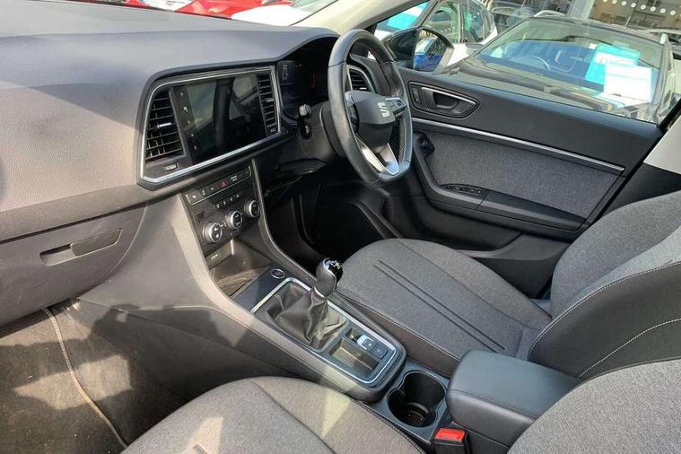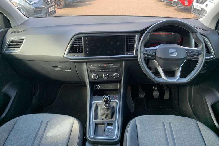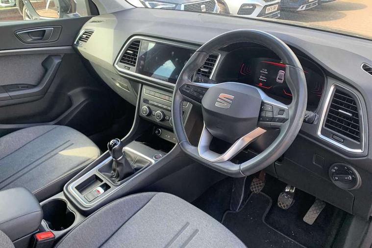 8" Digital cockpit, Colour multi-function on board computer display, Cruise control system with speed limiter, E-call, Outside temperature gauge, PAS, Self parking functionality (includes front and rear parking sensors), Start/stop system, Tailgate, Trip computer, Wireless full link smartphone integration, Wireless phone charger, Steering wheel mounted audio/phone controls, Black wheel arch surrounds, Body colour bumpers, Chrome front grille frame, Chrome roof rails, Chrome side window trim, Daytime running lights, Door mirrors with welcome light silhouette, Dynamic headlight range control with self adjusting whilst driving, Electric adjustable/heated/folding door mirrors, Front and rear electric windows, Full LED headlamps with lens and LED front fog lamps with cornering function, LED rear tail lights with dynamic indicators, Rear fog lights, Rear side wing doors, Rear wash/wipe, Simulated exhaust pipes, Third brake light, Variable front intermittent wipers, 12V socket in front, 3 seat bench in 2nd row, 60/40 split folding rear seat, Cloth upholstery with front comfort seats, Drawer under right front seat, Dual zone climate control, Front and rear head restraints, Front centre armrest, Front seat back storage pockets, Height adjustable driver and passenger seat with lumbar adjustment, ISOFIX points in outer rear seats with top tether anchorage points, Leather steering wheel and gear knob, Rear armrest and easy back seat release mechanism from boot, Single front passenger seat, Interior lighting pack - Ateca, Navigation system pack with DAB - Ateca, 3x3 point rear seatbelts, ABS, Traction control system (TCS), Electronic stability control (ESC) and Electronic differential lock system (XDS), Airbags - Driver and front passenger airbag with deactivation, front side, two curtain and driver's knee airbags, Electric parking brake with auto hold function, Front and rear seatbelt reminder, Front assist with autonomous emergency braking, Hill hold control, Manual rear child locks, Single tone horn, Tiredness recognition system, Traction control, Tyre pressure monitoring system, Alarm, Keyless entry, Locking wheel bolts, Remote central locking, Chrome interior detailing, 18" Performance machined alloy wheels 36/2 in nuclear grey,