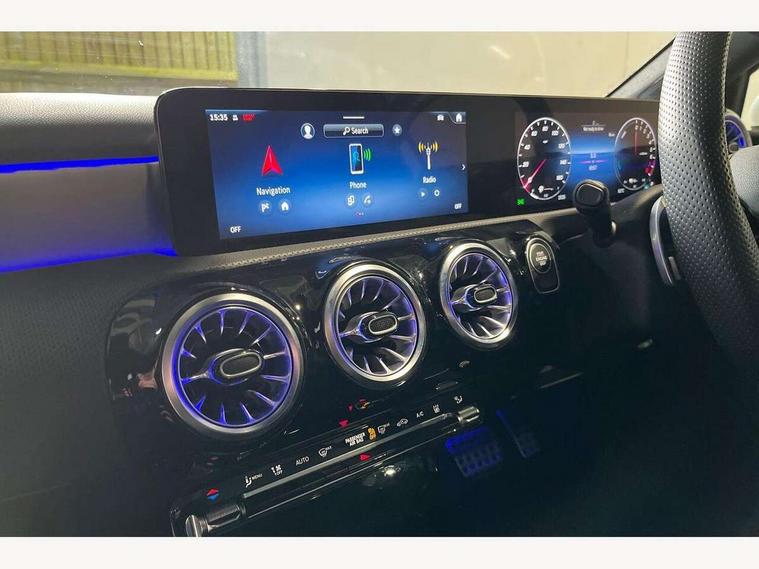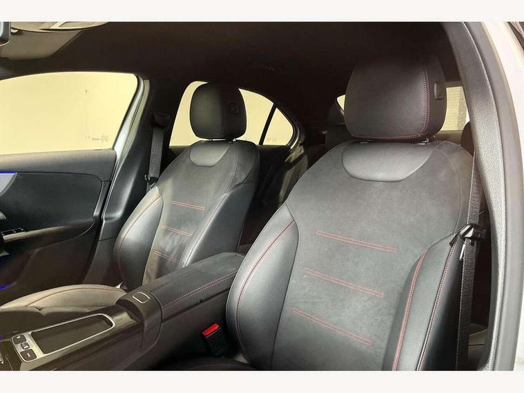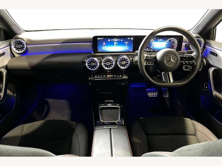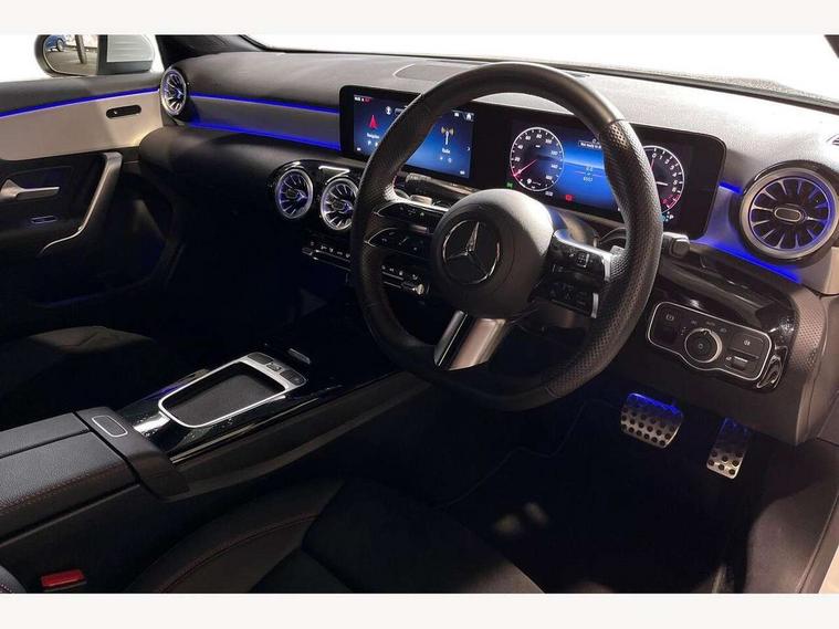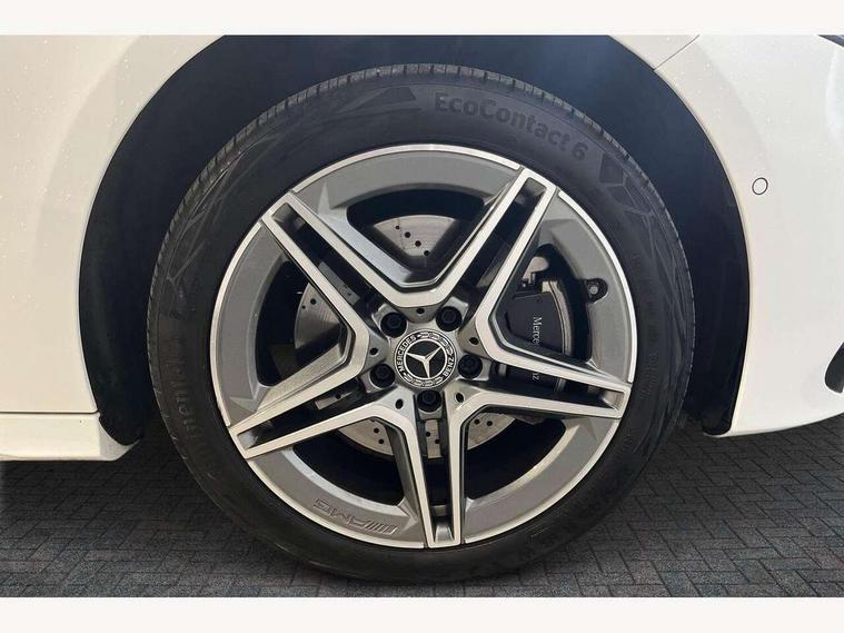 10.25 inch touchscreen central media display, 10.25" Digital instrument cluster display screen, Acoustic ambient protection, Attention assist, Blind spot assist, Brake pad wear indicator warning light, Car wash mode, Cruise control + speed limiter, Direct steering, Direction indicators with lane change function, Dual bluetooth interfaces, DYNAMIC SELECT with a choice of driving modes (ECO, Comfort, Sport and Individual), ECO start/stop function, Engine start/stop button, Fingerprint scanner, Fluid level warning indicator for fuel, oil, coolant and washer fluid, Fluorescent jacket for driver, Hard-disk navigation, Hey Mercedes Voice activation, Lamp failure indicator, Lane keeping system, Mercedes me connect including emergency call system, accident recovery, breakdown and maintenance management, Mercedes me remote services, Outside temperature gauge, Owners manual in English, Pre-installation of private car share, Remote and charging services plus, Remote boot closing, Service indicator (ASSYST), Smartphone integration with Apple CarPlay and Android auto, Speed limit assist, Speed sensitive power steering, Trip computer in multifunction display with current consumption indicator, Wireless charging, Charging system - AC charging system rated at 11kW, Charging system - DC charging system rated at 22 kW, Comfort suspension, Mode 2 charging cable for domestic socket with 5m up to 1.8kW, Mode 3 charging cable for wallbox and public charging stations with 4m upto 22 kW, DAB Digital radio, MBUX multimedia system, Mercedes Benz sound system (100 W) with 6 speakers, 4 Electric Front and Rear windows, Adaptive brake lights, AMG body styling - AMG front apron with front splitter and AMG rear apron and visible exhaust tailpipe trim elements, Body colour bumpers, Body colour door handles with chrome inserts, Body colour side skirt, Chrome beltline strips, Diamond radiator grille with pins in fine star pattern, Electric adjustable and heated door mirrors with integrated LED side indicators, EQ Hybrid badging, Exhaust system with 2 visible tailpipe trim elements and rear apron, Headlamp assist automatic headlamp activation, Heated glass rear windscreen + timer control, LED High Performance headlamps including integral LED daytime running lamps and adaptive highbeam assist, LED tail lamp, Privacy glass, Radio aerial, Rain sensing windscreen wipers with two sensitivity settings, Rear boot, Rear fog lights, Rear side wing doors, Third brake light featuring LED technology, Window line trim strip in chrome, 3 seat bench in 2nd row, 3 Spoke flat bottom leather multi function steering wheel with perforated leather in grip area, 4 way lumbar support, 40:20:40 split folding rear seats, Air conditioning - One zone THERMATIC automatic climate control with automatically controlled air distribution, AMG floor mats, Artico man-made leather/Microcut microfibre upholstery, Automatic child seat recognition sensor, Black air vents with surround in silver chrome, Black roof lining, Brushed stainless steel sports pedals with rubber studs, Charging socket, Front centre armrest with stowage, Front door sills with Mercedes Benz lettering, Front seat backs luggage nets, Front sports seats with adjustable head restraints, Galvanished gear shift paddles on steering wheel, Heated front seats, Height/reach adjustable steering column, Interior lighting - 64 colour Ambient lighting, Interior mirror with reading lamps in black and frameless, Pre-entry climate control, Rear armrest with 2 cupholders, Rear head restraints, Seat occupancy sensor for front passenger seat, Single front passenger seat, Stowage compartment in centre console with retractable cover, Sunvisors with illuminated vanity mirrors, Twin front cupholders, Keyless go comfort pack - A Class, Light and sight package - A Class, Mirror package - A Class, Parking pack with 180 degree view - A Class, Seat comfort pack - A Class, USB pack plus - A Class, 3 rear 3 point seatbelts, ABS with Brake Assist, Active bonnet, Active brake assist includes forward collision warning system with autonomous braking, Adaptive brake assist with hold function and hill start assist, Bonnet with power domes, Childproof locks manually operated for rear doors and electrically operated for rear power windows, Crash responsive emergency lighting, Driver and passenger head and side airbags, Drivers knee airbag, Dual stage driver/passenger airbags, Electronic parking brake, ESP curve dynamic assist, ESP with ASR, Front and rear seatbelt reminder, ISOFIX and top tether child seat fixing points in two outer rear seats, Perforated front brake discs, Radar based regeneration, Tyre pressure monitoring system, Warning triangle and first aid kit, Window airbags, Alarm system/interior protection/immobiliser, Guard 360 degree vehicle protection, Remote central locking and crash sensor with emergency opening function, Black seatbelts, Light longitudinal grain aluminium trim, 18" AMG 5 twin spoke light alloy wheels, aerodynamically optimised, painted in black with high sheen finish, Summer tyres, Tirefit sealant kit,