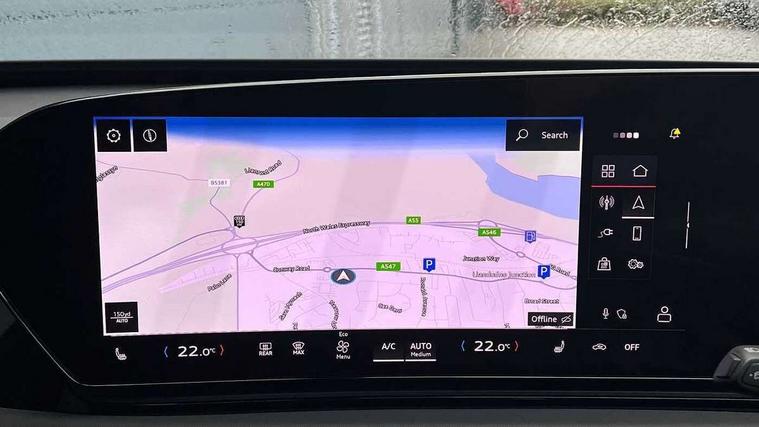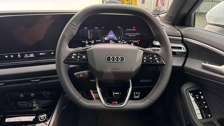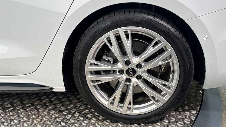 Adaptive cruise control, Advanced driver attention and fatigue montior, Audi application store, Audi assistant, Audi connect emergency call and service, Audi drive select, Audi virtual cockpit plus with 11.9" OLED colour display, Automatic start/stop system with coasting functionality, Camera based traffic sign recognition, Intersection assist, Lane departure warning, MMI navigation plus with high resolution 14.5" OLED touchscreen colour display, Park assist plus, Parking system plus with 360 display, Progressive steering with servotronic, Rear view camera, Smartphone interface, Swerve assist and turn assist, Traffic sign based speed limiter, Household plug type G, Hybrid propulsion system, Industrial connector CEE 32A, 230V, long and straight for the e-tron charging system, Mode 3 type 2 AC charging cable 22kW, Sports suspension lowered by 20mm, 2 USB-C ports in both the front and rear, DAB digital radio reception, Smartphone compartment with wireless charging, Aluminium roof rails, Aluminium window trims, Auto dimming rear view mirror, Body colour door mirrors, Door mirrors - electrically adjustable, heated, folding and auto dimming on both sides, Front and rear electric windows, Front door sill trims with aluminium inlays, illuminated with 'S' logo, High beam assist, LED headlights Plus incl. digital daytime running lights, turning light, all-weather light, motorway light, manouevring light and intersection light, LED rear lights pro incl. dynamic rear indicators and illuminated light strip with animated coming and leaving home function, LED third brake light, Privacy glass, Rear and side windows with heat insulating glass, Rear side wing doors, Rear wash/wipe, Removal of S line badge on the front wings, S line bumpers, radiator grille and diffuser in phantom black and diffuser insert in matt anthracite, White rhombus logo projection light in exterior mirrors, Windscreen with acoustic glazing, 3 rear headrests, 3 seat rear bench, 3 spoke leather steering wheel with multi-function buttons with touch control, flattened on top and bottom, with S badging and contrast stitching, 3-zone automatic climate control, 40:20:40 split folding rear seat bench with centre armrest and cup holders, Auxiliary air conditioning, Comfort front centre armrest, Front and rear floor mats, Front seats with manual adjustment for position and 4-way electric lumbar support, Front sport seats with integrated headrest and S embossed logo, Headlining in black cloth, Heated front seats, i-Size child seat mounting on the front passenger side and outer rear seats, i-Size and top tether on the outer rear seats, LED roof module front and rear including reading lights, Luggage compartment lid, electrically opening and closing, Manual steering column height and depth adjustment, Single front passenger seat, Stainless steel pedals and footrest, Steering wheel grips in perforated leather and shift paddles, Storage compartment lighting under the centre armrest, Ambient lighting package plus - A5, 3x3 point rear seat belts, Acoustic vehicle alerting system, Driver airbag, Electric child safety locks, First aid kit with warning triangle and vests, Front emergency brake assist, Front passenger airbag, Front passenger airbag deactivation, Front side airbags with head airbag system and front interaction airbag, Hill hold assist, Seat belt monitoring with rear seat occupant reminder, Tyre pressure loss indicator, Anti theft alarm, Anti-theft wheel bolts, Keyless Go, Accent surfaces and control buttons in gloss black, Black dashboard with contrast stitching, Inlays in matt brushed aluminium with linear embossing, anthracite, Softwrap in leatherette with contrast stitching, Upper and lower interior elements in leatherette, Tyre repair kit,