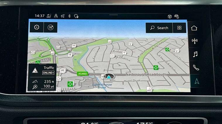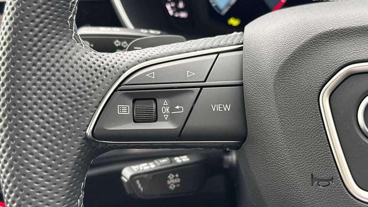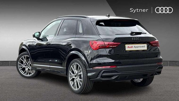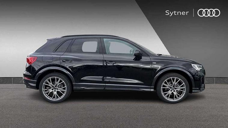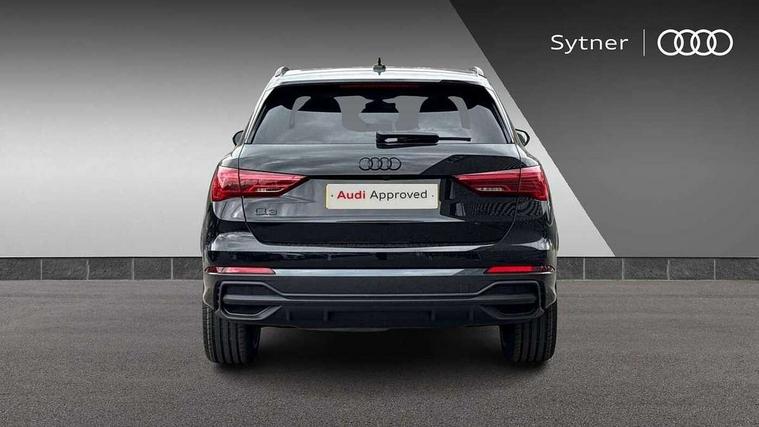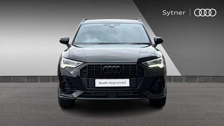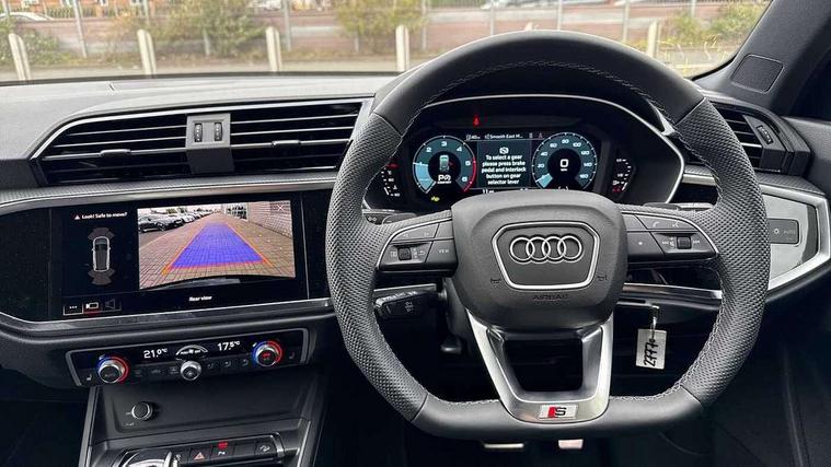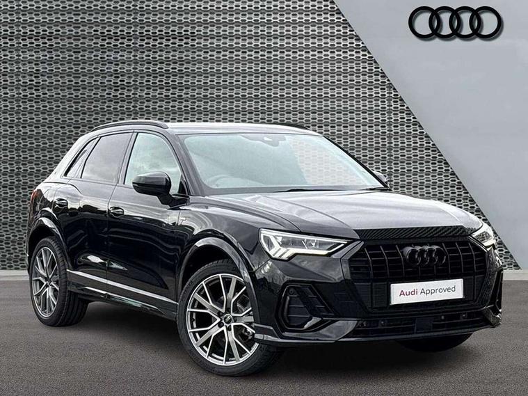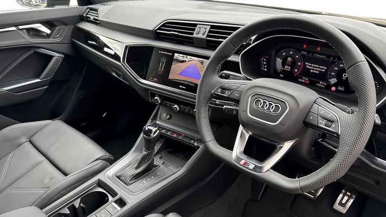 Amazon alexa Integration, Audi connect safety and service, Audi drive select, Audi lane departure warning, Audi Virtual Cockpit - 10.25" display, Bluetooth interface, Camera based traffic sign recognition, Distraction and Fatigue warning, Legal emergency call, MMI Navigation Plus with high resolution 10.1 inch touchscreen colour display, Power operated tailgate, Progressive steering, Service interval indicator, Smartphone interface includes wireless Apple carplay/Android Auto, Start stop system with recuperation, Voice control system with natural language interaction, Diesel particulate filter, Sports suspension, 2 USB-C ports with charge and data functions, 6 passive loudspeakers, DAB digital radio module, Acoustic windscreen, Anthracite black radiator grille, Audi Beam uses LEDs to project the Audi logo onto the ground as you exit your Q3, Auto dimming door mirrors, Auto dimming frameless rear view mirror, Black roof rails, Electrically folding, adjustable and heated door mirrors with integrated LED side indicators and kerb view function for passenger side, Front and rear electric windows, Front fog lights, Grille vertical bars in aluminium silver/Matt, High gloss black finish B and C pillars, LED Dynamic rear indicators, LED headlights with LED daytime running lights, LED rear lights, LED third brake light, Privacy glass dark tinted rear and rear-side windows (from B-pillar backwards), Rain and light sensors, Rear diffuser grille in grained matt black, Rear diffuser strip in matt anthracite black, Rear side wing doors, Rear wiper, S line bumpers in contrasting Manhattan grey, Variable front intermittent wipers, 12V socket in rear centre console, 3 seat bench in 2nd row, 40:20:40 folding with manual adjustment for 60:40 forwards/backwards position and backrest angle, Adjustable rear seat bench/backrest with centre armrest and cupholder, Black carpet mats, Black cloth headlining, Dual zone electronic climate control, Electric lumbar support, Front and rear black floor mats with contrast stitching in rock grey, Front and rear headrests, Front centre armrest, Height and reach adjustable steering wheel, Illuminated door sill trims with S logo, ISOFIX child seat mounting for front passenger with airbag deactivation and outer rear seat including top tether attachment point for outer rear seats, Luggage compartment sill protection in stainless steel, Manual front seats with height adjustment, Perforated leather gearknob, Single front passenger seat, Stainless steel pedals, Twin leather upholstery with front sport seats + S embossing, Black styling pack - Q3, Non smoking pack - Q3, 3x3 point rear seatbelts, 6 airbags - Driver, front passenger, curtain and side windows, Audi pre-sense front with pedestrain and cyclist recognition, Electrically operated child locks on rear doors, Electromechanical parking brake, Electronic stabilisation control including ABS, ASR and EDL, Front seatbelt reminder, Hill descent control, Hill hold assist, Pre sense basic, Seatbelt monitoring, Tyre pressure warning, Warning triangle and first aid kit, Anti theft wheel bolts, Immobiliser, Remote central locking, Thatcham approved category 1 anti theft alarm, Aluminium look interior elements, Detail dashboard around MMI touch colour display in glass look, black with surround in aluminium look, Leatherette door armrest, Piano black inlay,