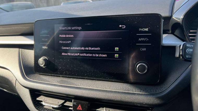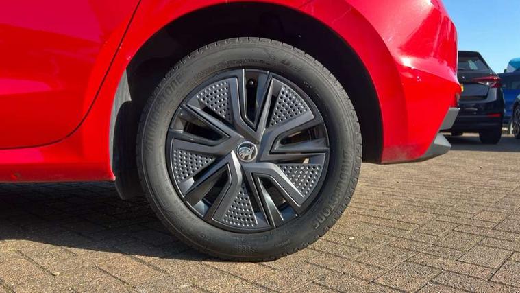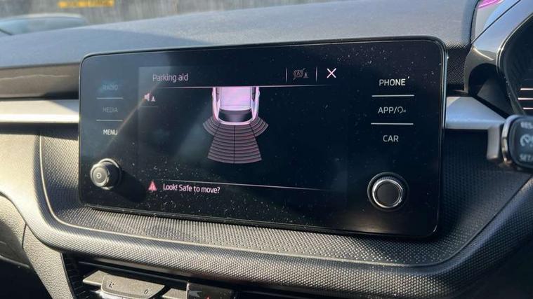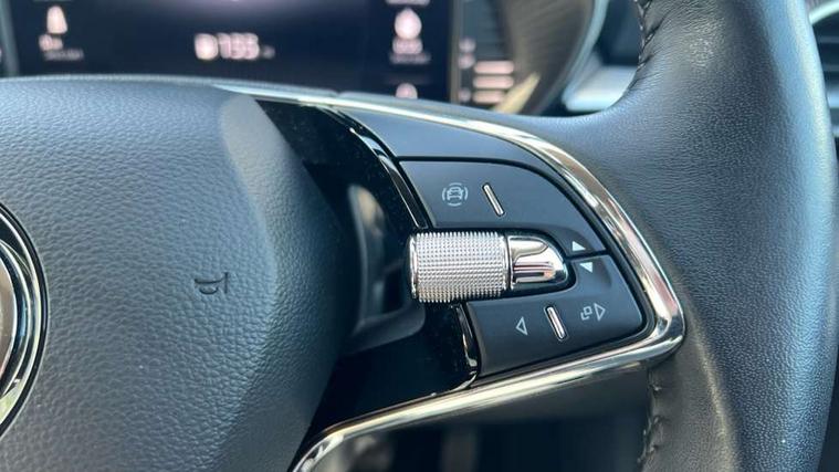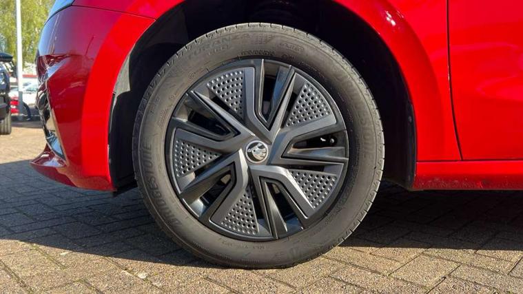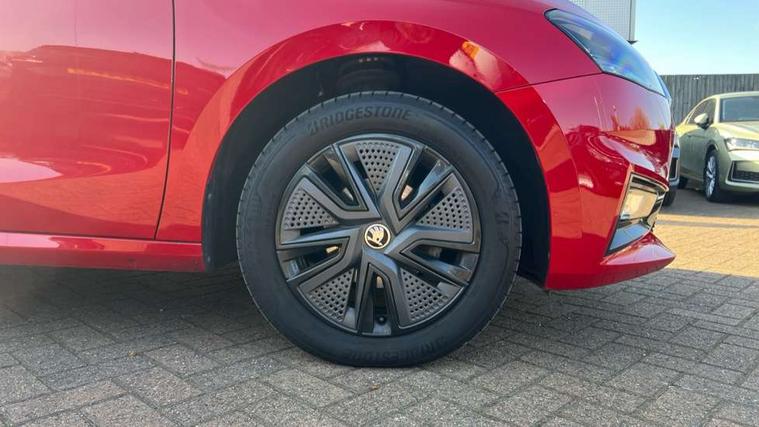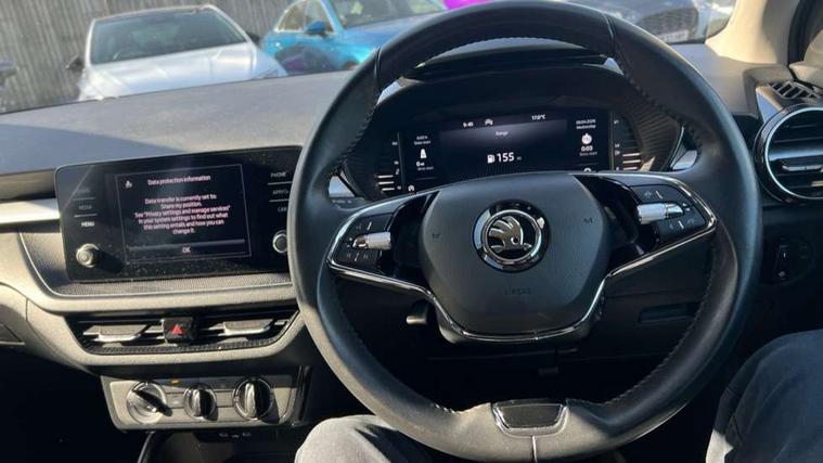 Bluetooth connection, Driver alert system - DAS, Electromechanical power steering, Exterior temperature gauge, Lane assist including road edge detection, Service interval indicator, Virtual cockpit with 10.25" colour display, 2x USB-C in the front (for data transmission and charging), 6 Speakers (4 in front and 2 in rear), Auxiliary socket for external MP3 player, Bolero radio with 8" colour display, DAB digital radio reception, Basic rear lights, Body coloured bumpers, Dimming rear view mirror with black frame, Door mirror integrated indicators, Electrically adjustable and heated door mirrors, Electrically adjustable front windows with function auto up/down, Front window wiper intermittent control, Headlight range control - Automatic, Ice scraper in fuel cap, LED daytime running lights with coming and leaving home feature, Mechanical adjustable rear windows, Privacy glass, Rear LED fog light, Rear side wing doors, Rear window wiper with washing nozzles, Roof colour door mirrors, Roof mounted spoiler, SKODA tailgate lettering in chrome, Third brake light, 3 rear headrests, Backrest split and folding, Central console with fixed cup holder and storage box, Chrome handbrake release button, Fabric upholstery, Gearshift knob/handle in leather, Grain satin black interior door handles, Hand brake lever handle in leather, Height adjustable front headrests, Height adjustable steering wheel, ISOFIX and TopTether anchorage points to the outer rear seats, ISOFIX and TopTether on the front passenger seat, Luggage compartment lighting, Pollen filter, Rear seat bench unsplit, Single front passenger seat, Storm grey headlining, Sun visors with mirror and airbag label on passenger side, Ticket holder, Umbrella in drivers door, 3-point height adjustable front seats belts with pretensioner and force limiter, Automatic warning lights in case of crash, Driver and passengers airbag with switch off function, e-Call+, ESC including ABS, MSR, ASR, EDS, HBA and XDS, Front and rear seat belt warning, FRONT ASSIST (AEB City and AEB Inter Urban), Front side airbags, Head airbags, One tone horn, Pedestrian protection, Three rear 3-points safety seat belts with pretensioner and force limiter including stop function for outer rear seat belts, Tyre pressure monitoring system, Anti-theft alarm system including immobiliser, interior monitoring, backup horn, and towing protection, Anodized cross line upper decorative trim, Colour Edition air vents, Grain satin black central console cover, Grain satin black lower decorative trim, Satin black door and side trim panel in front, Anti-theft wheel bolts protection, Super-low rolling resistance tyres,