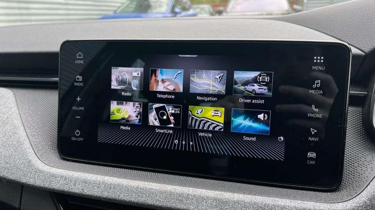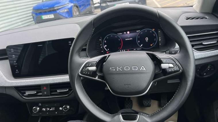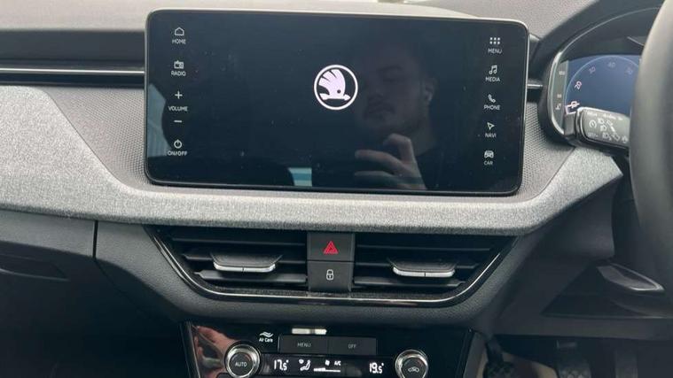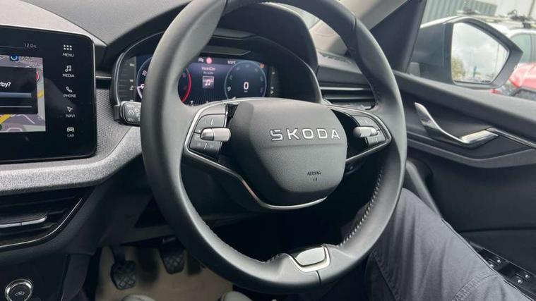 Advanced driver attention and drowsiness monitor, Bluetooth system, E-call, Front assist system, PAS, Rear parking sensors, Rear view camera, Service indicator, Speed limiter, Traffic sign recognition, Virtual cockpit with 10.25" display, Voice control system, Wireless smartlink, 4 USB C ports, 8 Speakers, 9.2" Skoda navigation display, DAB Digital radio, Auto dimming rear view mirror, Automatic headlight control with coming home and leaving home feature, Black roof rails, Body colour bumpers, Body colour door mirrors and handles, Chrome grille surround, Front and rear electric windows, Full LED headlights, Heated rear window, LED brake lights, LED daytime running lights, LED front turning lights, LED high beam, LED low beam, LED third brake light, Rear LED fog light, Rear side wing doors, Rear wiper, Ticket holder inside windscreen, 12V socket in luggage compartment, 3 seat bench in 2nd row, Black hotstamping, Cargo elements, Chrome inner door handles, Driver and passenger sun visors with vanity mirror, Dual zone climate control, Front and rear roof lights, Front centre armrest, Front head restraints, Glove compartment with illumination, Height adjustable driver seat, Height adjustable front passenger seat, Ice scraper, Inner circulation control with pollen filter, ISOFIX on front passenger seat, Isofix preparation for back seats, Krepp recycled decor inserts, Leather gearknob and handbrake lever, Loft cloth upholstery, Manual lumbar support for front seats, Net package and top tether hooks in boot space, Net under rear shelf, Overhead glasses storage compartment, Pocket on the back of both front seats include mobile phone pockets, Rake/reach adjustable steering wheel, Reading lights, Satin black door inserts, Single front passenger seat, Textile floor mats, Third rear headrest, Top tether for front passenger seat, Umbrella in driver's door, 3x3 point rear seatbelts, Airbags - driver and front passenger, Disc brakes, ESP, Extended and predictive pedestrian/cyclist protection, Front passenger airbag deactivation switch, Front side airbags with curtain airbags, Hill hold control, Manual leather parking brake, Manual rear child locks, One tone horn, Seatbelt reminder for driver an co-driver, Traction control, Tyre pressure monitor, Anti-theft alarm system with interior monitoring, backup horn, towing protection and remote central locking with SAFE system, Anti-theft wheel bolts, Electronic engine immobilizer,