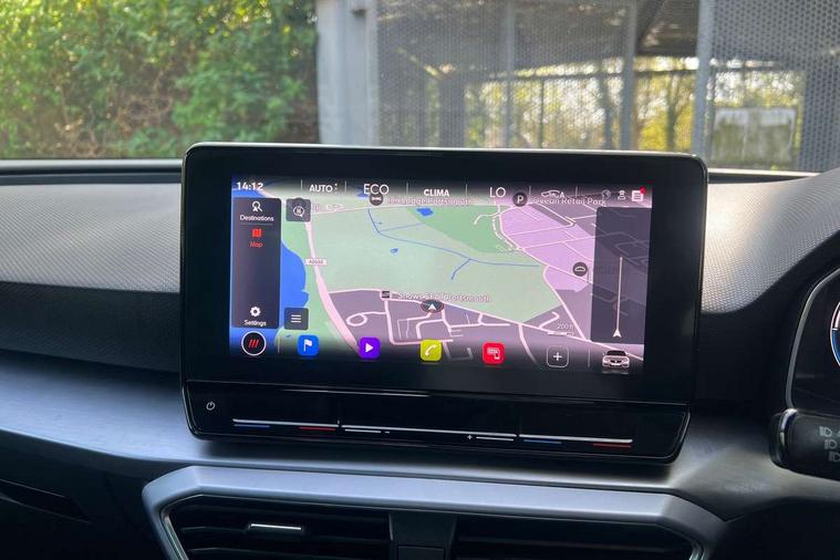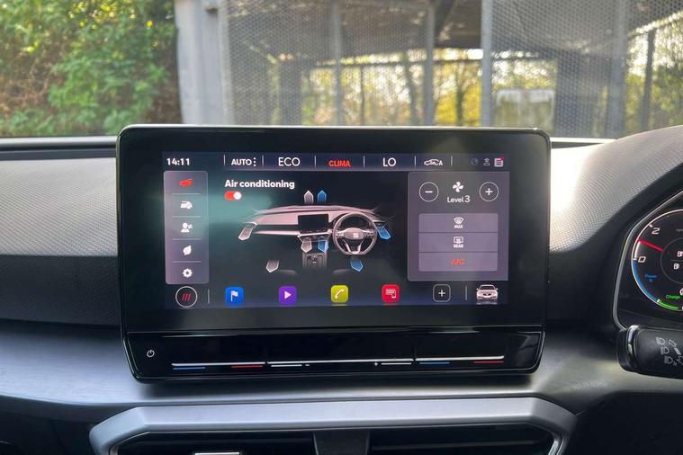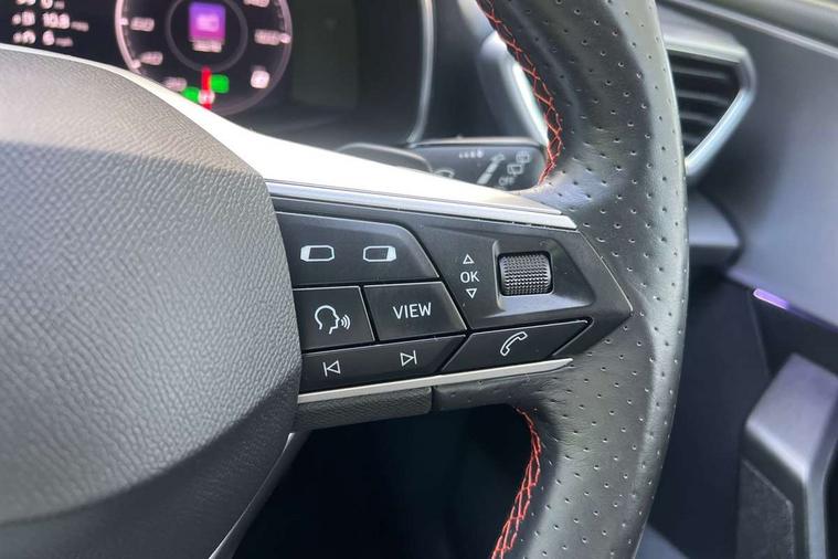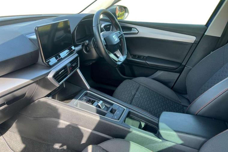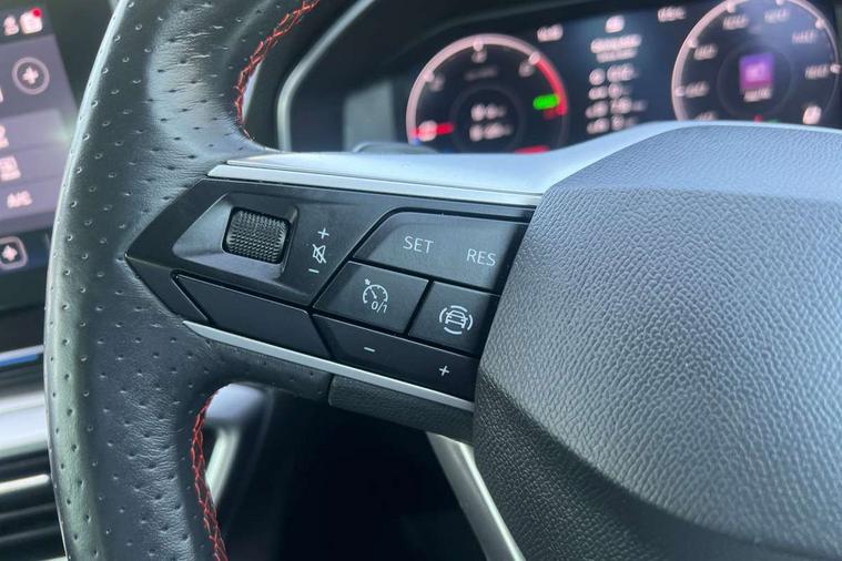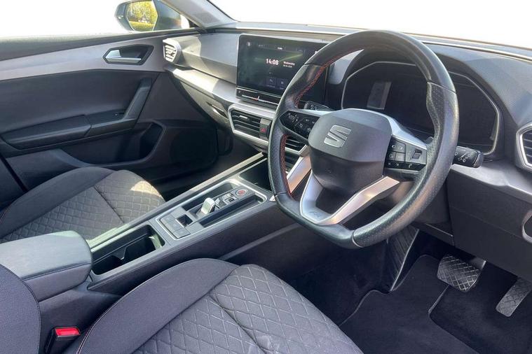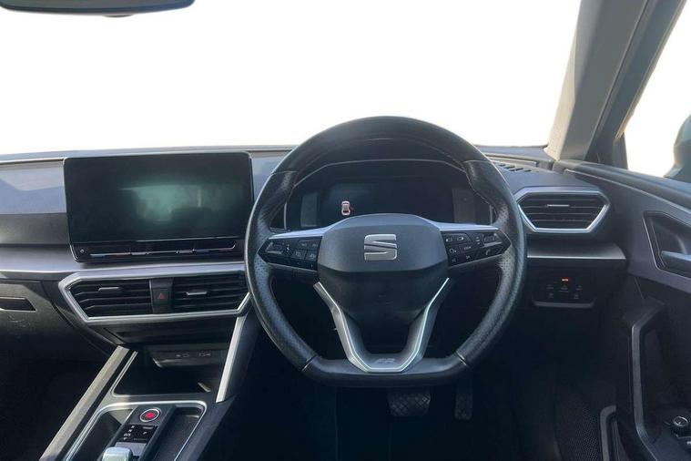 Digital cockpit, Front assist with forward collision warning braking reaction to vehicles, pedestrians and cyclists, Full link smartphone integration with Mirror Link, wireless Apple CarPlay and wired Google Android Auto, Lane keeping system, Lockable tailgate, Park assist (inc front/rear parking sensors), Power assisted speed sensitive electro-mechanical steering, RPM, trip computer, outside temp gauge, instrument light brightness, low fuel warning light, lights on reminder, gearshift indicator, SEAT drive profile with 4 modes (Eco/Normal/Sport/Individual), throttle response and gearshift mode, Service interval indicator, Start/stop system with regenerative braking, 10 amp mode 2 charging cable, Sports suspension, XDS electronic differential lock and dynamic traction support, Auxiliary input socket, Auto dimming rear view mirror, Body colour door handles, Body coloured bumpers, Cosmo grey exterior mirrors with integrated LED indicators, Dark tinted rear windows, Electric front/rear windows, Electrically adjustable, heated and folding door mirrors, FR sports bumper, Illuminated front door sill, LED front fog lamps with cornering function, LED headlights and tail lights with dynamic turn signals, welcome light silhouette from exterior mirrors and dynamic headlight range control, LED rear fog lamp, Rain sensing wipers, Rear wash/wipe, Separate daytime running light with automatic headlight control and coming home feature, 12v power point in centre console, 60/40 split rear bench seat with armrest, Ambient lighting in door trim, Cloth upholstery, Driver/passenger manual seat height adjustment, Dust/pollen filter, Folding boot cover, Front and rear height adjustable headrests, Front and rear reading lights X 4, Front centre armrest, Front seatback storage pockets, Height/reach adjust steering wheel, Interior lighting with LED lighting in sunvisor, glovebox and rear headlining, ISOFIX points in outer rear seats with top tether anchorage points, Luggage tie-down hooks, Lumbar adjustment for front seats, Sunvisors with covered illuminated mirror, Three zone climate control, Tool kit, Media system plus with navigation - Leon, 3 point seatbelts on all rear seats, ABS, Brake control system - ESC and brake booster, Child proof door locks, Driver and front passenger airbags with front passenger airbag de-activation, front side and curtain airbags, Electronic parking brake, Extended safety system - seat belt tensioner, window closure and hazard lights, Hill hold control, Rear disc brakes, Seat belt reminder for front and rear seats, Tiredness recognition system, driver alert system, Tyre pressure monitoring system, Anti theft alarm system with interior monitoring in cab, backup horn and towing protection, KESSY Go (Keyless start), Locking wheel bolts, Wireless phone charging, Chrome interior detailing, 17" Dynamic Bi-spoke alloy wheels with 91W tyres, Emergency tyre repair kit,