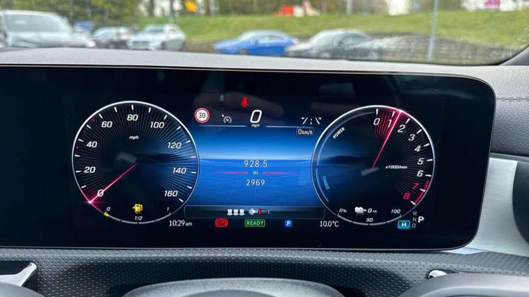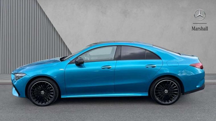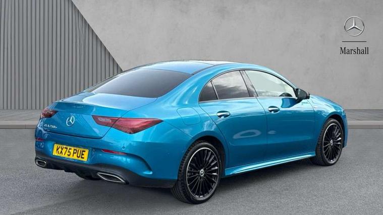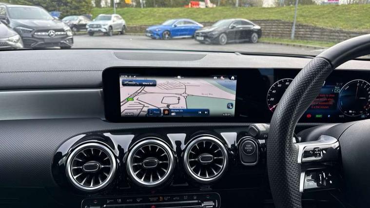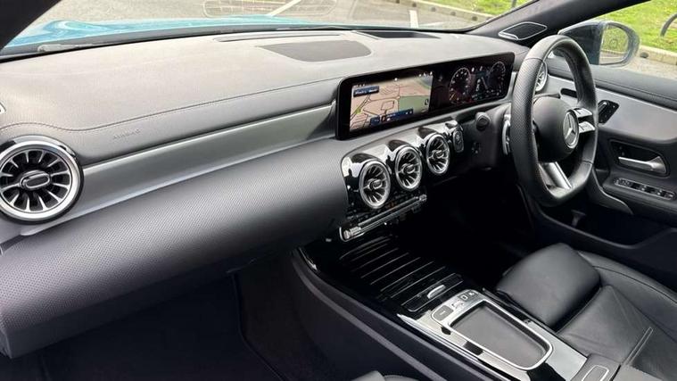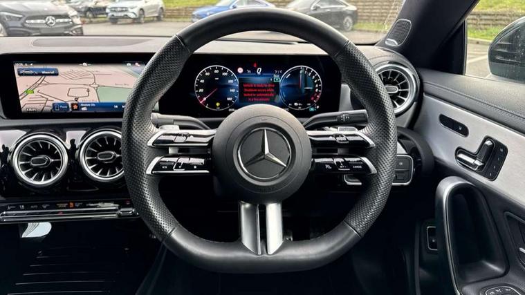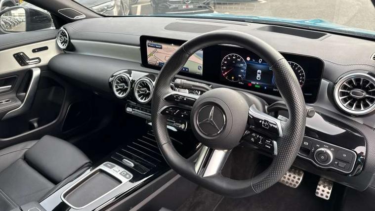 10.25 inch Instrument display with digital cockpit, 10.25 inch touchscreen central media display, Acoustic ambient protection, Active lane keeping assist, Attention assist - Monitors steering behaviour and long journey fatigue, Bluetooth connection, Car wash mode, Cruise control with limiter, Direct steer system, DYNAMIC SELECT with a choice of driving modes (ECO, Comfort, Sport and Individual), ECO start/stop function, Fluid level warning indicator for fuel, oil, coolant and washer fluid, Hard-disk navigation, Head up Display, Hey Mercedes Voice activation, Lamp failure indicator, Mercedes me connect including emergency call system, accident recovery, breakdown and maintenance management, Mercedes me remote and charging services plus, Outside temperature gauge, Owners manual in English, Pre-installation of private car share, Radio aerial integrated into front and rear windshields, Service indicator (ASSYST), Smartphone integration with Apple CarPlay and Android auto, Traffic sign assist, Trip computer in multifunction display with current consumption indicator, Wireless charging in the front centre console, Charging system - AC charging system rated at 11kW, Charging system - DC charging system rated at 22kW, Comfort suspension, Mode 3 charging cable for wallbox and public charging stations with 5m upto 11kW, Rear axle torsion beam, Burmester lettering on the speakers, Burmester surround sound system (710W) with dolby atmos, speakers - 1 central, 1 woofer, 1 tweeter, 1 subwoofer with 60W, 2 in C pillar, DAB digital radio tuner, MBUX multimedia system, Pre installation for Mercedes Benz Link, Adaptive brake lights, AMG body styling with AMG front apron and rear apron and visible exhaust tailpipe in chrome trim elements, Body colour door handles, Electric panoramic sunroof with automatic tilt and convenience closing fuinctions, rain sensor auto closing and electronic roller sunblind, Electric windows, Electrically adjustable and heated door mirrors with integrated LED indicators, Exhaust system with 2 Visible tailpipe trim elements and rear apron with trim in chrome, Hand free access, Headlamp assist automatic headlamp activation, Heated glass rear windscreen + timer control, High level LED third brake light, Integrated LED daytime running lights, Interior mirror with black reading lamps and frameless, LED tail lamp, Multibeam LED headlamps with adaptive highbeam assist plus, Privacy glass with dark tinting on rear side windows and rear window, Radiator grille with Mercedes-Benz pattern in chrome and central Mercedes star, single louvre in high-gloss black with chrome inserts, Rain sensing windscreen wipers with two sensitivity settings, Rear boot, Rear fog lamp, Rear side wing doors, Variable front intermittent wipers, 3 seat bench in 2nd row, 3 twin spoke flattened multifunction steering wheel in nappa leather - horizontal twin spoke in high gloss black, vertical twin spoke in silver chrome, 40:20:40 split folding rear seat backrests, Air condition air vents with surround in silver chrome, Air conditioning - Two zone thermotronic luxury automatic climate control with display, Artico man-made leather/Microcut microfibre upholstery, Automatic child seat recognition sensor, Black roof lining, Brushed stainless steel sports pedals with rubber studs, Charging socket, Electrically adjustable front memory seats including 4 way lumbar support, Floor mats with stitched AMG lettering, Fluorescent jacket, Front centre armrest with stowage, Galvanished gear shift paddles in silver chrome, Interior lighting - 64 colour Ambient lighting, Luggage net on driver/front passenger seat backrest, Manually height and reach adjustable steering column, Pre-entry climate control, Rear armrest with two integral cup holders for drinks, Rear head restraints, Single front passenger seat, Sport seats with fixed head restraints, Stowage compartment in centre console with retractable cover, Sunvisors with illuminated vanity mirrors, Twin front cupholders, Two outer rear seat isofix and top tether child seat fixing points, Drive parking assist pack with 360 degree camera - CLA, Keyless go comfort pack - CLA, Light and sight pack - CLA, Mirror pack - CLA, Night package - CLA, Seat comfort pack - CLA, USB package plus - CLA, Winter pack - CLA, Active bonnet pedestrain safety measure which detects an impact and raises bonnet by 65mm, Adaptive brake assist with hold function and hill start assist, Anti lock braking system (ABS) with brake assist, Black seat belts, Bonnet with power domes, Brake calipers with Mercedes-Benz lettering, Brake pad wear warning indicator, Childproof locks manually operated for rear doors and electrically operated for rear power windows, Crash responsive emergency lighting, Driver and front passenger head and sidebags, Driver and front passenger windowbags, Drivers knee airbag, Dual stage driver and front passenger airbags, Electric parking brake, Electronic stability programme with acceleration skid control, ESP curve dynamic assist, Exit warning, Front and rear seatbelt reminder, Front passenger seat occupancy sensor, Perforated front brake discs, Radar-based recuperation, Sports braking system, Three point rear seat belts, Tyre pressure monitoring system, Warning triangle and first aid kit, Alarm system with immobiliser and interior protection -Thatcham category 1, Guard 360 deg vehicle protection - tow away protection with visual, acoustic warning, interior monitoring, preinstallation for parking damage, Remote central locking and crash sensor with emergency opening function, Light aluminium with longitudinal grain interior trim, 19" AMG multi-spoke black painted light alloy wheels with high sheen rim flange, Summer tyres, Tirefit tyre sealant kit,