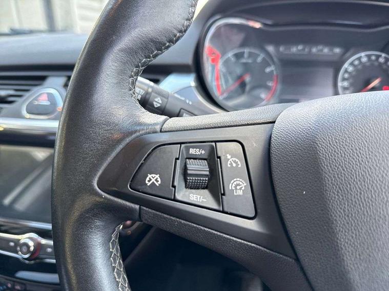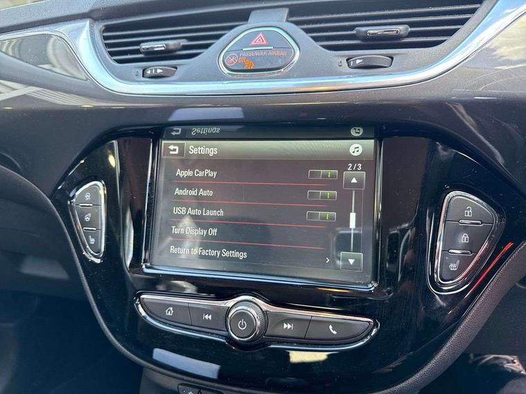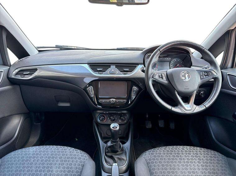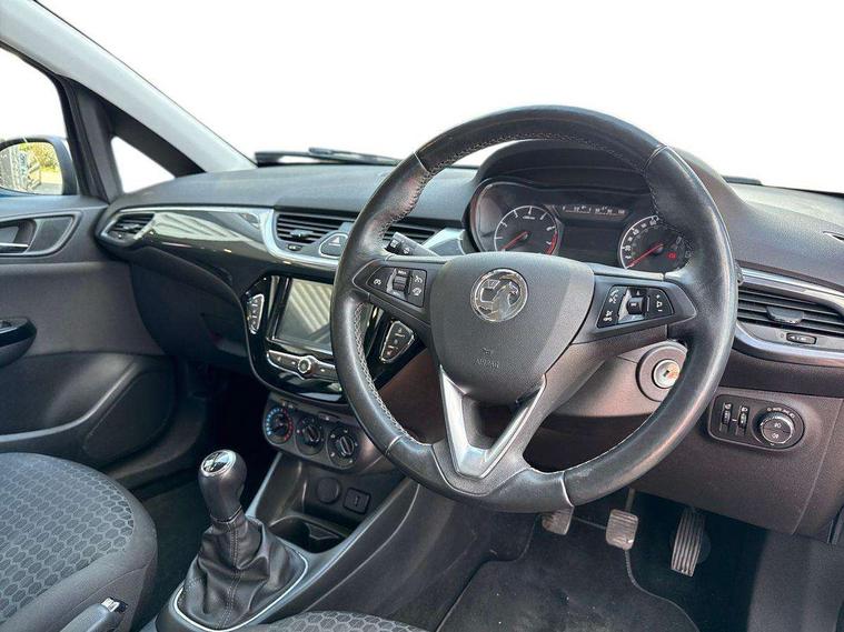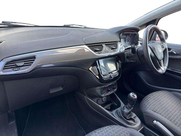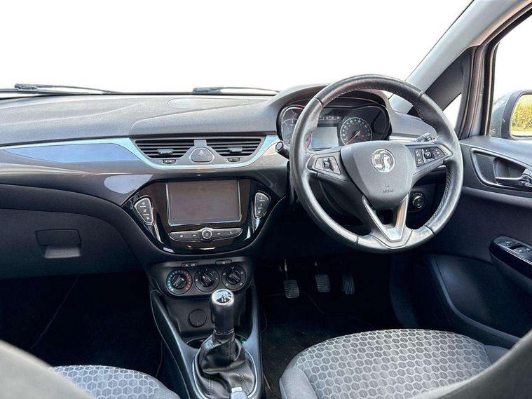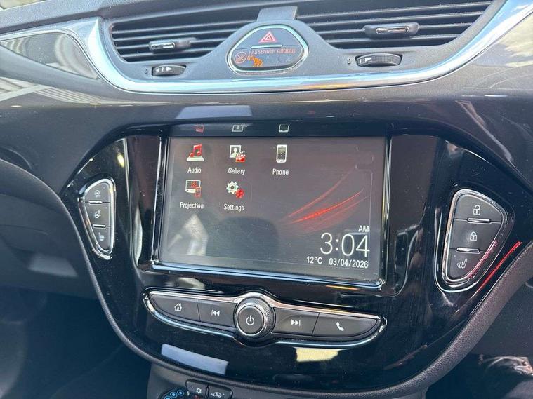 Apple car play/Android Auto, Central facia display, Cruise control + speed limiter, Digital fuel gauge with low fuel warning light, Digital water temperature gauge, Electric speed sensitive power steering, Exterior temperature gauge, Lights on audible warning, Rev counter, Service indicator, Speed warning indicator, Speedometer, Trip computer, White graphics on black background, Front anti roll bar, Steering wheel mounted audio/cruise controls, Black foil on B-pillars, Body colour bumpers, Body colour door handles, Body coloured door mirrors, Chrome front grille, Dipping rear view mirror, Door to door illumination, Electric adjustable/manual folding heated door mirrors (wide angle on driver's side), Electric headlight beam leveling, Electrically operated front windows with safety auto reverse/one touch facility, Front fog lights with black surround, Halogen headlights, Hazard warning lamps, Headlamp levelling, Heated rear window, Heated windscreen, High level LED centre brake light, Intermittent rear wash/wipe, Laminated windscreen, LED daytime running lights, Rear fog lights, Rear wiper, Side window demist vents, Two speed windscreen wipers with variable intermittent wipe, Welcome lighting, Windscreen demist vents, 12V electrical accessory socket in front, 3 spoke steering wheel, Anti submarining ramps in all seats, Centre console with cupholders, Chrome gear knob, Chrome interior door handles, Cloth upholstery, Comfort front seats, Driver's and front passenger's sunvisors, Driver's and front passenger's tiltable assist handles, Driver's and passenger's vanity mirrors with flip up cover, Driver's vanity mirror, Four adjustable facia vents, Front courtesy lights, Front door pockets, Front map reading lights, Front seat belt pre-tensioners with load limiters, Glovebox with lid, Grab handles, Height adjustable driver's seat, Height adjustable front headrests, Height adjustable rear head restraints with adjustable backrest, Illuminated luggage compartment, Instrument panel light dimmer, Interior tailgate handles, Isofix child seat mounting points on outer rear seats, Load restraining lashing points, Luggage compartment cover, Multi function steering wheel, Passenger make up mirror, Pollen filter, Reach + rake adjustable steering column, Rear courtesy lights, Rear door pockets, Rear reading lights, Reclining front seats, Storage box on driver's side lower facia, Stowage facility for luggage compartment cover behind rear seats, Twin gas assisted tailgate struts, Sight and light Pack - Corsa, Winter pack - Corsa, Anti-lock braking system (ABS), Brake assist function, Electronic brake force distribution, Electronic Stability Programme, Energy absorbing steering column, Front and rear seatbelt reminder, Front and rear seatbelt unfastened audible warning and warning light, Front seatbelt force limiters, Gas pressure dampers, Height adjustable front seatbelts, Hill start assist, Manual passenger airbag deactivation function, Pedal release system, Rear child proof door locks, Reinforced passenger safety cell, Side impact protection beams, Six airbags - Driver's dual stage airbag/front passenger's dual stage airbag/front seat side impact airbags/full size curtain airbags, Three 3 point rear seatbelts, Three inertia reel lap/diagonal seatbelts, Traction control, Tyre pressure monitoring system, Electronically protected audio, Engine Immobiliser & Deadlocks, Key left in ignition audible warning, Locking wheel bolts, Remote control central locking, Visible vehicle identification number, Rhutenium facia with chrome effect inserts, Low rolling resistance tyres,