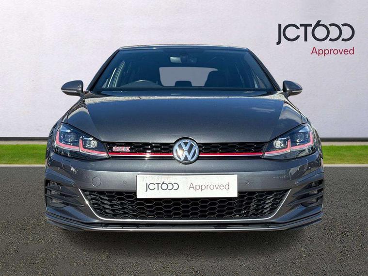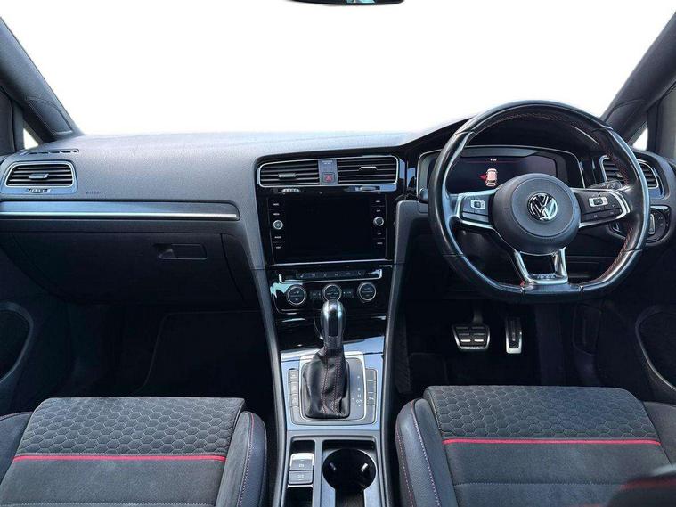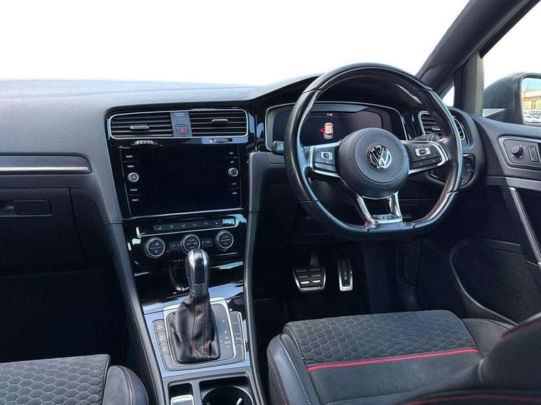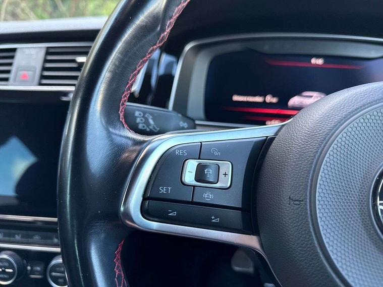 'Lights On' Reminder warning buzzer, ACC - Adaptive cruise control with front assist, forward collision warning, distance monitoring, city emergency brake and speed limiter, Active information display - 12.3" high resolution TFT display, Bluetooth telephone and audio connection for compatible devices, Brake pad wear indicator warning light, Car information display, Driver alert system, Driver profile selection, Driving Mode Selection with four preset modes - Eco, normal, sport or individual modes, Front assist, radar sensor controlled distance monitor, city emergency braking + predictive pedestrian protection, Front assistant collision mitigation, Instrument cluster in white, Multifunction computer with visual gear change recommendation for fuel consumption, Power assisted speed sensitive electro-mechanical steering, Rear view camera, Speedo, rev counter, electronic odometer, trip, service interval display, exterior temperature and fuel gauge, Stop/start system, Ultrasonic front and rear optical and audible parking sensors, Warning buzzer and light for front seatbelts unfastened, Battery regeneration during braking, Limited slip differential, Lowered sports suspension, Composition media system, DAB Digital radio receiver, MDI multi device interface, MP3/WMA compatability, Multi device interface (MDI) with USB connection, Premium USB cable in choice of either Apple or Android smartphone compatibility, SD card slot, SMS Functionality, Title and cover art display, 4 X 20W output, USB connection and socket, USB and SD card connectivity, Volkswagen media control, 3D-LED tinted rear light clusters with indicator sweep function, Automatic dimming rear view mirror/rain sensor, Black rear diffuser, Body colour door handles, Body colour door mirrors with integrated indicators, Body colour rear roof spoiler, Body colour sports bumpers, Chrome trimmed front air intake surrounds, Darkened rear light clusters, Electric front windows, Electric rear windows, Electrically adjustable and heated door mirrors, Extended sill strips flared, Glavanised body, Heated rear windscreen, High level 3rd brake light incorporating LED Technology, Honeycomb radiator grille - black, LED front fog lights, Range adjustable headlights via infotainment system with LED daytime running lights, Rear fog lamp, Rear number plate lights incorporating LED technology, Rear window aerial, Rear window wash/wipe with intermittent wipe, Reflectors in all doors, Remote electrically foldable door mirrors, door mirror puddle lights and reverse activated kerb-view adjustment on passengers door mirror, Twin exhaust tailpipe, Windscreen wipers/ intermittent wipe + 4 position delay, 12V socket in luggage compartment, 3 rear headrests, 4 load lashing points in luggage compartment, 60/40 split folding rear seat backrest, Bag hook in luggage compartment x 2, Black roof lining, Climate control - 2 zone electronic air conditioning with automatic air recirculation and allergy filter, Cooled glovebox, Dust/pollen filter, Front + rear carpet mats, Front centre armrest with storage compartment and two rear air vents, Front reading lights, Front seat back storage pockets, Grab handles front x 2, rear x 2 with integrated coat hooks, Height and reach adjustable steering wheel, Illuminated door sills, Illuminated vanity mirrors, Instrument lighting white adjustable panel illumination, Interior light delay, Isofix preparation for 2 rear child seats, LED front and rear reading lights, Load through provision with rear centre armrest and cupholders x2, Luggage compartment light, Multi-function leather steering wheel with red stitching, Multifunction leather steering wheel with leather trimmed gear knob including paddle shift, Overhead storage box, Stainless steel pedals, Storage box in luggage compartment, Storage compartment in roof console with cover, Storage compartments in front doors, Storage compartments in rear doors, Stowable luggage compartment cover, Sun visors, Three spoke multi-function leather trimmed steering wheel and gearknob, Variable boot floor, height adjustable and removable, Ambient lighting pack - Golf, Convenience Pack - Golf, Light and Sight pack - Golf, Mirror pack - Golf, 3 rear three point seatbelts, Airbags - Driver's and front passenger's, curtain airbag, Driver's knee, front side impact and passenger's airbag deactivation switch, Anti-lock Braking System (ABS) with Hydraulic Brake Assist (HBA), Automatic post collision braking system, Child locks on rear doors, Driver/Passenger optimised head restraints, Electronic parking brake with auto hold, Electronic stability control (ESC) including Electronic differential lock (EDL) and ASR (Traction control) with deactivation via infotainment system, Pre crash preventive occupant protection, Red brake calipers, Three point height adjustable front seatbelts with tensioners, Tyre pressure loss indicator, Uprated front disc brakes + calipers, Alarm with interior protection and deactivation via infotainment system, Electronic engine immobiliser, Keyless entry, Remote central locking with 2 remote folding keys, Chrome plated air vent surround, Chrome plated electric mirror adjustment light switch surround, Honeycomb black decorative inserts, Piano black centre console, Space saver spare wheel,