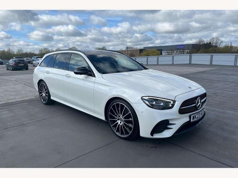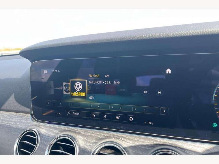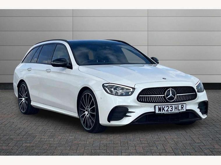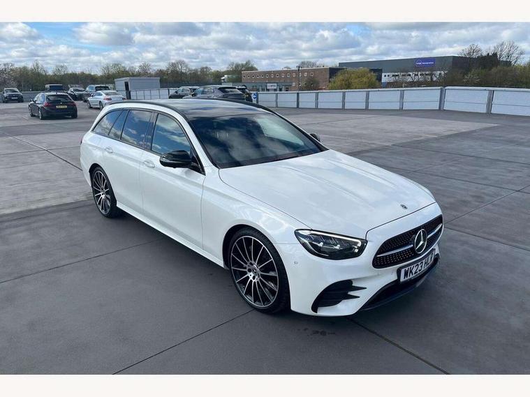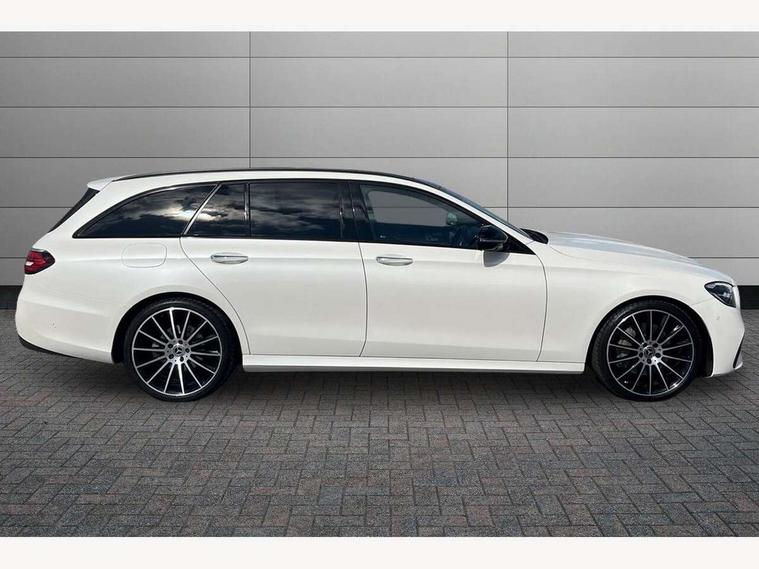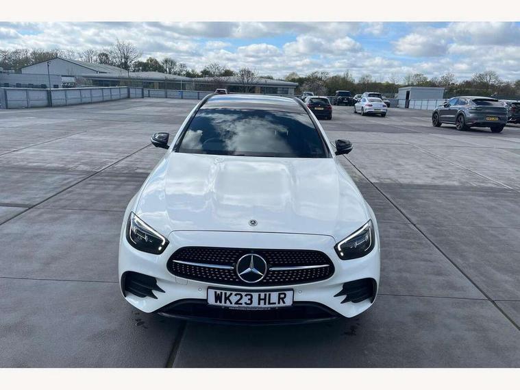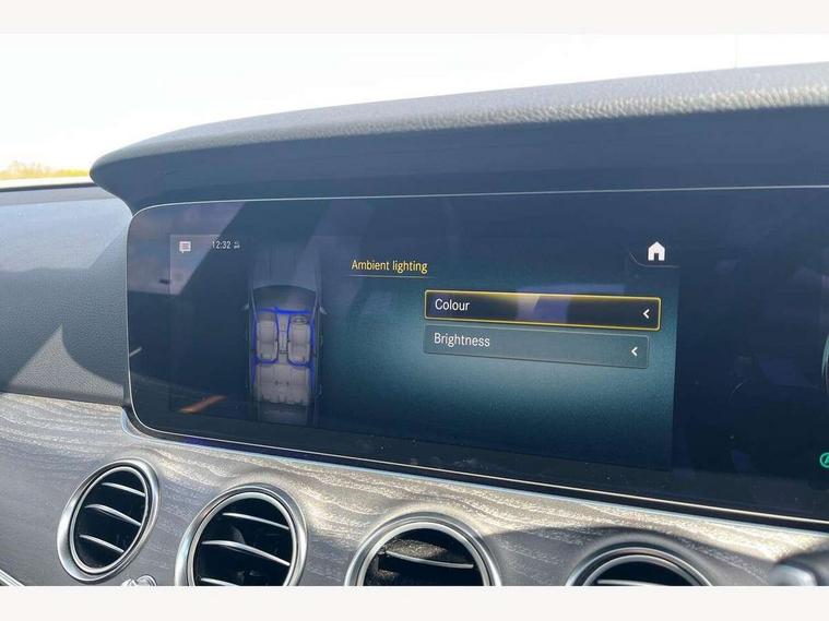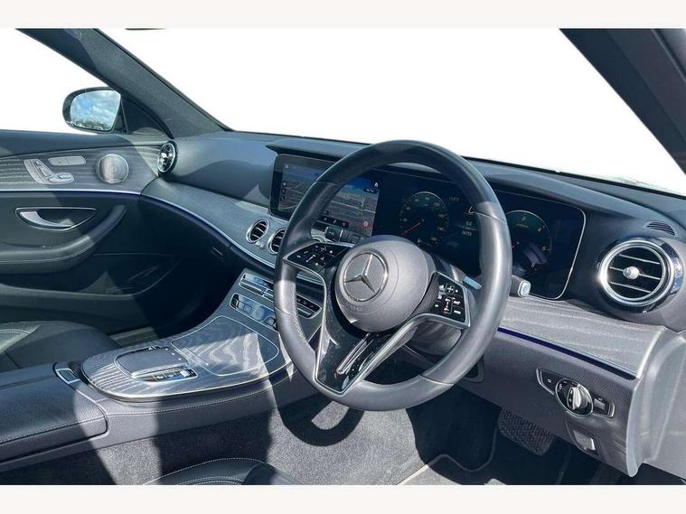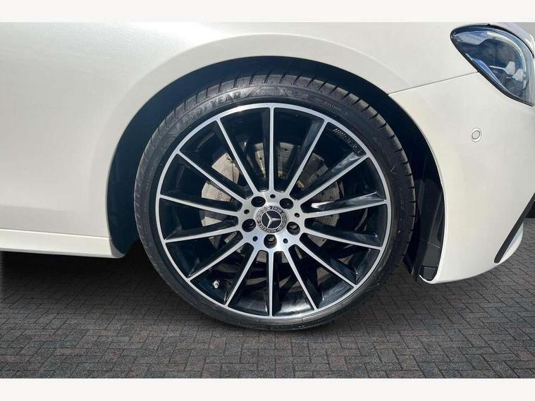 Attention assist, Brake wear warning display, Cockpit display 10.25" widescreen digital instrument cluster, Direct steer speed sensitive steering, DYNAMIC SELECT with a choice of driving modes (ECO, Comfort, Sport, Sport+ and Individual), Easy-pack tailgate - Powered opening/closing automatically, ECO start/stop function, Emergency call service, High resolution 10.25" multimedia colour display, MBUX voice control activated by keywords "Hey Mercedes", Mercedes connect me, Outside temperature display, Remote boot release, Service indicator (ASSYST), Smartphone integration via Android Auto/Apple CarPlay, Media Interface, USB and Bluetooth interface, Status display for rear seat belts in instrument cluster, Touchpad without controller, Traffic sign assist, Trip computer in multifunction display showing current fuel consumption, Wireless charging, 25 litre AdBlue tank, 66 litre fuel tank, 9G TRONIC 9 speed automatic transmission, Agility control sports suspension with selective damping system and lowered by 15mm, Diesel particulate filter, Incorrect fuelling protection, Rear air suspension with level control, 2 USB ports in centre console, 2 USB ports in the rear, Burmester surround sound system with 13 speakers and a 9 channel amplifier with total output of 590 watts, MBUX multimedia system with DAB digital radio and touchpad including satellite navigation, 3rd brake light, Adaptive brake lights, Aerial integrated in rear window, AMG bodystyling front and rear aprons in polished aluminium, Chrome pins diamond radiator grille, surround in high gloss black, single louvre in chrome with insert in high gloss black and integral star, Chrome roof rails, Electric windows with one touch opening/closing and obstruction sensors, Electrically adjustable and heated door mirrors, Front apron in high gloss black, High gloss black exterior mirror housing, High gloss black rear bumper with chrome trim, Illuminated front door sill panels with Mercedes-Benz lettering, LED High Performance headlamps including integral LED daytime running lamps and adaptive highbeam assist, LED rear lights, Panoramic electric glass sunroof, Privacy glass Includes rear side windows and rear windscreen, Rain sensor with automatic headlight activation, Rear side wing doors, Rear wiper, Tail lights, Top surround of side windows in polished aluminium, Visible twin pipe exhaust system integrated into bumper, Waistline trim strip in high gloss black, 3 seat bench in 2nd row, 3 spoke multifunction flat bottom AMG steering wheel with chrome inserts and touch control buttons, trimmed in black nappa leather, 40:20:40 split folding rear bench seat, Artico man-made leather upper dashboard and beltlines with contrast stitching, Automatic child seat recognition sensor, Black door pins, Black roof lining, Central stowage compartment with 12 V socket in centre console, USB socket for use with Android Auto and Apple CarPlay, Courtesy lights in rear grab handles with reading light functionality, Floor mats with AMG lettering, Four way partially front electric seat adjustment, Front centre armrest with stowage compartment, Glasses compartment in overhead control panel, Glove compartment - lockable, air conditioned and illuminated, Head restraints for driver and front passenger (four-way adjustability) and in rear (two-way), Heated front seats, Interior lighting - 64 colour Ambient lighting, Leather upholstery, Seat occupancy sensor for front passenger seat, Single front passenger seat, Steering column electrically adjustable for height and reach, Steering wheel multifunction with gearshift paddles, Steering wheel touch control buttons for audio and onboard settings, Sunvisors with illuminated vanity mirrors, THERMOTRONIC automatic climate control system with 3 climate zones, Mirror pack - E Class, Parking package including 360 degree camera - E Class, Seat comfort pack - E Class, Stowage pack - E Class Estate, 3x3 point rear seatbelts, Active bonnet pedestrian safety measure which detects an impact and raises bonnet, Adaptive brake system with HOLD function and brake drying in the wet, Airbags - sidebag for driver and front passenger with combined thorax/pelvis bag, Anti-lock braking system (ABS), Childproof locks manually operated for rear doors and electrically operated for rear power windows, Driver and adaptive front passenger airbags, Drivers knee airbag, Electronic parking brake, Electronic Stability Programme, Hill start assist, ISOFIX child seat attachment points two outer rear seats, Perforated brake discs with Mercedes Benz lettering, Pre-Safe anticipatory safety system, Tyre pressure monitoring system, Warning triangle and first aid kit, Window airbags, Alarm system/interior protection/immobiliser, Central locking with interior switch, automatic locking and crash sensor with emergency opening function, Chrome surround in electric key, Keyless entry go starting function, Grey open pore ash wood trim and centre console in grey open pored ash wood, 20" AMG multi spoke light alloy wheels painted in high gloss black with high sheen finsih, Summer tyres, TIREFIT with tyre inflation compressor,