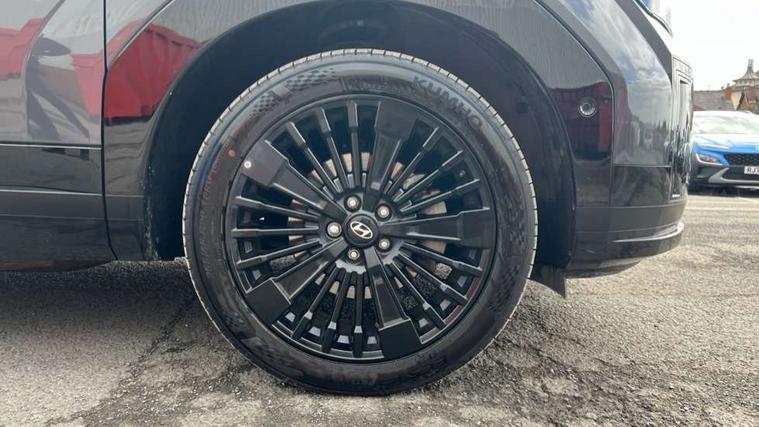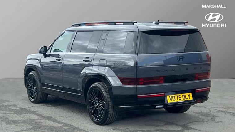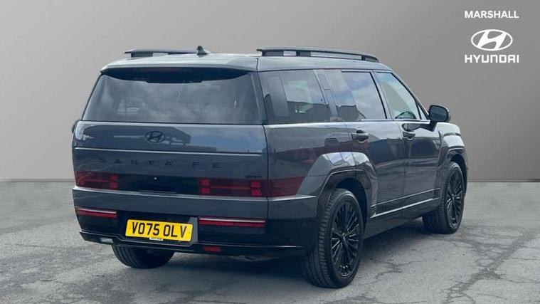 12.3" Drivers supervision instrument cluster with LCD display, 360 degree parking sensors, Blind spot collision avoidance assist (BCA), Blind spot view monitor (BVM), Bluelink and Wireless Apple Carplay/Android Auto, Bluetooth connectivity with voice recognition, Drive mode selector, Driver status monitor (DSM), Dual wireless phone charging pad, Emergency services call system, Forward collision avoidance assist (FCA 2.0), Head up Display, Highway drive assist 2 (HDA 2), Intelligent speed limit assist (ISLA), Lane departure warning system (LDW), Lane Follow Assist 2 (LFA 2), Lane keeping assist (LKA), Low washer fluid warning, Navigation based smart adaptive cruise control with stop and go, Over the air software updates (OTA), Parking Collision Avoidance Assist-Reverse (PCA-R), Power assisted steering, Remote smart parking assist, Safe exist assist (SEA), Smart electric tailgate with hand's free opening function, Surround view monitor, Self levelling suspension, Shift by Wire Gear Selector (SBW), 12.3" Touchscreen display with satellite navigation, 2nd Row USB C Ports x2 Charging, 3rd Row USB C Ports x2 Charging, Front USB C port 1 charging and 1 data/charging, Premium BOSE sound system with 12 speakers and subwoofer, Steering wheel audio, phone and cruise controls, Automatic headlights with dusk sensor, Automatic windscreen wipers with rain sensor, Black Styling (Skid plate, Fender upper garnish, Door side garnish, C/D pillars, Rear bumper moulding, DLO), Body colour bumpers, Digital centre mirror, Dynamic welcome lights, Electric adjustable/heated/auto power folding door mirrors, Front and rear electric windows, Heated rear window, Hidden C pillar assist handle, Hidden rear wiper, High beam assist, LED daytime running lights, LED Headlights, LED indicator lights, LED indicators in door mirrors, LED positioning lights, LED taillights, LED third brake light, Manual rear door blinds, Rear side wing doors, Rear windows and tailgate privacy glass, Roof rails, Solar glass windscreen and front windows, Windscreen acoustic film, Windscreen auto defog function, 2nd and 3rd row center armrest with cupholder, 3rd row head restraints, Centre rear head restraint, Driver and front passenger premium relaxation seats, Dual zone climate control air conditioning, Electrically adjustable front seats with 2 way electric lumbar support, Front head restraints, Front seats with memory, Heated front seats, Heated rear seats, Height and reach electrically adjustable steering column, Leather wrapped heated steering wheel, Luggage cover, Luggage hooks, Luggage net, Multi colour LED ambient lighting, Nappa leather upholstery, Rear head restraints, Single front passenger seat, Split folding (50/50) third row seats, Split folding (60/40), sliding and reclining second row seats, Sun Visors with driver and passenger illuminated vanity mirrors, Two front cup holders, UV-C Tray, Ventilated front seats, Trailer wiring pack - Santa Fe, 3 point seatbelts on all seats, Adjustable regenerative braking paddle shifters, Airbag - Front, front side, curtain and centre front airbags, Anti-lock brake system (ABS), Dynamic brake control, Electric parking brake with auto hold function, Electronic Stability Control (ESC), Hill start assist control (HAC), Manual child lock in rear doors, TSA (Trailer Stability Assist), Tyre pressure monitoring system, Immobiliser, Smart Key - Keyless entry with Power On/Off button, Black ink interior decals, 20" Black calligraphy alloy wheels, Tyre mobility kit,
