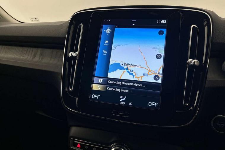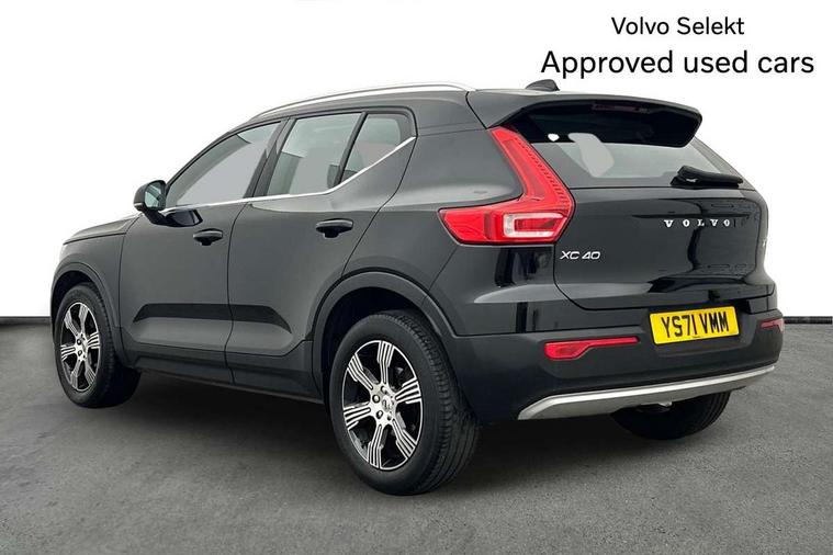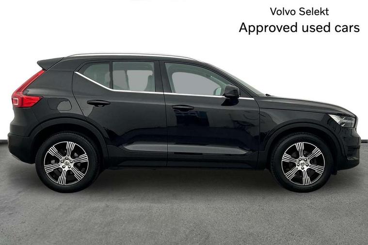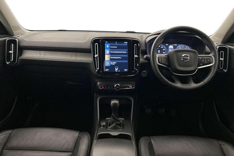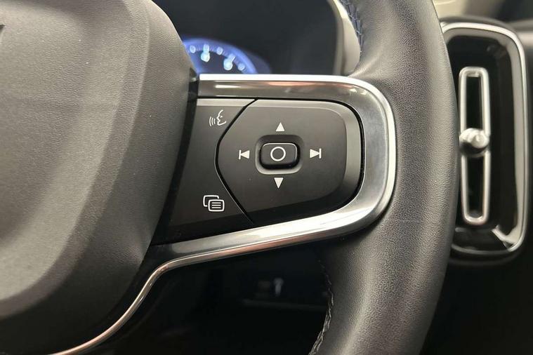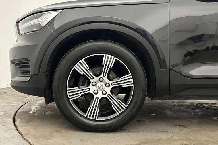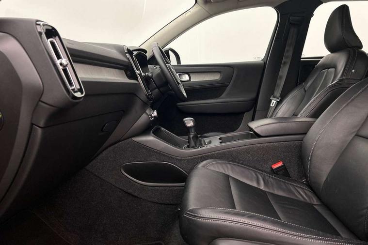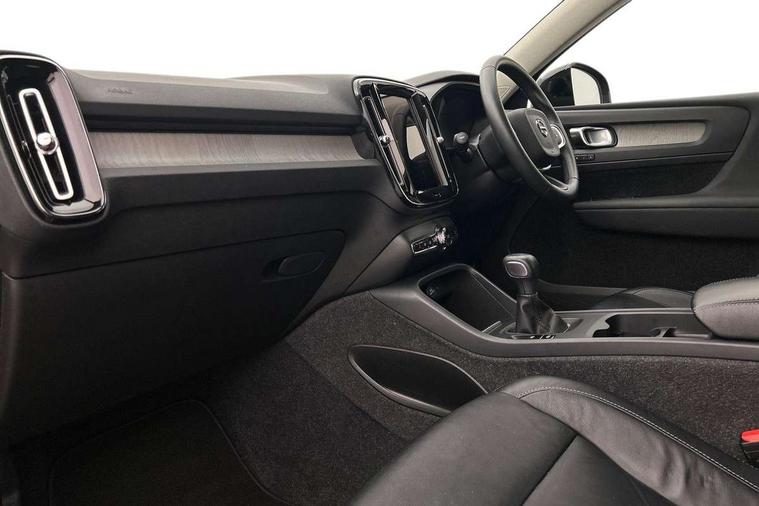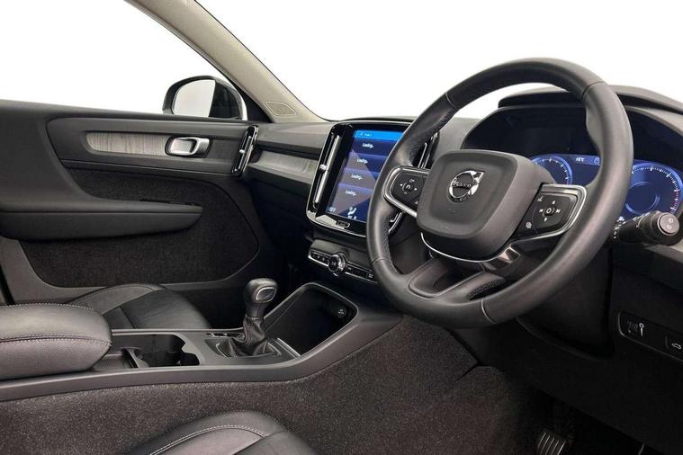 12.3" Active TFT crystal driver's instrument display, 9" centre console portrait touch screen, Adjustable steering wheel force, Bluetooth hands free telephone kit, Drive mode selector, E-call, Lane keep assist with driver alert control, Oncoming Lane Mitigation, Power operated tailgate, Sensus navigation with European mapping and traffic information, Speed limiter, Speed sensitive steering, Voice activated control for key functions, Volvo on call, Dynamic chassis, DAB Digital radio, Steering wheel mounted remote controls, Adaptive brake lights with high level LED brake lights, Auto dimming interior mirror, Automatic headlamp levelling, Chrome window surround, Colour coordinated auto folding and heated power door mirrors, Front aluminium tread plates, Front and rear electric windows, High gloss black front grille with chrome inserts, High gloss black sensus surround deco, High Gloss silver front and rear skid plate, Home safe and approach lighting, Integrated roof rails in silver, LED Headlights + Active high beam incorporating daytime running lights, Rain sensor with automatic windscreen wiper activation, Rear side wing doors, Rear wiper, Roof antenna, Roof spoiler, Visible VIN plate, 12V socket in front tunnel console and luggage compartment, 2 zone electronic climate control and rear air vent, 3 seat bench in 2nd row, 3 Spoke tailored steering wheel with chrome trim, 60/40 versatile split folding rear seat, A-pillar parking ticket holder, Bright metal luggage threshold, Centre console cupholders and storage, Floor mats, Front footwell illumination, Front headrests, Front reading light and theatre lighting, Glovebox bag hook, Height/reach adjustable steering column, Height/tilt adjustable driver's seat, Illuminated glovebox, Illuminated luggage compartment, Illuminated vanity mirrors, Isofix attachments on outer rear seats, Leather faced upholstery, Leather gearknob, Load protection net, Multi directional lumbar support, Power driver seat with memory + exterior mirrors memory, Rear armrest / integral cup holders / storage tray, Rear coat hook, Single front passenger seat, Underfloor cargo storage, Vanity mirror with ticket holder, Park assist pack - XC40, 3x3 point rear seatbelts, City safety includes pedestrian, cyclist and large animal detection and front collision warning with full auto brake, Drivers knee airbag, Dual stage driver/passenger airbags, Electronic parking brake with auto hold, First aid kit, Front and outer rear seatbelt reminder and pretensioners, Front seats SIPS airbags, Hill descent control, Hill start assist, Inflatable curtain, Passenger airbag cut-off device, Road sign information display, Run off Road Mitigation, Run off Road Protection, SIPS (Side Impact Protection System), Slippery road and hazard light alert, Stability and Traction Control with Spin control, Engine Drag Control and Corner Traction Control, Tyre pressure monitoring system, Vehicle deceleration control with Anti-lock Brake System, Electronic Brake Distribution and Emergency Brake Assist, Warning triangle, WHIPS whiplash protection system - front, Anti-theft alarm including immobiliser/volume sensor + level sensor, Care key with user defined top speed, Key integrated remote control central locking + fuel flap with deadlocking system and auto open/close power windows, Locking wheel nuts, Private locking for tailgate, Driftwood inlays,