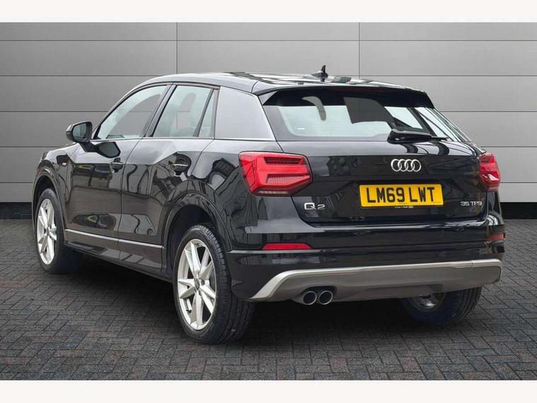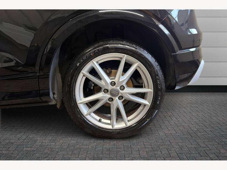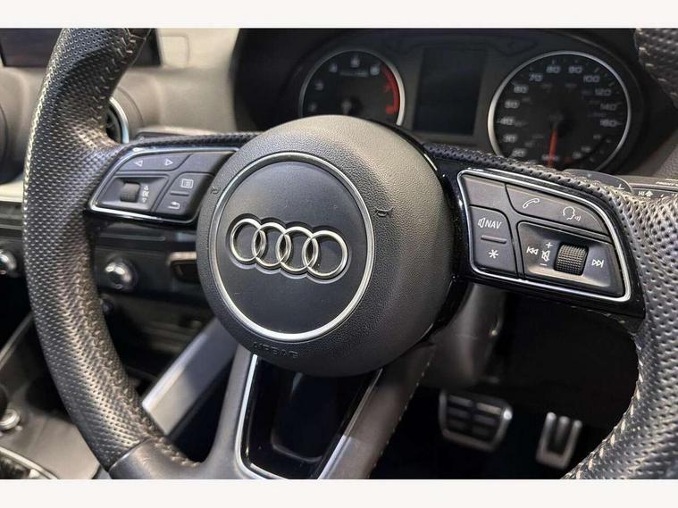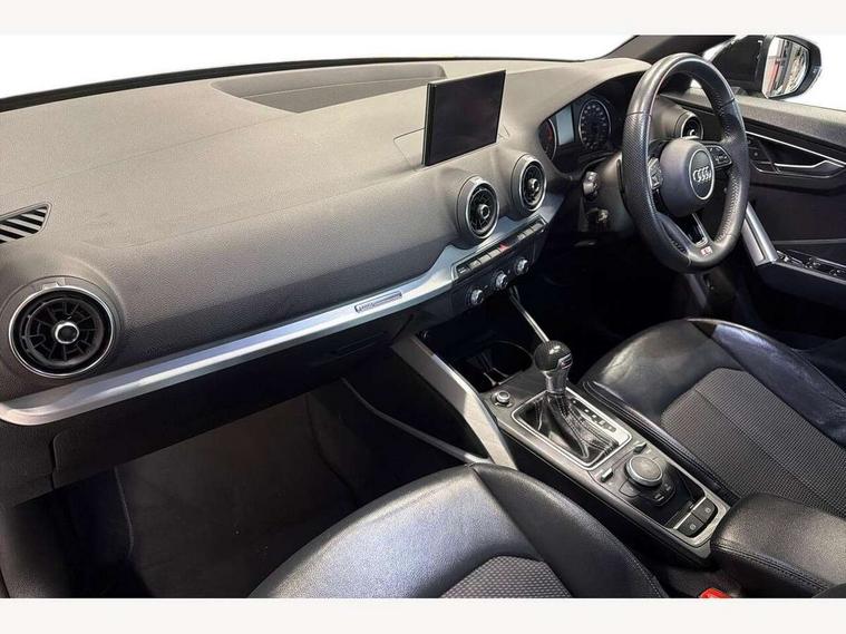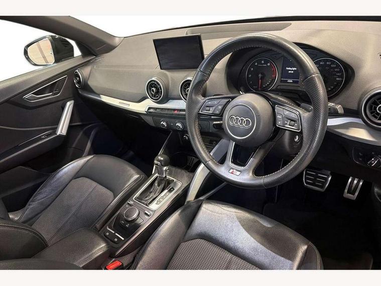 Audi drive select, Audi smartphone interface, Automatic start/stop system with recuperation, Bluetooth interface includes bluetooth audio streaming, Cruise control, MMI - Multi Media Interface control system, MMI SD card integrated nav with 3D map display, dynamic route guidance with TMC, MMI search, natural voice recognition and myAudi special destinations, Power operated tailgate, Progressive steering, Service interval indicator, Dynamic suspension, 2 x SDXC card reader, Audi music interface - apple iPod, apple iPhone, USB storage media, compatible MP3 players, 2 x USB charging points and 1 x Aux-in, CD Drive, DAB digital radio and AM/FM radio, MMI radio plus with 7" colour MMI screen and MMI controller, Black window trims, Bumper in full body colour paint finish, Chrome exhaust tailpipe, Electrically adjustable and heated door mirrors with integrated LED side indicators, Front and rear electric windows, Front underbody guard and rear diffuser trim in selenite silver, Front windscreen with grey tinted sunband, Headlight washers, Interior mirror, LED headlights with LED rear lights + dynamic rear indicators, LED indicator lights, Manual folding door mirrors, Rain and light sensors, Rear wiper, S Line badges on the front wings, S Line body styling - front and rear bumpers, side skirts, radiator grille, rear diffuser insert and front air intakes, 60/40 split folding rear seat bench, Black cloth headlining, Electronically operated child locks, Floor mats with contrast stitching, Front centre armrest, Front headrests, Front sport seats with S embossed logo, Height/reach adjust steering wheel, Illuminated door sill trims with S logo, ISOFIX child seat mounting for front passenger with airbag deactivation and outer rear seat including top tether attachment point for outer rear seats, Manual seat adjustment including seat height adjustment for front seats, Stainless steel pedals, Storage compartments - Glovebox, cupholder compartment in centre console, storage compartment in rear centre console, front and rear door pockets, Three rear headrests, Non smoking pack - Q2, 3x3 point rear seatbelts, 6 airbags - Front, curtain and front side airbags, Electromechanical parking brake, Electronic stabilisation control including ABS, ASR and EDL, Extended and proactive pedestrian protection, Hill hold assist, Multi collision brake assist, Pre-sense front with pedestrian recognition, Seatbelt monitoring, Tyre pressure warning light, Warning triangle and first aid kit, Anti theft alarm, Anti theft wheel bolts, Central locking system with remote control key, Aluminium interior element,