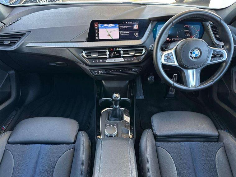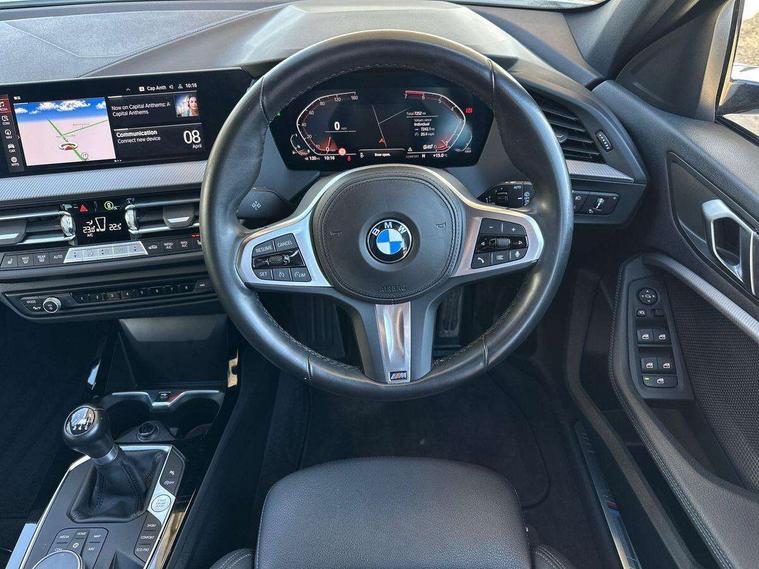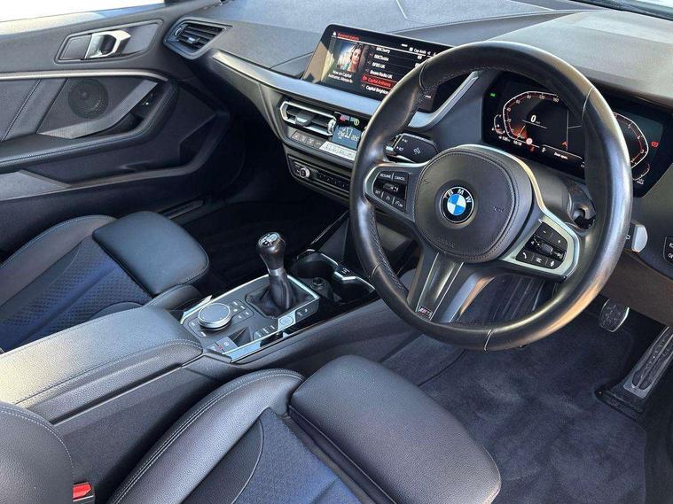 Active guard plus, Attentiveness assist, BMW ConnectedDrive online services, BMW Teleservices, Check Control warning system for monitoring of lights and door/luggage compartment open warning, Cruise control with speed limiter, Eco pro mode, Front axle single joint with specific axle kinematics to minimise drive influences on steering + provide increased rigidity agile driving behaviour, Integrated owners handbook, Lane departure warning system, Oil sensor for level and grade, On board computer, Optimum shift indicator, Personal Profile, Pull away assistant, Rigidly mounted rear subframe - Multi link construction with separate spring / damper configuration and excellent driving characteristics, Speed limit Info including no-overtaking indicator, Aluminium lightweight construction, Anti roll bar front and rear, Balancer shaft, Double VANOS twin scroll turbocharging system, Drive Performance Control, Electronic differential lock, High precision injection, M sport suspension, Petrol Particulate Filter, Twin tube gas filled shock absorbers with degressive characteristic curve, VALVETRONIC engine management, DAB Digital radio, Auto dimming rear view mirror, Automatic headlight beam throw control, Automatic windscreen wipers and automatic headlight, Body colour door handles, Body colour mirror caps, Body colour roof trims, Chrome 'M' logo side designation, Chrome exhaust twin tailpipes round 90mm in left, Chrome kidney grille frame with Satin Aluminium struts, Direction indicator side lights in exterior mirrors, Electrically adjustable exterior mirror with mirror adjustment switch on drivers armrest and aspheric on driver side, convex on passenger side, Fading support, Folding side mirrors with auto dimming/folding wing mirrors with auto dimming, Follow me home headlights, Front and rear bumper system with replaceable deformation elements, Front and rear electric windows with open and close fingertip control, anti trap facility and comfort closing, Front door sill finishers in black plastic with M designation in metallic look, Green tinted heat protection glazing, High gloss shadowline window frame, Recess cover mirror frames and B/C pillar embelisher trim, High level third brake light, Integrated front windscreen with washer jets, LED daytime running lights, LED eyebrow turn indicators, LED front fog lights, Lightweight engineering, Matt black air guide grilles, Matt black wheel arch trim, Model designation on electric bootlid, Nearside reverse light in rear light cluster, Preparation for high beam assistant, Rear fog lights, Rear side wing doors, Rear window wiper, Shark fin antenna, Trailer stabilisation logic, Visible VIN plate, Welcome lighting, 12V power socket in front centre console with blanking plug, 3 rear seat head restraints, 3 seat bench in 2nd row, 3 spoke sports leather steering wheel in black leather with black stitching and decorative finisher in pearl chrome, specific M badge + leather knob, Anthracite headlining, Black boot net with lashing eyes, Cargo function on 2nd seat row, Child seat ISOFIX attachment for two outer rear seats and front passenger seat with anchorage points, Conditioned based service, Driver and front passenger backrest net on rear, Driver and front passenger seat heating, Driver side folding compartment in instrument panel, Folding rear clothes hook, Four grab handles integrated in roof lining, Front and rear door pockets with bottle holders, Front and rear side armrest integrated into door trim, Front armrest, Front sports seats, Gearshift lever with M designation, Glove compartment, Height adjustable front head restraints, Luggage compartment for bag hooks on left and right, foldable luggage compartment liner and four lashing eyelets, Manual adjust steering wheel, Multi-function controls for steering wheel, Single front passenger seat, Storage compartment in centre console, Storage compartment in luggage compartment, Stowage of the parcel shelf in luggage compartment trim, Sun visors with vanity mirrors and insert tab, Two front centre console cupholders, Two zone automatic air conditioning, Type C two USB ports in rear centre console, Velour floor mats, Additional interior lighting pack - 1 Series, BMW live cockpit professional pack- 1 Series, Connected pack professional - 1 Series, Interior lights pack - 1 Series, M Sport exterior styling aerodynamics pack - 1 Series, 2 tone horn, 3 point seatbelts on all seats, front pyrotechnic belt tensioners, stopper and belt force limiters, rear coded belt buckles, Airbags - Front driver/passenger, front and rear curtain head protection, front side, manual deactivation of front passenger airbag, Anti lock braking system (ABS) with brake assist, BMW emergency call, Brake drying, Braking readiness, Child proof locking system in rear door, City braking function, Comfort modes, Cornering brake control, Crash sensor activating of airbags, Unlocking doors, hazard warning lights, interior light, safety battery terminal, Driver and front passenger seat belt security check, Dynamic stability control + (DSC+), Dynamic Traction Control - DTC, Electrically operated hand brake, Front and rear disc brakes, Seatbelt warning, Side impact protection, Tyre pressure monitoring system, Warning triangle and first aid kit, Central locking switch for all doors, fuel filler cap and luggage compartment, Deadlocking function system to all doors, Drive away locking system on all doors and luggage compartment with de-activated in iDrive settings, Locking wheel bolts, Remote control with integrated key with High-gloss Black inlay and M designation and 1 button for open/ close lock, window, open luggage compartment, Start/stop button illuminated in centre console with keyless engine start and auto start stop deactivation button, Thatcham Cat.1 alarm and immobiliser, Wheel slip limitation close to the actuator (ARB), Contrast stitching on instrument panel, 18" Burnished M double spoke bi-colour alloy wheels finished in orbit grey - style 819M