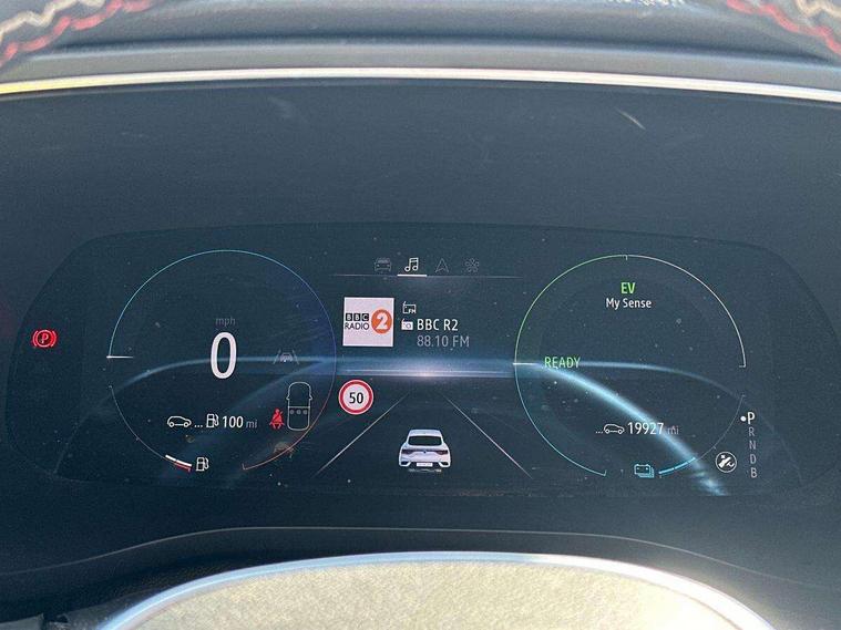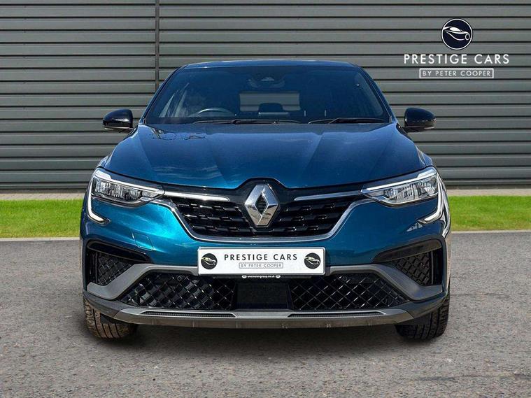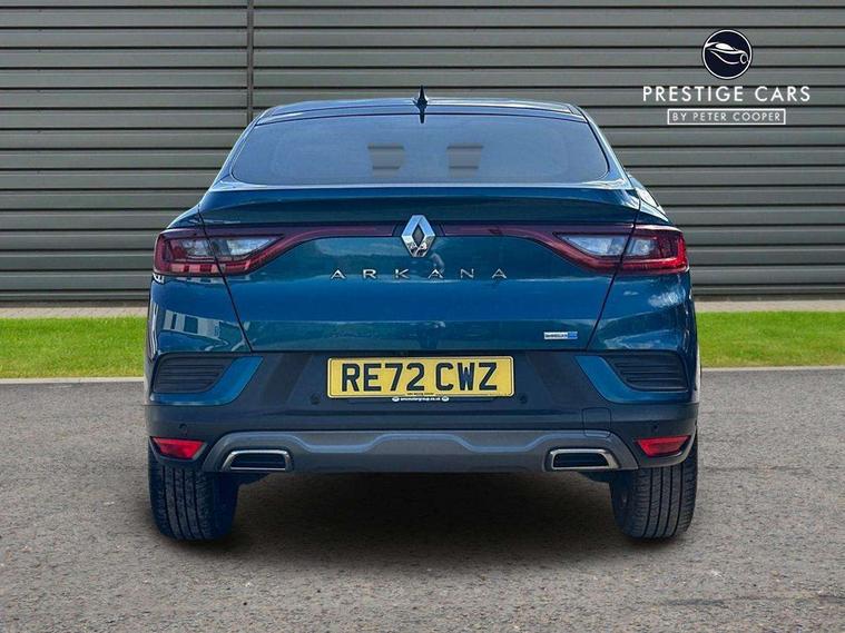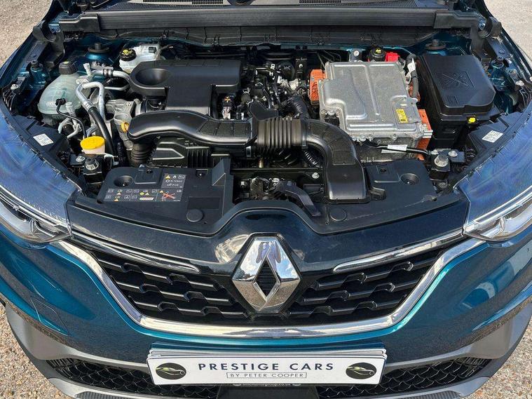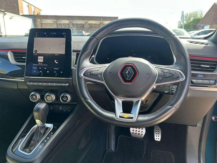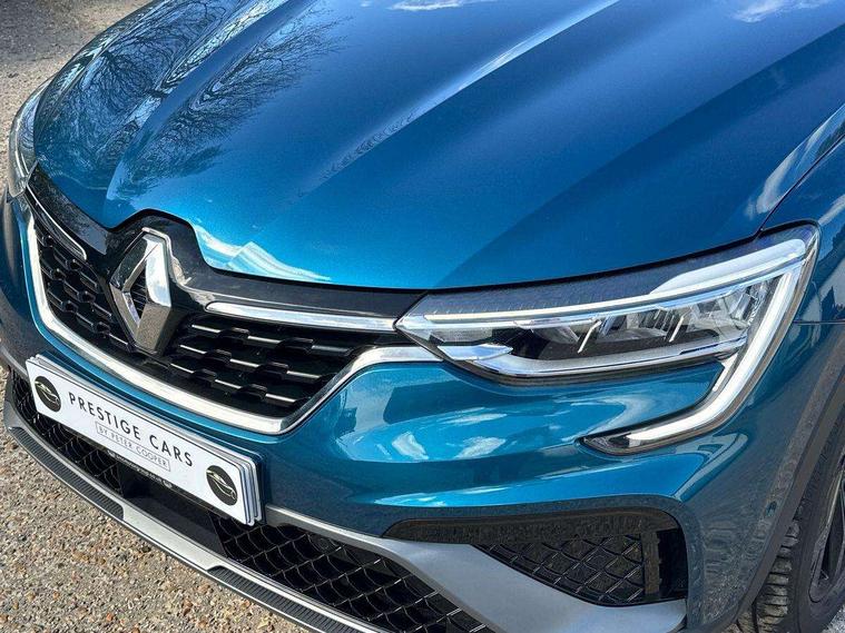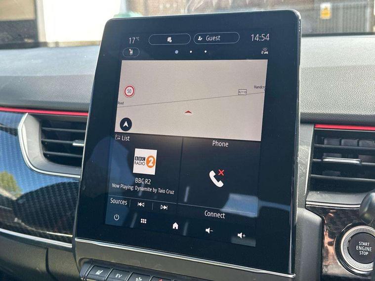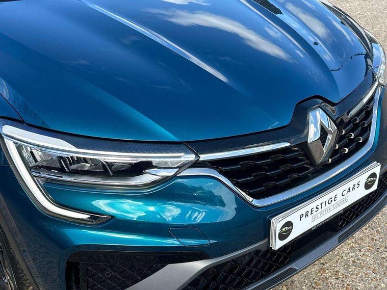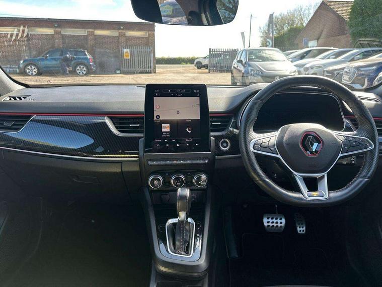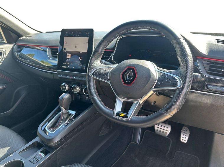 7" TFT Driver information display, Blind spot warning, Bluetooth system, EASY LINK 9.3" portrait touchscreen with navigation, Google search and traffic information, eCall emergency call system, Eco mode, EV button to activate pure mode, Front and rear parking sensors, Gear change indicator, Lane departure warning, Lane keep assist, Multi-sense - 3 driving modes and 8 ambient lighting, Rear cross traffic alert, Rear view camera, Renault automatic emergency assist, Smartphone integration compatible with Apple CarPlay and Android Auto, Traffic sign recognition with over speed prevention, Trip computer, Variable assistance electric power steering, Wireless phone charger, DAB radio, USB port, 3rd brake light, Auto dimming rear view mirror, Automatic headlights, Automatic high / low beam, Automatic windscreen wipers with rain sensor, Black side door protection with gun metal insert, Body coloured bumpers, C-shaped LED front signature lighting, Chrome decopart on wing (fender molding) with R.S. Line badge, Double chromed exhaust tailpipes elements, Extra tinted rear windows and tailgate, Frameless rear view mirror, Front and rear electric windows, Front bumper with F1 blade and honeycomb front grille, Front driver window with one touch facility and anti-pinch function, Front grille with chrome on upper part, Full LED headlights, Glossy black door mirror and lower window lining, Gun Metal front and rear skid plates, Heated rear window, R.S. Line badges on front wing and hatch door, Rain sensor, Rear windscreen wiper, Shiny black shark fin antenna, Side mirrors adjustable electrically, electrically foldable, with defrosting and temperature sensor, automatically foldable at vehicle closure, 3 seat bench in 2nd row, 60:40 split and fixed base rear seats, Aluminium pedals, Automatic climate control with combined filter, humidity sensor and AQS, Black interior roof lining, Carbon style dashboard, Central console with storage, Driver's seat height adjustment, Electrically adjustable front seats, Front and rear head restraints, Height and reach adjustable steering wheel, ISOFIX child seat fixing points on rear outermost seats, LED front and rear roof lights, Passenger seat height adjuster, R.S. line black suede-leather upholstery with red/grey stiching, R.S. Line perforated leather steering wheel with red/black harmony and R.S. Line badge, Rear air vents, Red inserts on air vents, Single front passenger seat, Parking Pack - Hands-free parking & flank protection - Arkana, Winter pack - Arkana, 3x3 point rear seat belts, ABS+EBA, Active emergency braking system, B Brake Mode - One pedal driving with increased regenerative braking, Distance warning alert, Driver airbag, Driver and passenger front and side airbag deactivation, Driver and passenger side airbags, Driver height adjustable seat belt, Electronic parking brake with auto hold, ESC (Electronic Stability Control), Front and rear no seatbelt warning sound, Front curtain airbags, Front head airbags, Hill start assist, Passenger airbag, Tyre pressure warning light, Anti drill door locks and locking fuel cap, Central door locking, Deadlocking system, Hands free keycard with Keyless access and start, RAID (Renault Anti-Intruder Device) automatic door locking, Rear side wing door and window child locking function (front driver door control panel), Superlocking, Thatcham alarm, 18" Silverstone diamond alloy wheels with red inserts,