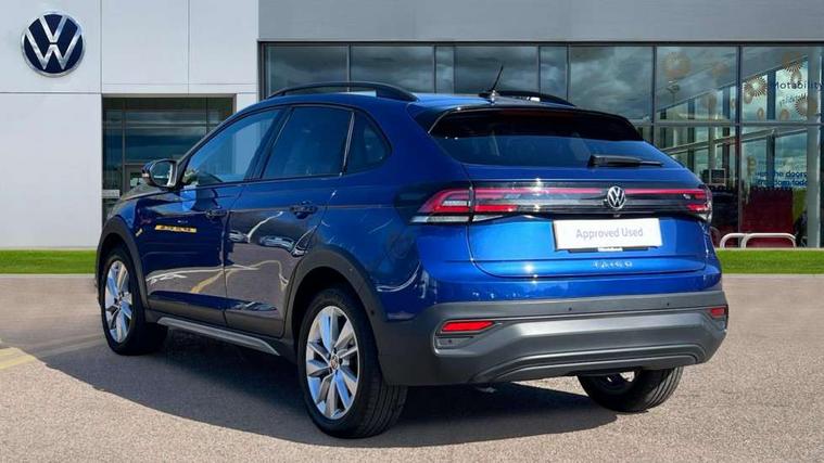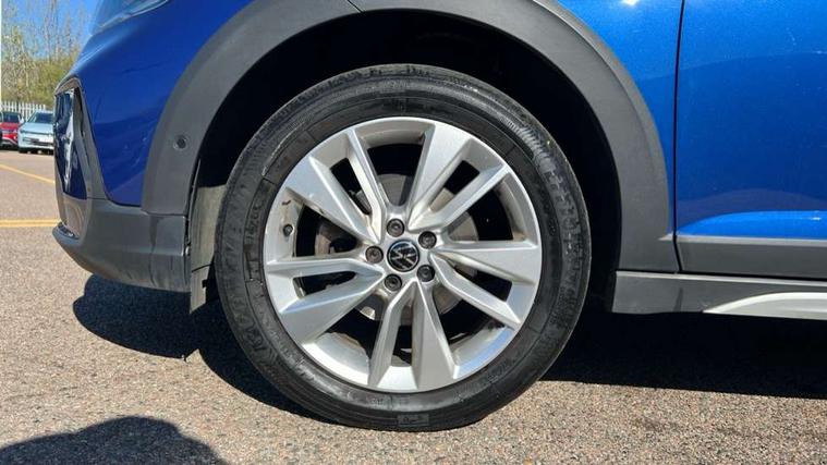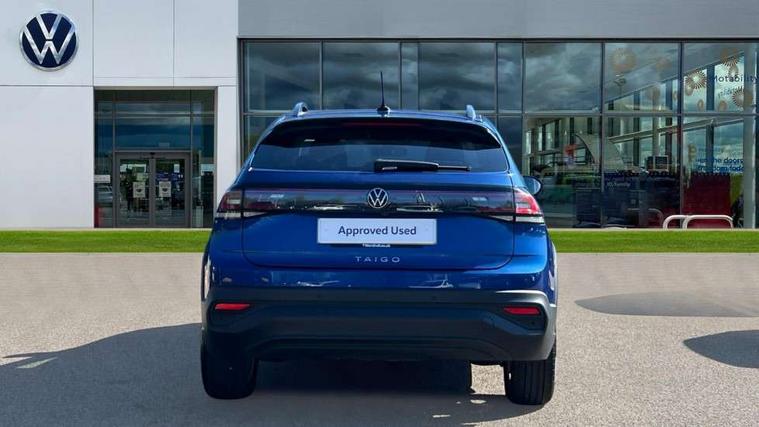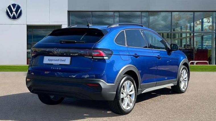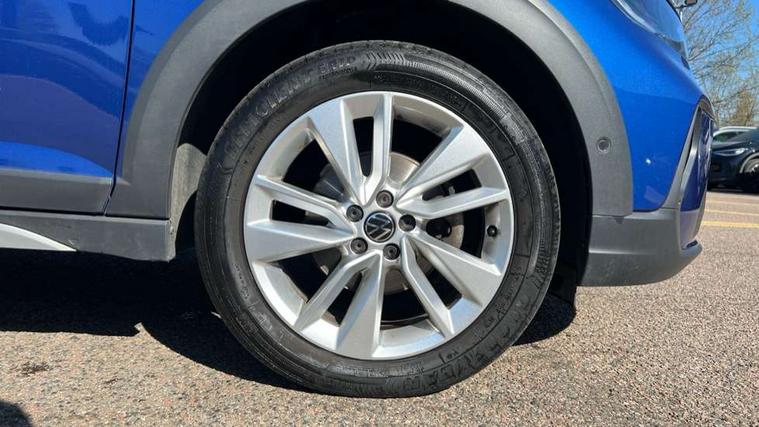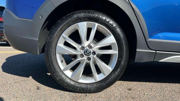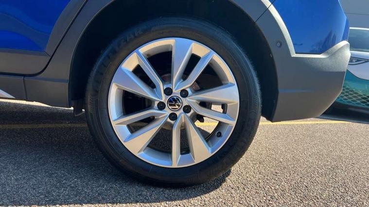 Driver alert system, e-Call (emergency call), Power Steering, Travel assist including emergency assist, Washer fluid level indicator, Wireless Charging including Bluetooth, Start-stop system with battery regeneration (recuperation - energy recovery during braking), WeConnect plus, Ambient lighting with logo projection, Aspherical driver's exterior mirror, Auto headlights, Body coloured bumpers, Body coloured exterior mirror housings and door handles, Electric windows, External USB type C socket and charging sockets, Front fog lamps with cornering function, Headlight range control, Heat insulating glass windscreen, LED headlamps, LED rear combination lamp, LED third brake light, Left convex exterior mirror, Power folding adjustable/heated exterior mirrors and front passenger exterior mirror lowering function, Rear fog light on one side, reversing light on both sides, Rear side wing doors, Rear wash/wipe with intermittent wipe setting, 'Slash/ Austin' Cloth upholstery, 12V socket in centre console, 2 front reading lights, 3 rear head restraints, 3 seat bench in 2nd row, Black carpets, Child seat anchor for child seat system i-Size, 2x top tether and child seat anchor in front on front passenger side, Door and side trim panels in titan black, Driver and front passenger seat height adjustment, Front centre armrest, Handbrake lever handle in leather, Height and reach adjustable steering wheel, Leather trimmed gear knob, Leather wrapped multifunction steering wheel, Luggage compartment floor, Luggage compartment light, Lumbar support for driver's and front passengers seat, Seat covers in titanium black, Single front passenger seat, Split folding backrest with centre armrest and unsplit rear seat bench, Storage compartment under front seats, Sun visors with illuminated vanity mirrors, Chrome Package - Taigo, Drivers assistance pack - Taigo, Light and Sight pack including High beam assist - Taigo, 2 x 3-point seatbelts/outer rear seats with ECE label, 3-point seat belts in front with pretensioner and height adjustment, 3-point seatbelt for centre rear seat, Driver and front passenger airbags with front passenger airbag de-activation, front side and curtain airbags, Driver and front passenger safety-optimised head restraints, Electronic stability control, Extended and predictive pedestrian/ cyclist protection, Front and rear disc brakes, Front curtain and side airbags with center airbag, Hill start assist, Manual rear child locks, Single tone horn, Tyre pressure loss indicator, Anti-theft alarm system with interior monitoring, backup horn, and towing protection, Anti-theft wheel bolts, Lava stone black gloss/matt decorative inserts in dash and front door panels, Low rolling resistance tyres,