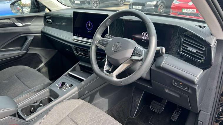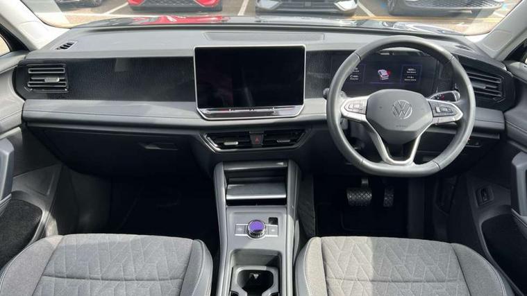 Adaptive cruise control (ACC), Advanced driver attention and drowsiness monitor, Bluetooth mobile phone interface, Car2X technology, Digital Cockpit Pro - 10.25" high resolution dash display screen with customisable menus and information, Dynamic road sign display, E-Sim card for online connectivity, eCall emergency call service, Front Assist - Autonomous emergency braking with pedestrian and cyclist monitoring, Lane change system, Side assist, Rear traffic alert and Exit warning system, Lane keeping system Lane Assist, Multifunction front facing camera, Oncoming vehicle braking when turning including swerve support, Park assistance plus with front and rear parking sensors, Power assisted steering with speed sensitive, Start/stop system with regenerative braking, Warning signal and warning light for front and rear seatbelts not fastened, Wireless App-Connect, Front wheel drive, Digital radio reception (DAB), Diversity antenna for FM reception, Ambient lighting with logo projection, Auto dimming interior rear view mirror, Automatic headlight control system, Body coloured bumpers and air intake with chrome trim, Body coloured door handles, Body-coloured exterior mirror housings, Coming/leaving home lighting function, Heat insulating glass in side and rear windows, Heat insulating windshield, Heated rear window, High level 3rd brake light, Illuminated door handle recesses, Illuminated lightline between headlamps, Rain sensor windscreen wipers, Rear fog light on one side, reversing light on both sides, Rear side wing doors, Rear wiper, 12V outlet in center console rear and in luggage compartment, 12V socket in centre console, 3 bench rear seats in 2nd row, Air care climatronic 3 zone air conditioning system with rear air conditioning control panel, Carpet mats, front and rear, Centre console with illuminated storage compartment with sliding cover and two drinks holders, Ceramique headlining, Door and side trim panel in foam film and woven fabric, Front centre armrest, ISOFIX anchors for child seats on outer rear seats and front passenger seat compatible with i-Size, Mechanical rear seat release, Power adjustable lumbar support in front, Rear bench seat, split folding, longitudinally movable and folding with load-through hatch and centre armrest, Safety optimised front head restraints, Single front passenger seat, Sun visors with illuminated vanity mirrors, Three rear head restraints, Variable luggage compartment floor, Comfort package with park assist plus and Safelock - Tiguan, Design package - Tiguan, 3 point seat belt for centre rear seats, 3 Point seat belts in front with pretensioners, 3 point seatbelts in outer rear with ECE label, Driver and front passenger airbag with front passenger airbag deactivation, Electronic parking brake with auto hold, Front and rear curtain airbags, Front and rear side airbags, Front centre airbag, Front disc brakes, Manual child proof rear door locks, Rear disc brakes, Two tone horn, Warning triangle, Anti theft wheel bolts, Soul instrument panel,